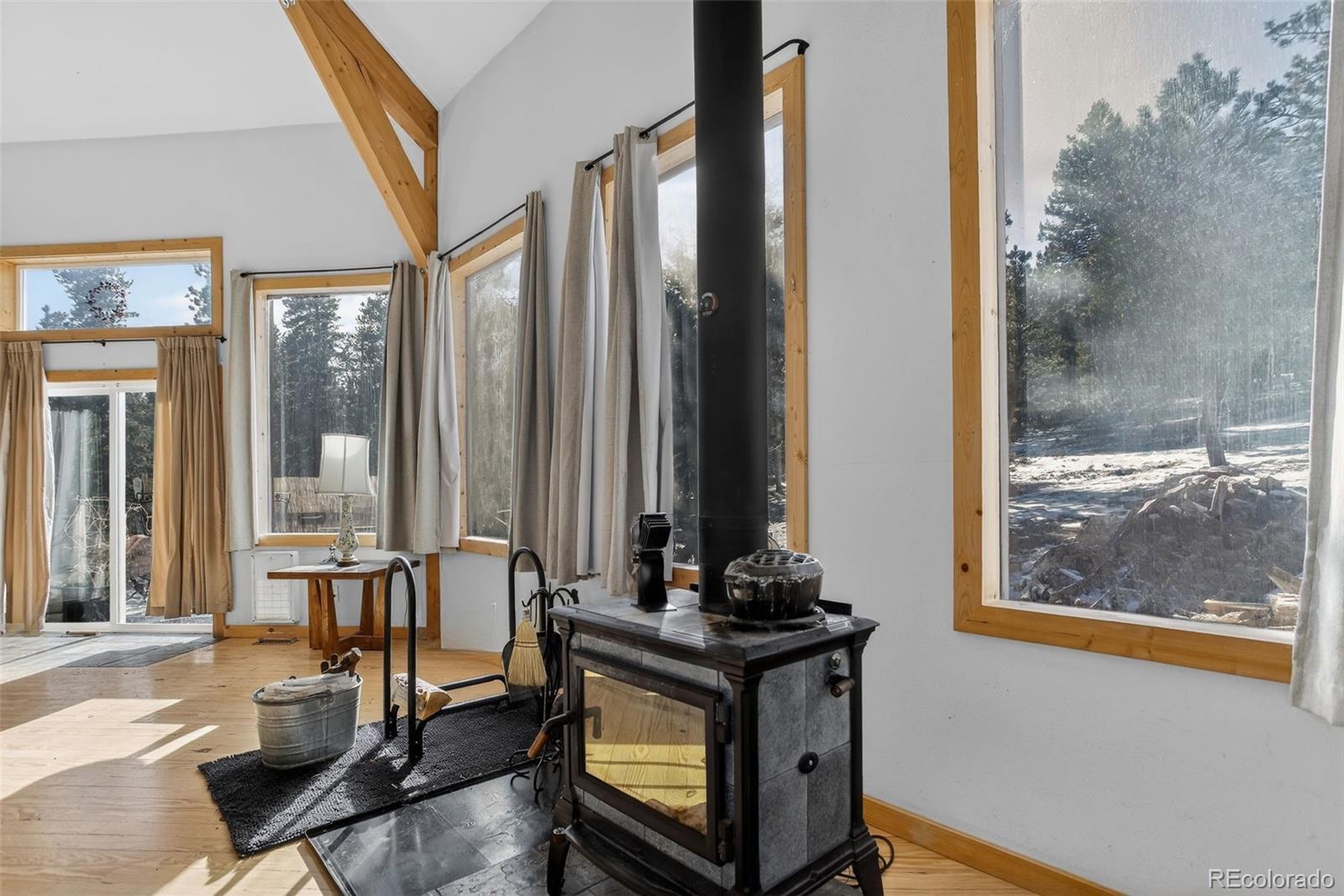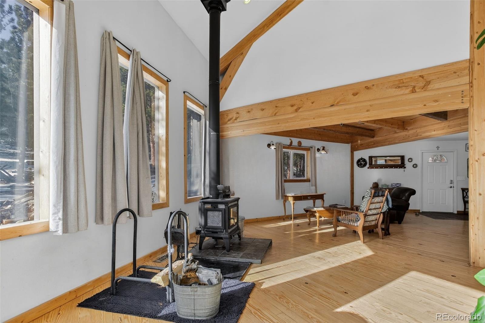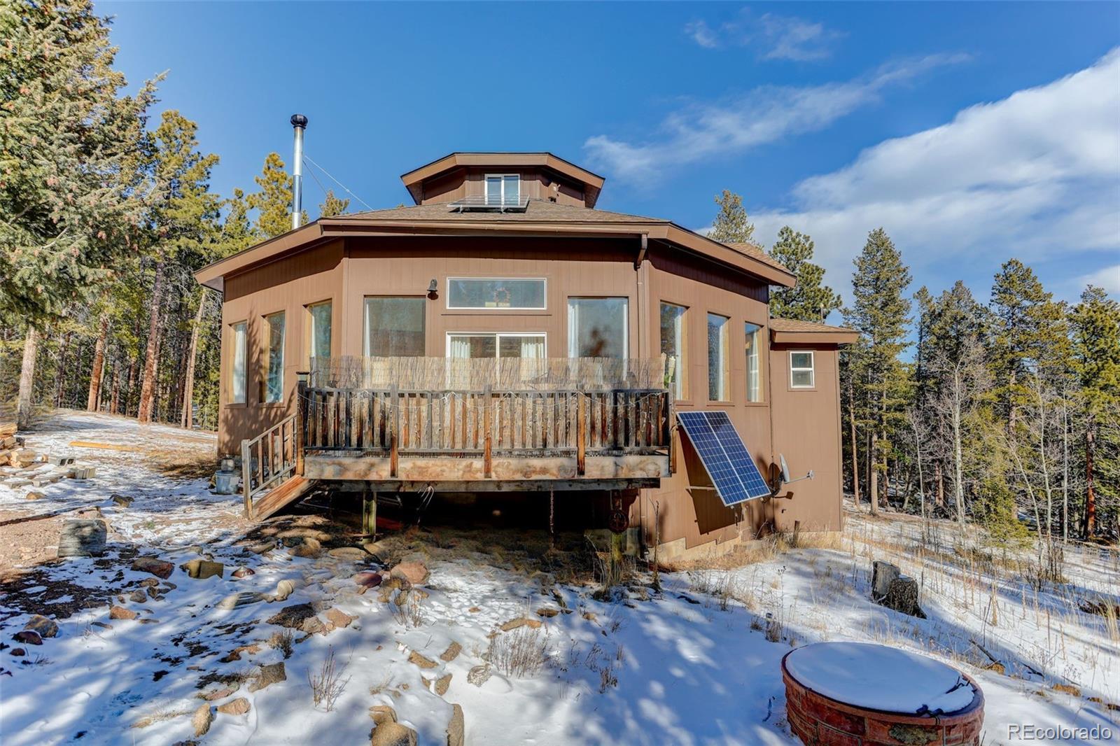 Surrounded by trees and quiet, this one-of-a-kind mountain retreat is thoughtfully set into its natural surroundings, offering privacy and a true sense of escape. Inside, the main level features an open-concept, circular layout designed to flow naturally around the center of the home. Windows wrap around the space, providing forest views in every direction and filling the home with natural light. The family room, anchored by a wood-burning fireplace, creates a warm focal point and connects seamlessly to the outdoor balcony and additional living areas. The central staircase defines the layout, with the dining area positioned beneath it at the heart of the home. The main level also includes a half bath, a utility room with washer and HVAC, and a kitchen that blends contemporary function with rustic warmth. A second cozy living area offers a more private space for relaxing or unwinding. Upstairs, two spacious bedrooms with forest views are connected by a Jack-and-Jill style bathroom with a stand-up shower. An open landing, currently used as an office, overlooks the living space below and is filled with natural light from surrounding windows. Situated on just over two acres with no HOA, the property offers space to relax and enjoy mountain living, with flexibility for future improvements if desired. Whether as a full-time residence or a mountain getaway, this rustic contemporary retreat delivers character, comfort, and a genuine connection to nature.