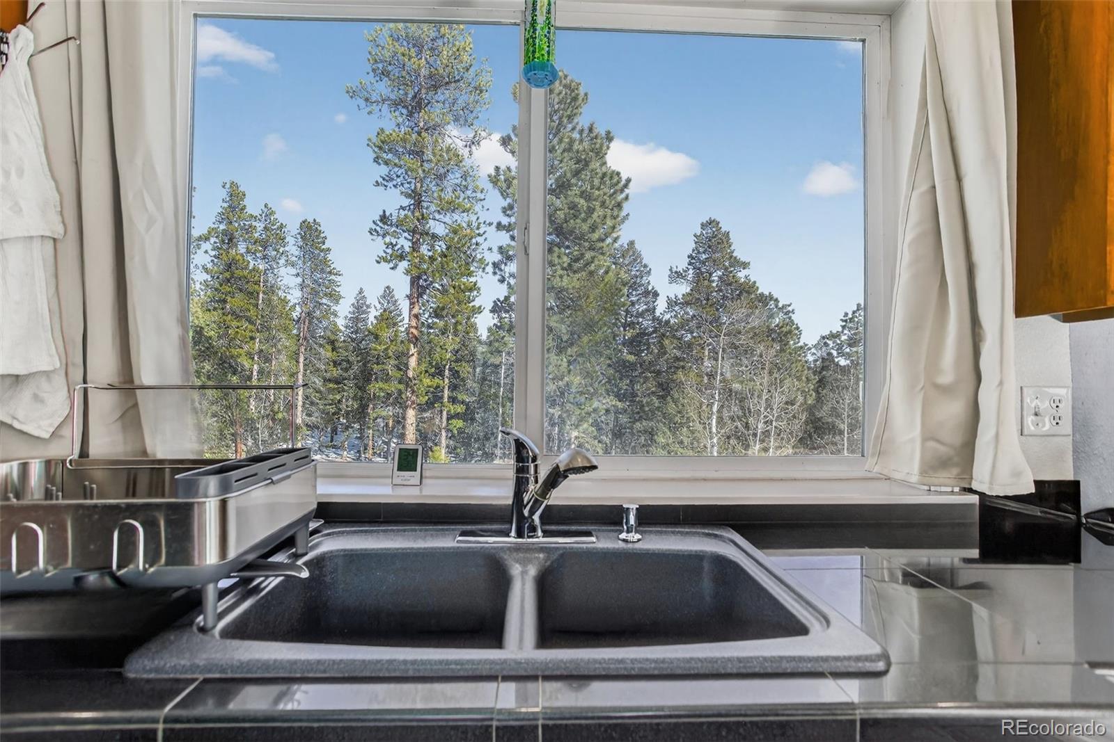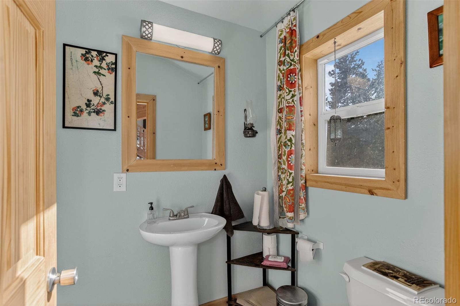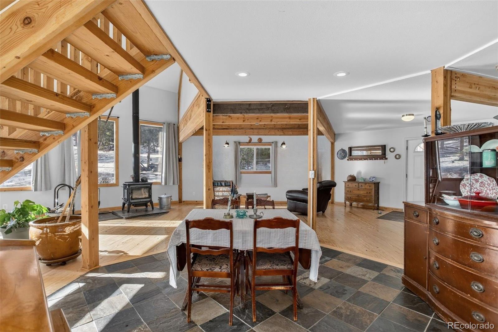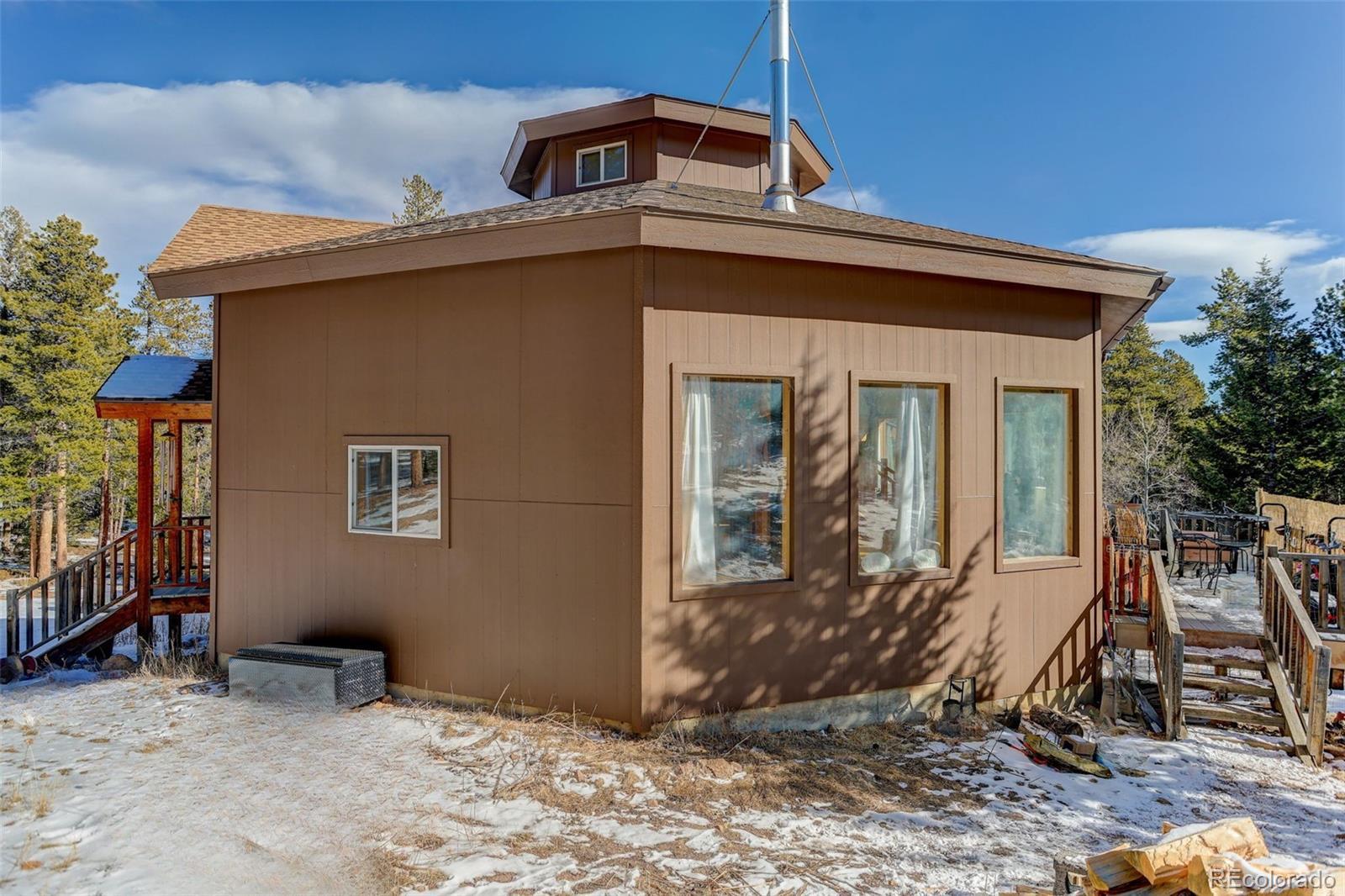 Surrounded by trees and quiet, this one-of-a-kind mountain retreat is thoughtfully set into its natural surroundings, offering privacy and a true sense of escape. Inside, the main level features an open-concept, circular layout designed to flow naturally around the center of the home. Windows wrap around the space, providing forest views in every direction and filling the home with natural light. The family room, anchored by a wood-burning fireplace, creates a warm focal point and connects seamlessly to the outdoor balcony and additional living areas. The central staircase defines the layout, with the dining area positioned beneath it at the heart of the home. The main level also includes a half bath, a utility room with washer and HVAC, and a kitchen that blends contemporary function with rustic warmth. A second cozy living area offers a more private space for relaxing or unwinding. Upstairs, two spacious bedrooms with forest views are connected by a Jack-and-Jill style bathroom with a stand-up shower. An open landing, currently used as an office, overlooks the living space below and is filled with natural light from surrounding windows. Situated on just over two acres with no HOA, the property offers space to relax and enjoy mountain living, with flexibility for future improvements if desired. Whether as a full-time residence or a mountain getaway, this rustic contemporary retreat delivers character, comfort, and a genuine connection to nature.