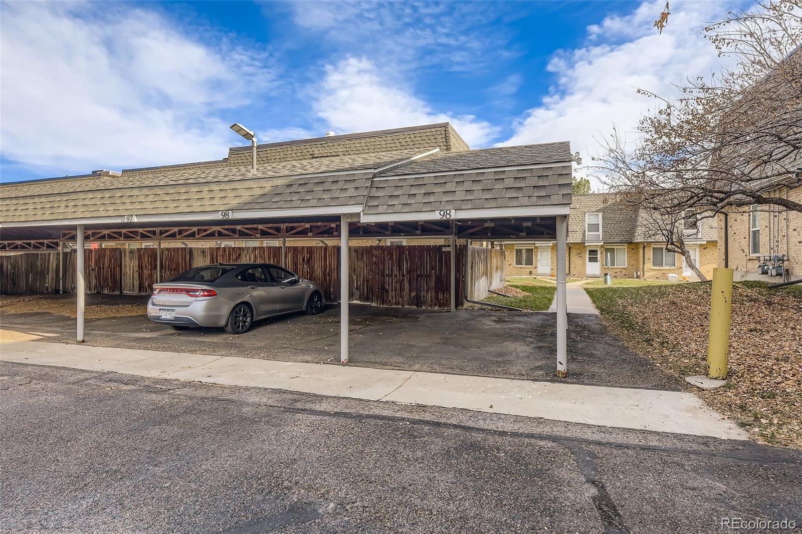 This 3 bedroom townhome style condo has a perfect end location. Drive directly to your carport spaces without winding through the community. Parking is easy for larger vehicles with a straight shot into your spaces. Walk directly through your gated patio and backdoor entry. The end location brings lots of natural light through the extra windows which also allow you the ability to let fresh air in, both on the main floor and the upper floor bedrooms for comfortable sleeping. Central air conditioning is also included. 3 bedrooms are all on the same level. The laundry is conveniently located on the bedroom level. The washer and dryer are 1-2 months old. The living area is large enough to include a dining area and the kitchen is perfect for a breakfast nook. The kitchen pantry cupboard expands your storage space. A huge patio off the kitchen is the perfect size for entertaining, creating your own garden space or simply making your own private getaway. The possibilities are only limited to your imagination. There is an extra storage space in the building basement. The community has a large outdoor pool that is big enough for swimming as well as soaking. Grocery shopping is close enough you could walk to it. The area is close to lakes and trails. Easy access to head west to the mountains or head downtown.