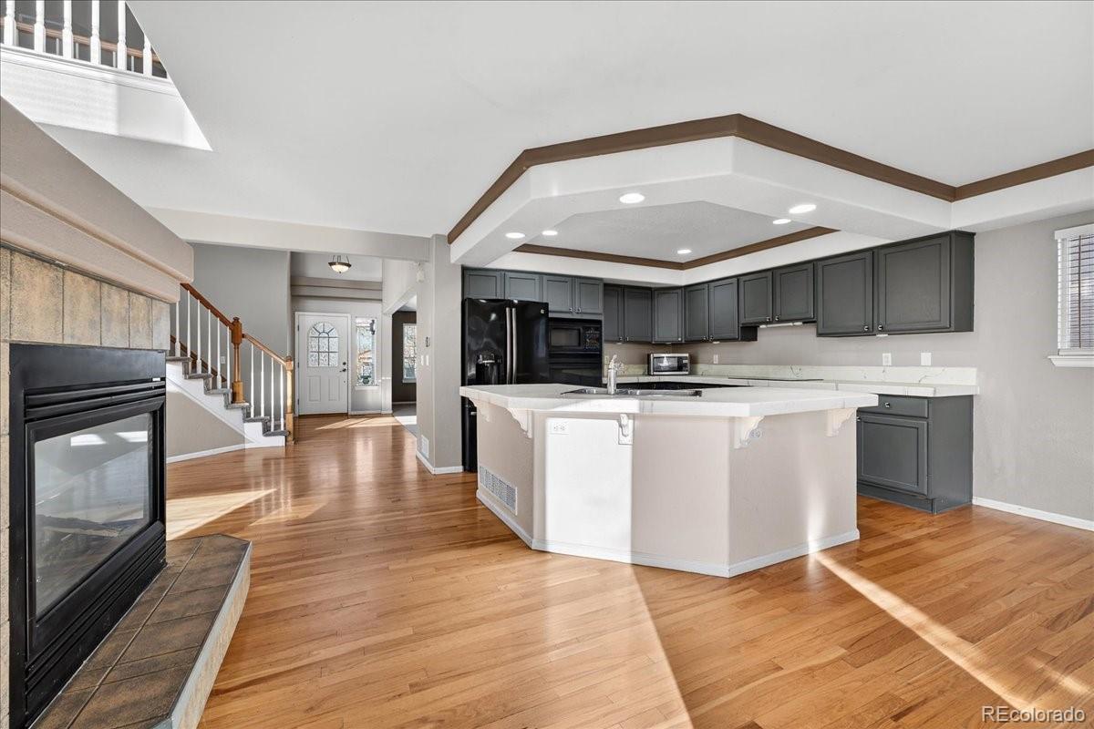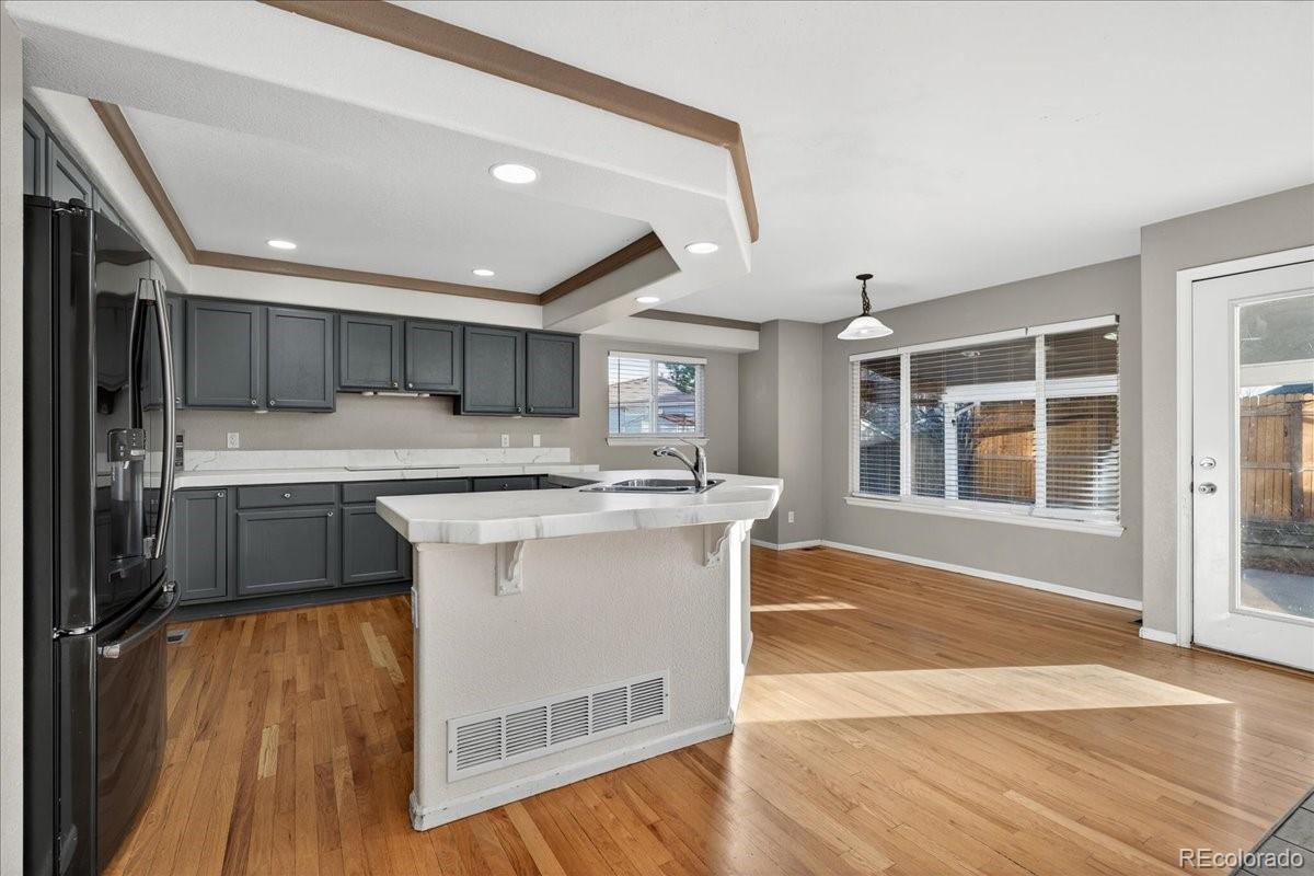 Beautifully maintained upper-level home in Green Valley Ranch offering nearly 2,830 sq ft, a rare 3-car garage, and energy-saving solar panels. Designed in a private upper/lower (ADU-style) layout with separate basement entrance, the upper residence features 3 bedrooms, 3 baths, a spacious primary suite with 5-piece bath and walk-in closet, plus a versatile loft. The main level includes a chef’s kitchen with island and pantry, dining area, two living spaces, wet bar, gas fireplace, and laundry room. Enjoy a covered porch and large fenced backyard exclusive to the upper unit. A rare combination of space, privacy, and efficiency in a prime location.