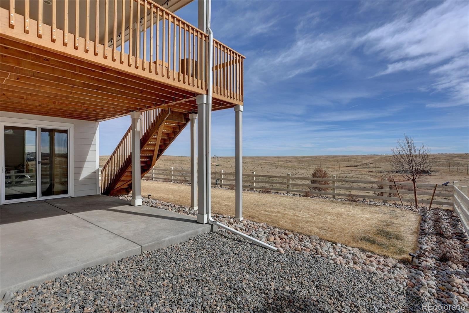 Immaculate 5-bed, 4-bath home in Southshore backing to open space with beautiful views and direct access to nature. Light-filled main level features wide-plank engineered wood flooring, a private study, and a spacious great room with a modern stacked-stone gas fireplace. The gourmet kitchen includes an oversized island, Taj Mahal quartzite countertops (a premium natural quartzite known for its durability and elegant veining), a gas cooktop, extensive prep space, and a walk-in pantry. Adjacent sunroom/dining area offers exceptional natural light and access to the elevated deck overlooking open space. Upstairs, you'll find four generous bedrooms, a versatile loft, and a convenient second-floor laundry room. The primary suite offers open-space views, a 5-piece bath with soaking tub, and custom closet organizers. Finished walkout basement provides additional living space with a family room, a fifth bedroom, a three-quarter bath, a storage area, plus access to the covered patio. Enjoy year-round wildlife sightings, brilliant sunrises, and miles of nearby trails. Close to Aurora Reservoir, Southlands, E-470, DTC, DIA, and Buckley Space Force Base. Beautiful designer upgrades throughout and exceptionally well maintained. This home shows like new!