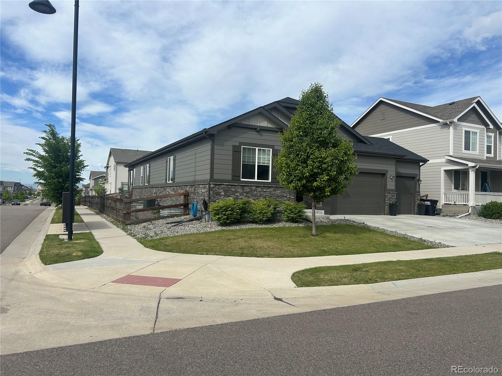 Welcome to this beautiful upgraded ranch-style home located in Barefoot Lakes and situated on a corner lot, only a short distance from the Mead Schools bus stop and the community clubhouse. This spacious 5-bedroom, 3-bathroom home offers 4,034 square feet of luxurious living space, complete with a 3-car garage and a covered front and back patio. The main living area boasts custom light fixtures, a cozy gas fireplace, and a stunning three-panel sliding glass door that floods the space with natural light. The kitchen is complete with quartz countertops, double oven, a gas cooktop, an expansive island, and a large pantry, seamlessly flowing into your eat-in kitchen. Step inside your primary suite and enjoy your private oasis, complete with Quartz countertops, a double vanity, stand-up shower, a 5-piece bath and a walk-in closet, providing abundant storage space for all your wardrobe essentials. including a backyard access service door, an upgraded oversized shower, and an expansive walk-in closet. The laundry room offers double entry for convenience and includes a utility sink and extra cabinets for optimal storage. The main floor also features two bedrooms, and a full bathroom. The finished basement offers a full wet bar for entertaining, complete with a large flex space, perfect for movie nights; Two spacious bedrooms, a full bathroom, and a wet bar complete with Quartz countertops, a built-in sink and a pantry. Take advantage of everything Barefoot Lakes has to offer! Enjoy three miles of lakeside trails, perfect for walking and biking or grab your paddle board or fishing pole and enjoying the breathtaking views of over 100 acres of sparkling lakes. Head down to The Cove Clubhouse and enjoy the fitness center, large swimming pool, basketball court, pickleball courts, fire pits and much more!