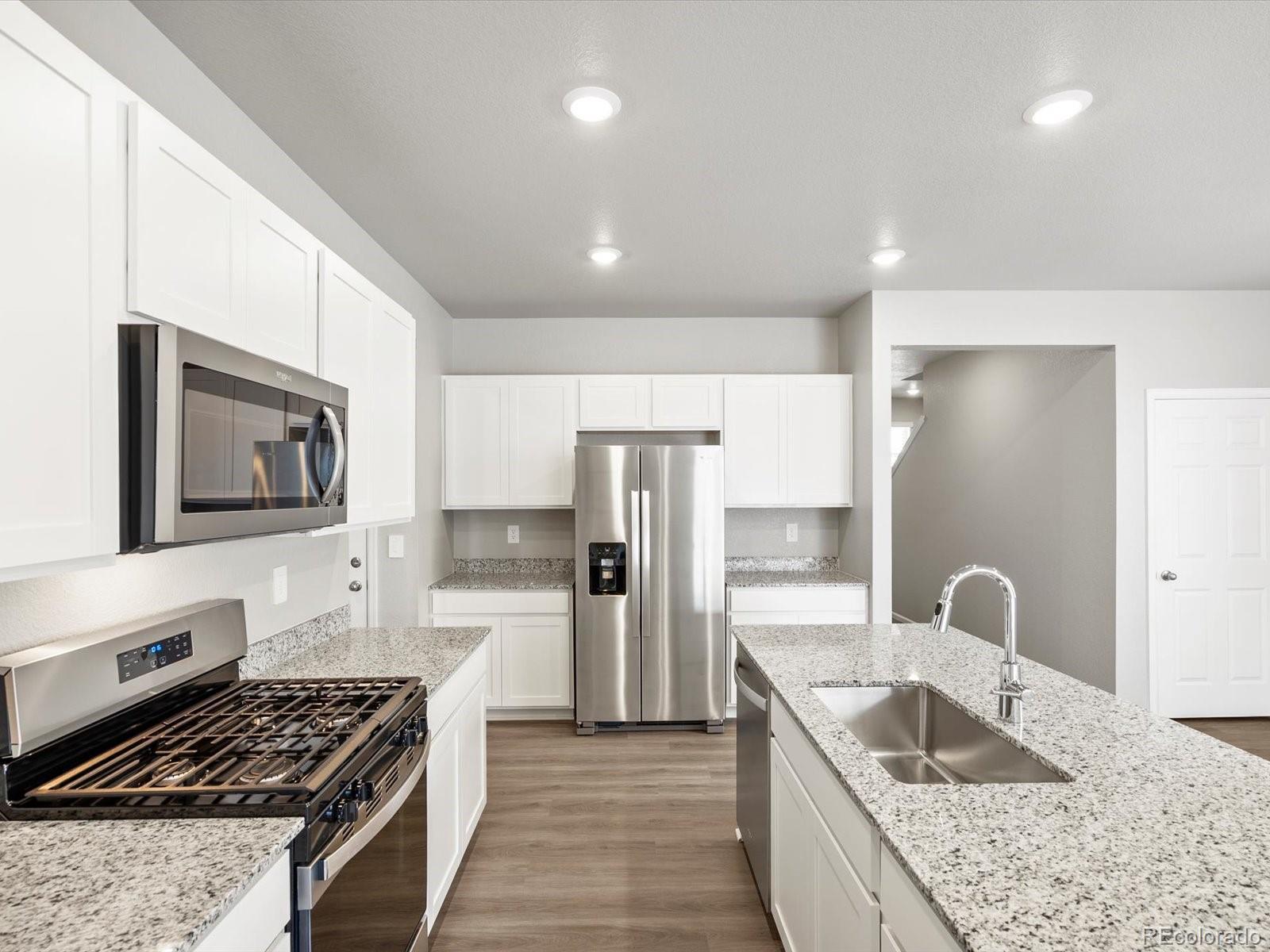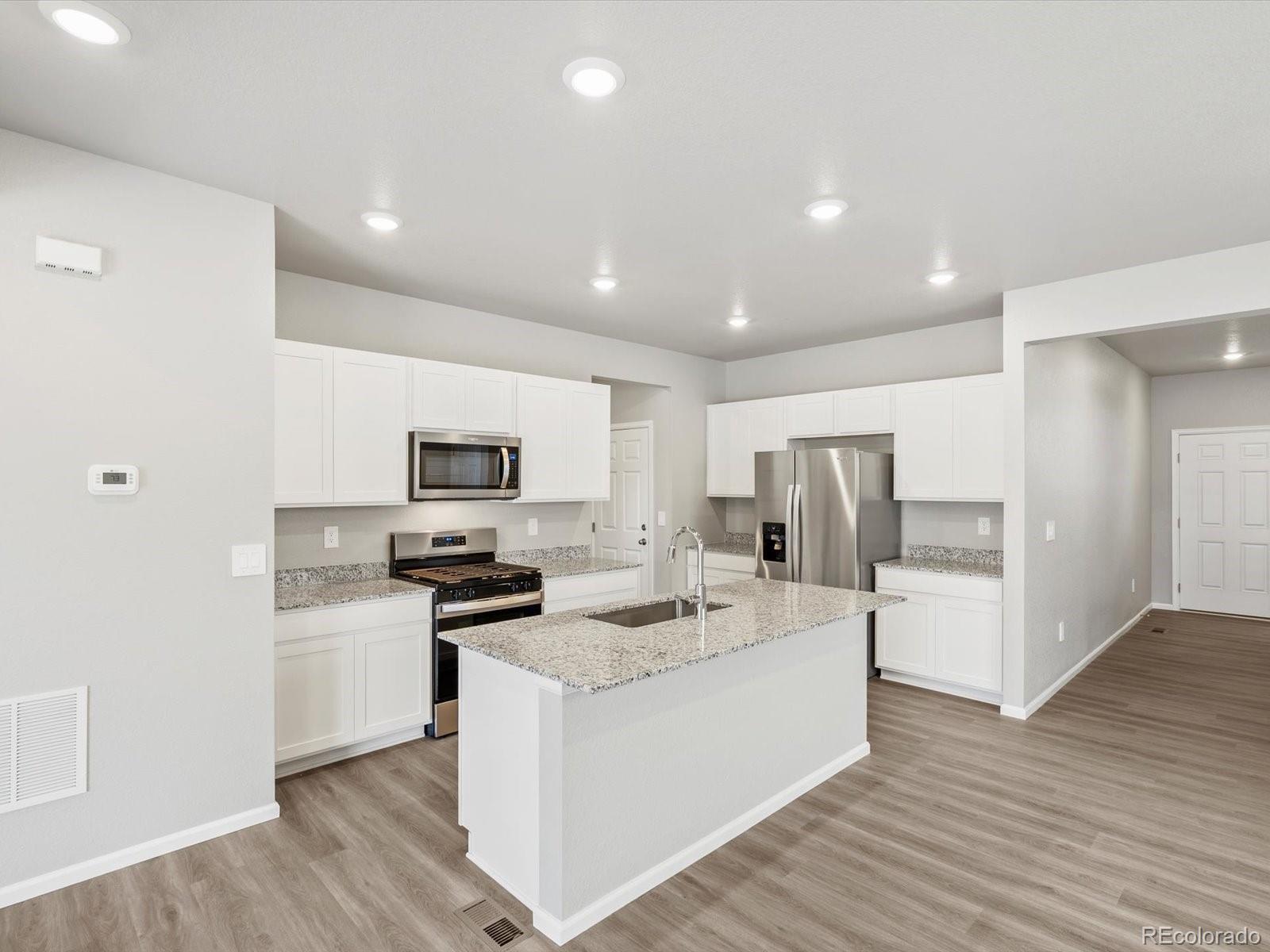 Ask a sales counselor about optional rear yard fencing! Open concept kitchen with granite countertops and white cabinets! Welcome to the Maroon Bell — a spacious two-story home with 2,317 sq. ft. of thoughtfully designed living. Featuring four bedrooms, three full baths, and a versatile loft, this floorplan offers flexibility for families and guests. A main-level bedroom adds convenience, while the two-bay garage completes this stylish and functional design. The Meritage Home difference includes spray-foam insulation, advanced air filtration for year-round comfort and healthier air, and durable cementitious siding known for its strength, fire-resistance, and long-lasting performance. A Whirlpool appliance package, and full home blinds are also included for move-in convenience. Welcome home where every detail is built for comfort, efficiency, and LIFE . BUILT. BETTER. Lake Bluff in Greeley offers a serene lake, scenic trails, and a neighborhood park for outdoor enjoyment. With natural beauty and thoughtful amenities, this community blends comfort with a connection to nature.