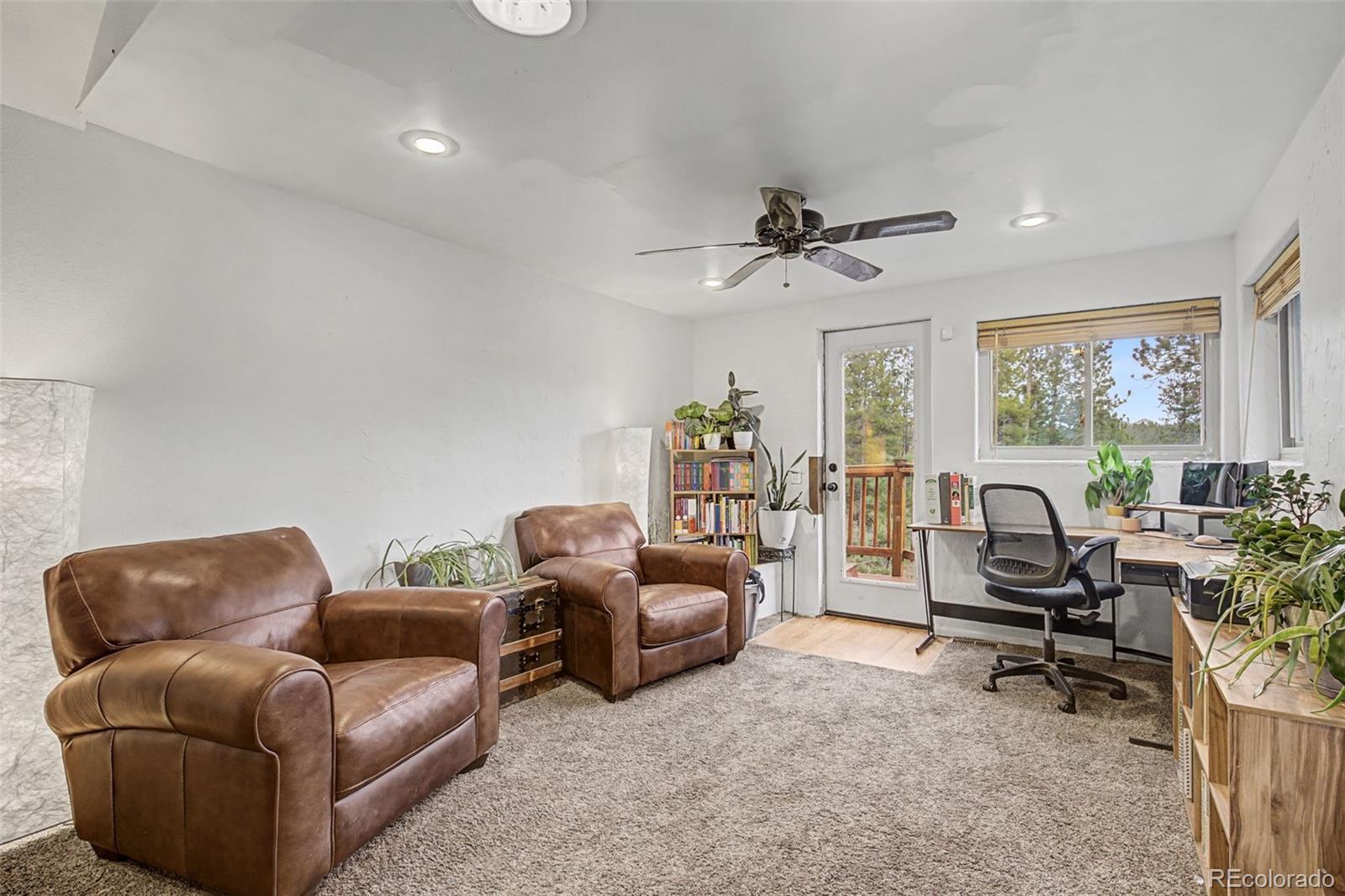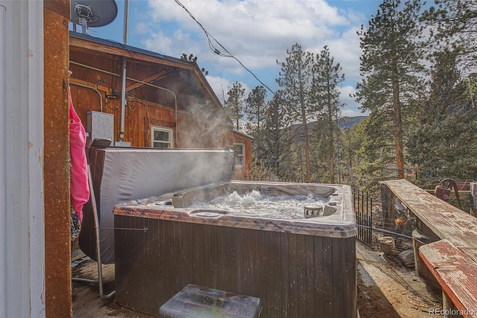 Tucked among the pines in sought-after Shadow Mountain, this Colorado mountain retreat offers peaceful acreage, modern upgrades, and flexible living. Set on 1.43 private acres in Conifer, this 3-bedroom, 2-bath home blends open-concept comfort with mountain character, refreshed to feel light, bright, and move-in ready. The renovated living area features new windows that flood the space with natural light and frame mountain views. The open layout flows into a cozy eat-in kitchen with hardwood floors, oak cabinetry, decorative tile accents, and a new electric fireplace installation underway. The living room fireplace was replaced in 2023 to meet code, offering charm with peace of mind. The primary suite includes French doors to a private deck, perfect for morning coffee in the trees. The main bath features a new shower insert (2025). Upstairs, a separate entrance provides flexibility for guests, rental income, or a home office, complete with a its own half-bath. Outdoor living truly shines here. Two decks create ideal entertaining and relaxation spaces, while the newer hot tub (2024) invites year-round enjoyment. The fenced acreage includes raised garden beds, a chicken coop, and multiple outbuildings — shed, carport, and additional storage or creative space. With natural gas and electric in place, you enjoy rural serenity without sacrificing convenience. Located with easy access to Conifer amenities and commuting routes, yet surrounded by wildlife and views. If you're searching for a Colorado mountain home with acreage, usable land, updates, and income potential — this is it. Schedule your private showing today.