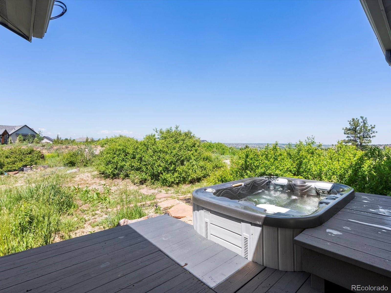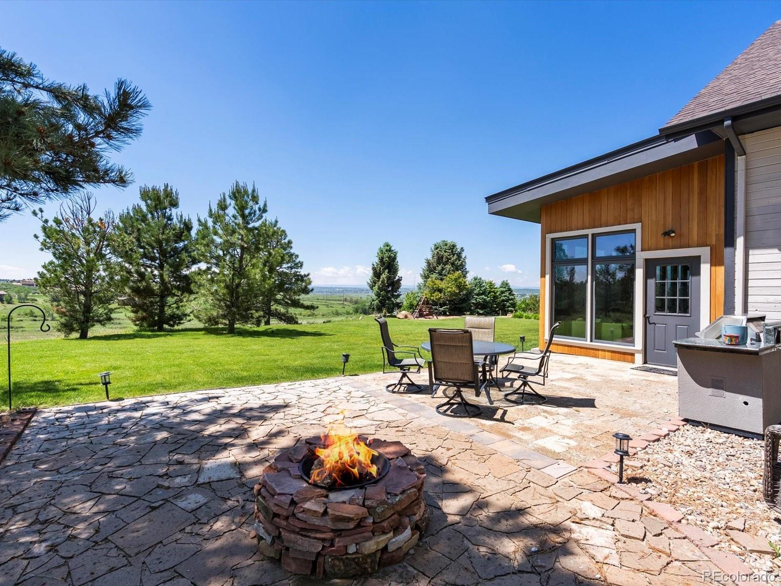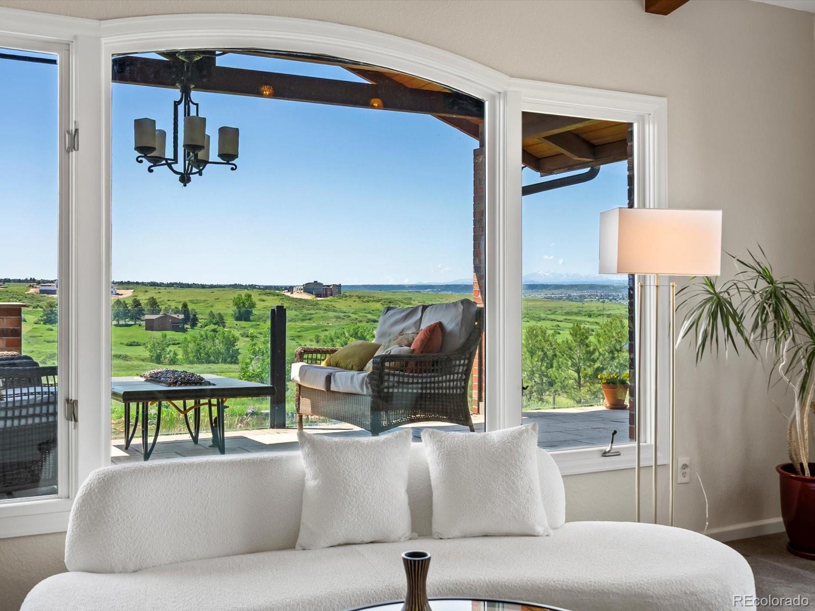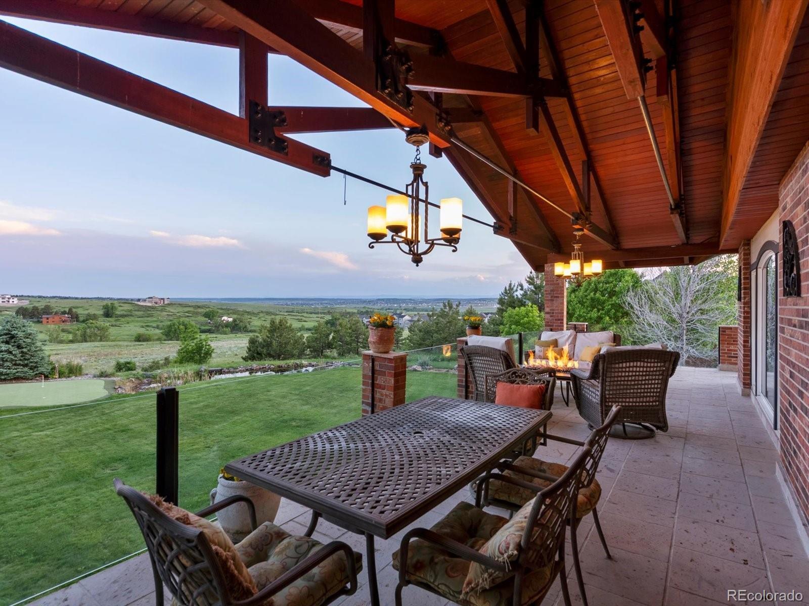 Welcome to your exceptional Parker estate, where luxury meets lifestyle. Perfectly positioned on 5 meticulously maintained acres and backing to 35+ acres of protected open space, this property offers rare privacy, a natural buffer, and frequent visits from Colorado wildlife. From your doorstep, take in breathtaking mountain views, stretching from the majestic Pikes Peak to the south and the iconic Sleeping Indian to the west. Designed for both living and entertaining, the 3,208 sqft residence features an expansive kitchen with leathered stone counters, Wolf induction cooktop, large island, and seamless flow to a covered deck—perfect for gatherings or quiet mornings with mountain views. The main floor primary suite is a true escape with spa-inspired bath, dual walk-in closets, and private deck access with hot tub. The lower level offers three bedrooms, a full bath with double vanity, and a spacious family room with bar and walk-out access to the outdoor living areas. A 3-car attached garage with concrete drive provides ample parking and storage. Step outside to your personal oasis: lush lawns, koi pond, custom putting green with pergola lounge space, multiple decks and patios, and a firepit for evening relaxation. A 2,400 sq ft climate-controlled outbuilding provides endless flexibility—RV storage, workshop, or hobby space—plus an attached 700 sq ft art studio that inspires creativity at every turn. With soaring ceilings, expansive windows framing the surrounding pines and mountain views, and thoughtfully designed workspace, ideal for artistic pursuits, crafting, or even a quiet retreat to recharge. You’re just 5 minutes from downtown Parker dining, shopping, healthcare, etc, with easy access to I-25 & E-470. This spacious, quiet neighborhood boasts well-maintained access roads and prompt snow removal, ensuring year-round ease. Also minutes from the prestigious Colorado Golf Club & The Pinery Country Club, offering world-class golf and social amenities.