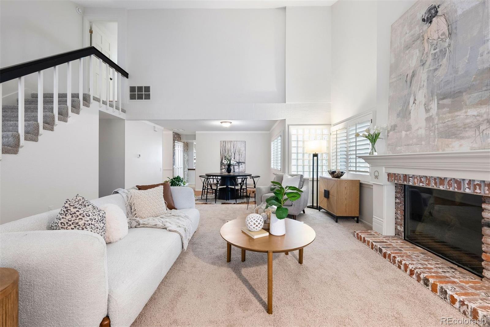 One-of-a-Kind Home with Stunning Updates and Outdoor Living! Backs to one of the biggest opens space parks in Dam East. This beautifully maintained home greets you with professional landscaping and charming brick front pavers that wrap around to a private patio. Inside, you’ll find a bright and cozy living room with a brick wood-burning fireplace and front windows adorned with plantation shutters. Step down into the elegant dining room, featuring matching shutters and remote-controlled sun screens for perfect light control. The professionally remodeled kitchen opens to a spacious great room. Truly an entertainer’s dream! Enjoy an open, airy layout with a full wall of windows, built-in seating with cushions and storage, a wet bar, tile flooring, and ample counter space. Two bedrooms are conveniently located on the main floor, offering flexibility for guests, family, or a home office. French doors lead to your private outdoor oasis with brick paver patios, a pergola, fireplace, beautiful landscaping, and a koi pond (currently not in use). The backyard backs to a serene greenbelt and includes additional storage for gardening enthusiasts. Upstairs, the primary suite boasts hardwood floors, a custom closet, and a spa-like bathroom with heated tile floors, granite counters, and a large window for natural light. The finished basement provides even more living space. Perfect for a media room, home gym, or playroom, with plenty of room for storage as well. All of this is located in Aurora’s sought-after Dam East neighborhood, known for its mature trees, walking paths, community pool, tennis courts, playgrounds, and friendly atmosphere. Enjoy quick access to Cherry Creek State Park, I-225, DIA, and excellent shopping and dining. A perfect blend of convenience and community! PREMIUM PRICE for the BEST home, on the very BEST LOT, in all of the Dam East. Brand new interior carpet and paint. Don't miss this opportunity to make this your dream home!!