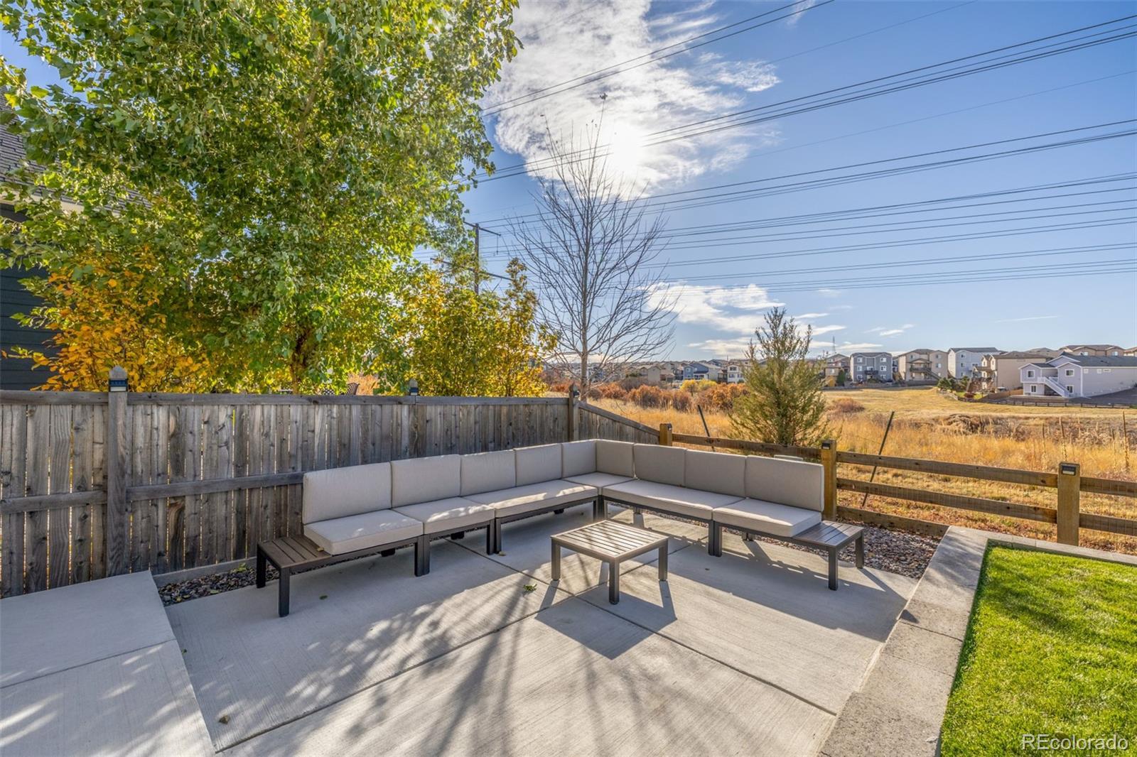 Pure Colorado luxury, perfectly positioned on open space for ultimate privacy & breathtaking views of the valley & natural landscape. Every detail has been thoughtfully elevated w/ designer touches & high-end finishes, creating a modern yet inviting atmosphere that feels like a custom build. It is both immaculate & impressive w/ its wide-open layout, soaring ceilings & tons of natural light. The gourmet kitchen features a gorgeous statement island w/ new custom paneling, crisp white cabinetry, large walk-in pantry, butler’s pantry and expansive counter space that blends beauty & function. The family room has been completely reimagined w/ a stunning modern fireplace feature, anchoring the space w/ warmth & style. A main-level guest suite & versatile flex room provide comfort & flexibility for any lifestyle. Upstairs, the primary suite feels like a five-star retreat. The brand-new custom bathroom (2025) showcases a deep soaking tub, walk-in shower w/ designer fixtures & dual vanities imported from New York. A spacious loft, three additional bedrooms and baths & a fully updated modern stair railing complete the upper level. Throughout the home, LVP flooring & plush carpet (2023) add both sophistication & comfort. The basement has been fully framed, plumbed & wired, offering a head start on nearly 1500 square feet of additional living space. A new roof (2024) provides peace of mind. Step outside to your private outdoor sanctuary where the backyard was completely re-landscaped (2024) w/ a concrete walkway wrapping to the driveway, gas line ready for a custom fire pit, electrical ready for a hot tub & a new shed for added convenience. Enjoy endless sunsets, wildlife & open skies from your peaceful covered patio. Located in prestigious Terrain community, residents enjoy 2 pools, clubhouse, trails, dog park & easy proximity to Sage Canyon Elementary & The Promenade’s shops & dining. This home is the perfect balance of modern design, high-end comfort & Colorado beauty!