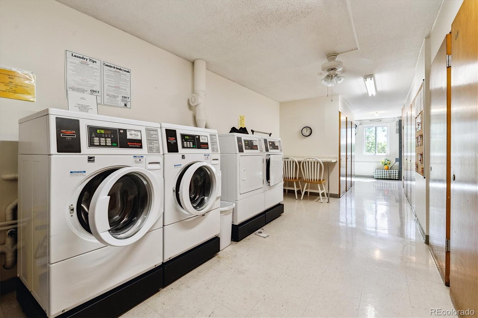Welcome to this updated and move right in corner condo, on same floor as laundry- and overlooks a beautiful courtyard! Updates thru-out, this 2 bedroom/1 bathroom is the 945 sf floorplan, and includes a 1 car detached garage close to building. Kitchen features updated wood-soft close cabinets extended more than most, and bonus countertop space. All white appliances included! The 3/4 Bathroom is a spacious walk-in shower, & updated vanity/top/fixtures. Neutral paint/carpet color scheme. Special double pane vinyl enclosed lanai and brand new vinyl slider door! 1 updated wall ac unit included in living room. Bonus storage room on same floor as condo. Great time to move into a ready to go home! **Windsor Gardens is Colorado's Largest Age 55+ Active Adult Living Condo Community. Did you know? Monthly HOA Dues include annual property taxes! And heat, water, sewer, trash, round-the-clock patrolling community responders, full time onsite association management, grounds/building maintenance, and activities department. Enjoy clubhouse amenities such as fitness center, indoor/outdoor pools, hot tub, sauna, billiards, library, craft rooms for ceramics, sewing, woodworking, and 9 hole par 3 golf course and onsite restaurant both open to the public. Stay engaged with a wide array of activities, clubs, and events scheduled every month. Additional features include garden plot program, private walking trail and nature preserve, and RV/Boat storage. The Highline Canal runs full length along south side of the complex. RTD Bus Stops located thru-out the community. FHA/VA approved. Close to restaurants, stores, shopping…Minutes to Lowry, Hwy 225, Cherry Creek…Easy access to DIA and downtown. Come see for yourself what Windsor Gardens has to offer. ©2021**