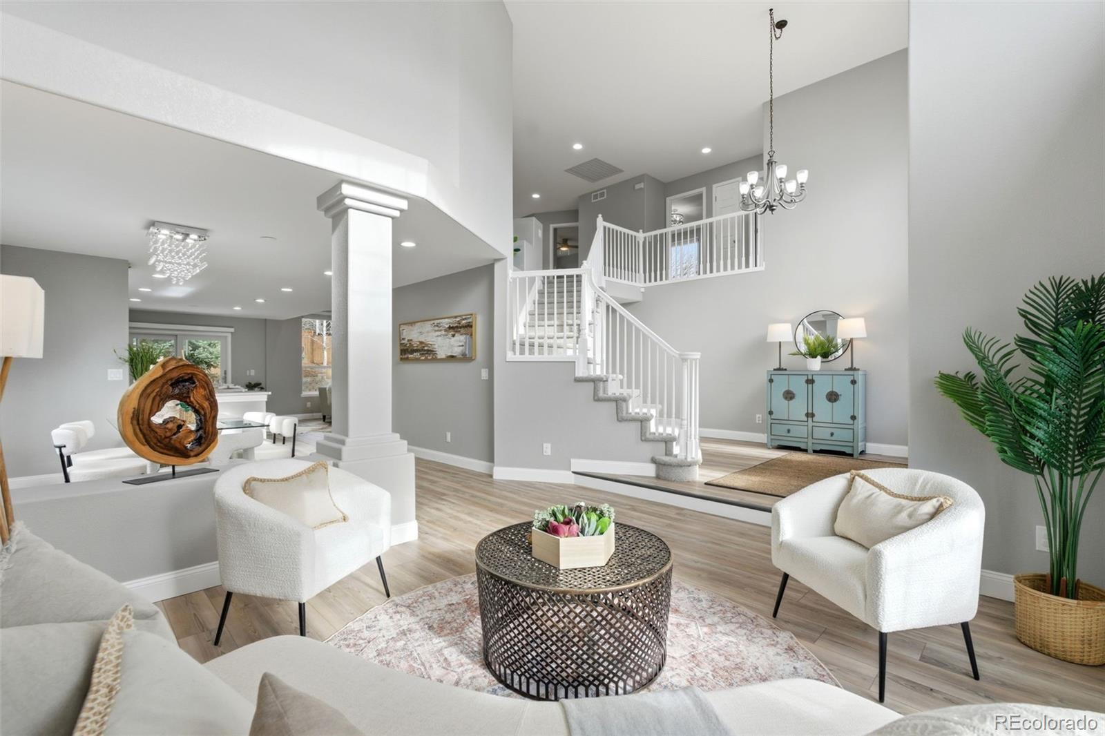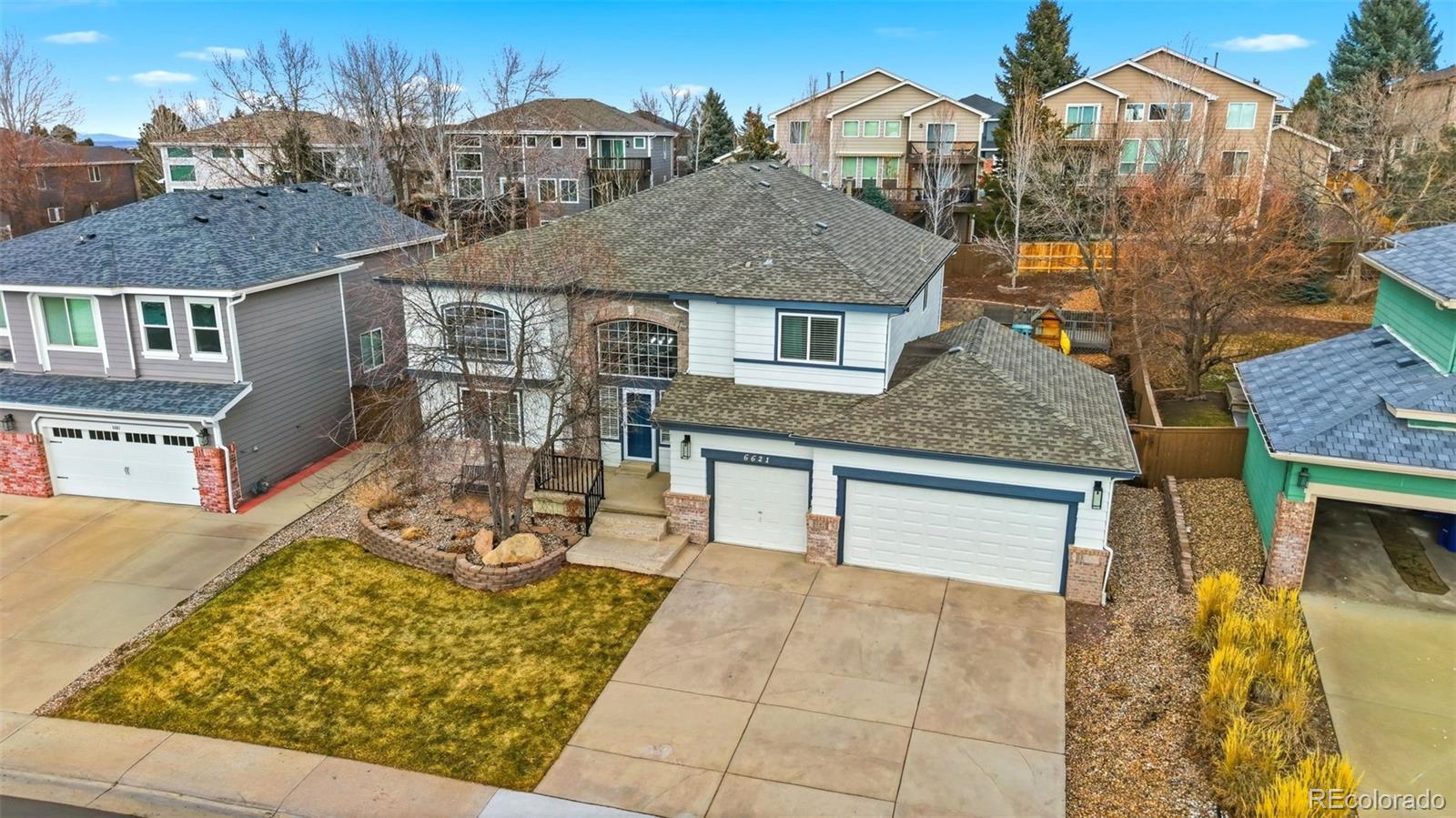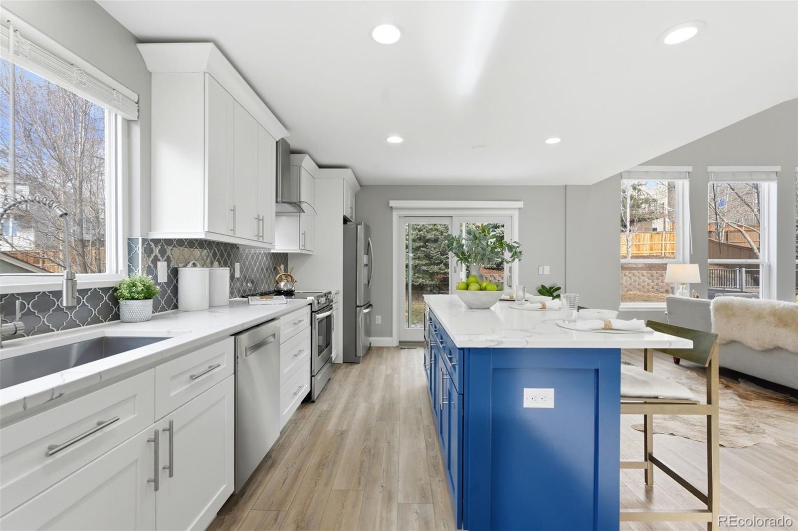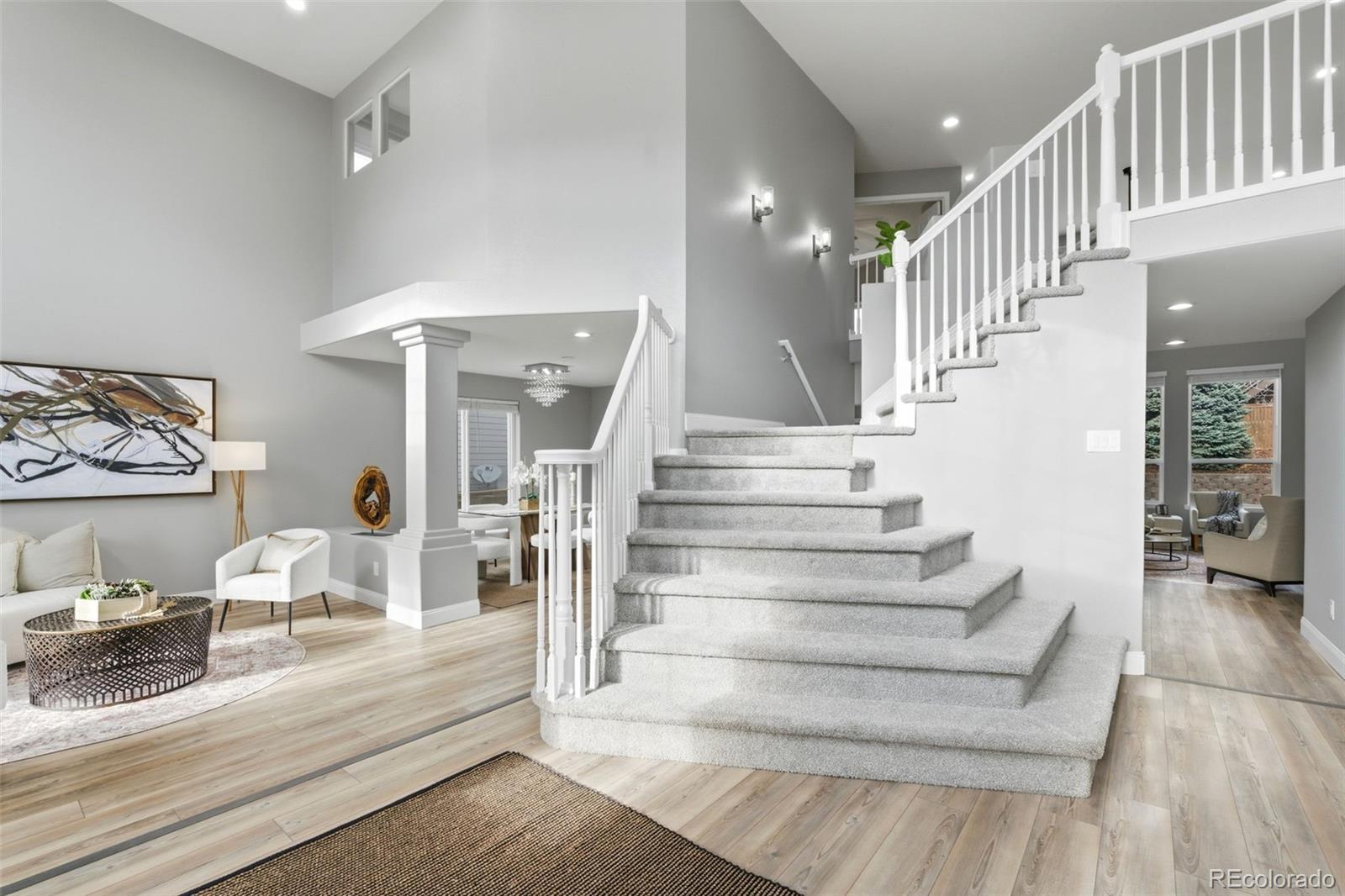 This beautifully updated 5-bedroom, 4-bath home offers a bright, welcoming layout with high ceilings and an easy, natural flow. The kitchen opens directly to the backyard, creating a seamless connection ideal for everyday living, outdoor dining, and entertaining. On the main level, a dedicated office located just steps from a 3/4 bath offers flexibility as a potential bedroom, making it well suited for guests or anyone seeking a main-level living option. Upstairs, the thoughtfully designed split bedroom layout provides added privacy, with the primary suite set apart from the secondary bedrooms and bathroom. The finished basement extends the living space with an additional bedroom and 3/4 bath, perfect for hosting guests or creating a comfortable private retreat. Located just 8 minutes from Park Meadows Shopping Resort, with easy access to restaurants and entertainment, this home offers the ideal balance of space, comfort, and convenience!