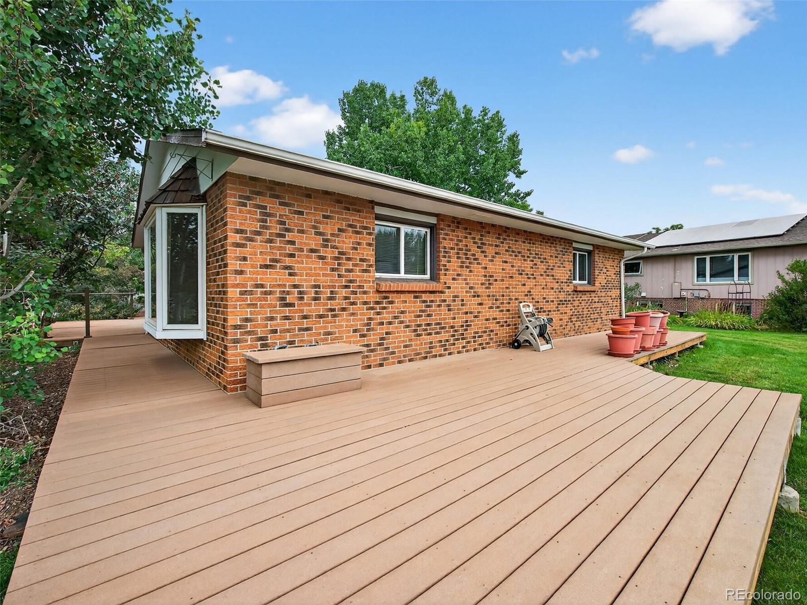 WOW! GREAT NEW PRICE IN CHARMING GOLDEN NEIGHBORHOOD! This south facing, one level brick ranch sits on a large corner lot on the cul-de-sac! Nearly a third acre, this beautiful lot sides to an expansive greenbelt! Invisible fencing is in place for your pets! No stairs! Wonderful ease of use home with spacious decking, accessible ramp and solar panels! This unique ranch features an extra large open concept space. Imagine your own custom update! The kitchen includes a breakfast bar, pantry, all appliances and hardwood flooring. Enjoy convenient flex space for your kitchen/dining room furniture. Relax or entertain in the spacious sun room with an abundance of windows and light! There are so many possibilities here to suit your needs! The sizeable primary bedroom ensuite features a beautiful bay window and walk-in closet. The primary bathroom features an updated shower w/sitting bench and safety bars. The second bedroom is spacious enough for larger furniture plus large closet/storage space. The third bedroom has plenty of space too! The hall bathroom is updated and features a lovely deep tub. Washer & Dryer are included! The attached 2-car garage provides lots of built-in storage cabinets, a large workbench and ample overhead lighting! Plus there's direct access to the exterior RV parking space! The beautifully established yard features a well-maintained lawn, sprinkler system and numerous shade trees and perennials! The storage shed will provide extra convenient space too! Relax and entertain on the expansive, wrap around deck! Location! Location! This home is located in an amazing area, with easy access to highways, bus & light rail options, Downtown Golden, lots of biking / hiking trails, plus great restaurants and breweries too! Don't miss your opportunity! Call Michelle for your own private showing @ 303-910-0992.