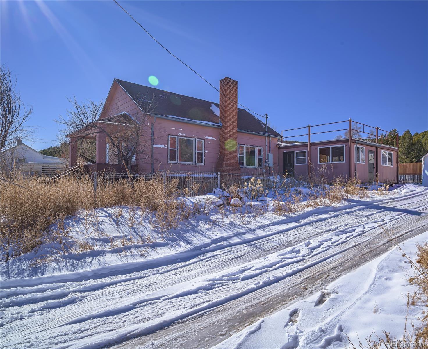 Handy person or investor ready property! Set on over half an acre just outside of town, this 3 bedroom, 1 bath property offers space, flexibility, and opportunity in a quiet setting with beautiful views of Fishers Peak, all just minutes from Trinidad Lake and downtown. The home features wood floors, large open living room with coved ceilings, as well as a basement with abundant storage and a wood stove. An oversized 18x23 covered and enclosed patio provides room to expand or customize to fit your vision. Outside, you will find a 2-car garage, an additional 1-car garage, multiple storage sheds, two small old houses currently used for storage, and a large area ideal for RV parking. The sale includes multiple vacant lots on both sides of the road, offering excellent potential for a shop, additional structures, or future development. With room to spread out and plenty of upside, this property is being sold as-is and is ready for the next owner to bring it back to life.