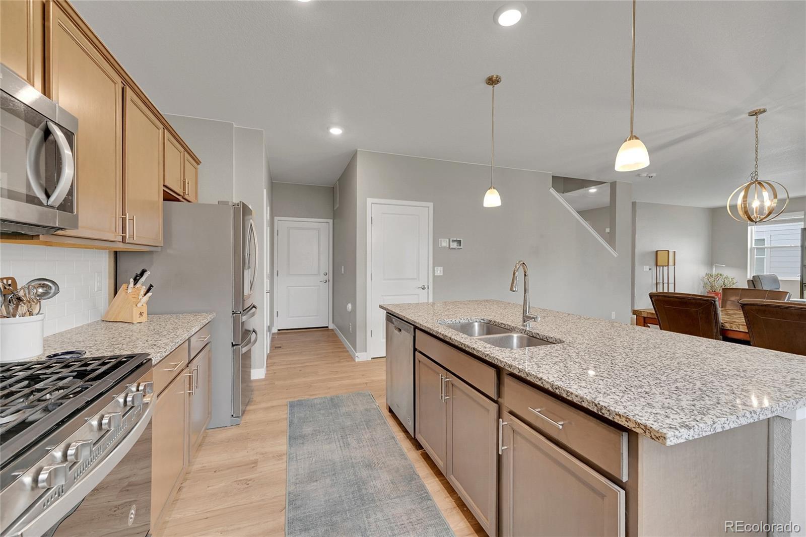 Welcome to your dream home in the heart of Thornton, CO! This stunning 4-bedroom, 3-bathroom residence offers a generous living space both upstairs and on the main floor. Nestled in a great neighborhood, this home is perfect for those who love comfort and style. The open floorplan seamlessly connects the living, dining, and kitchen areas, making it ideal for entertaining and family gatherings. The gourmet kitchen is a chef's delight, featuring stainless steel appliances and ample counter space. Retreat to the massive Primary Suite, complete with a spacious walk-in closet and an elegant Primary Bathroom that promises relaxation. Situated on a larger homesite, this property boasts a sizeable backyard, perfect for outdoor activities and enjoying Colorado's beautiful weather. The 2-car garage provides ample space for vehicles and storage. Lowest priced resale home in the area! Don't miss the opportunity to make this exceptional property your own and enjoy the best of Thornton living!