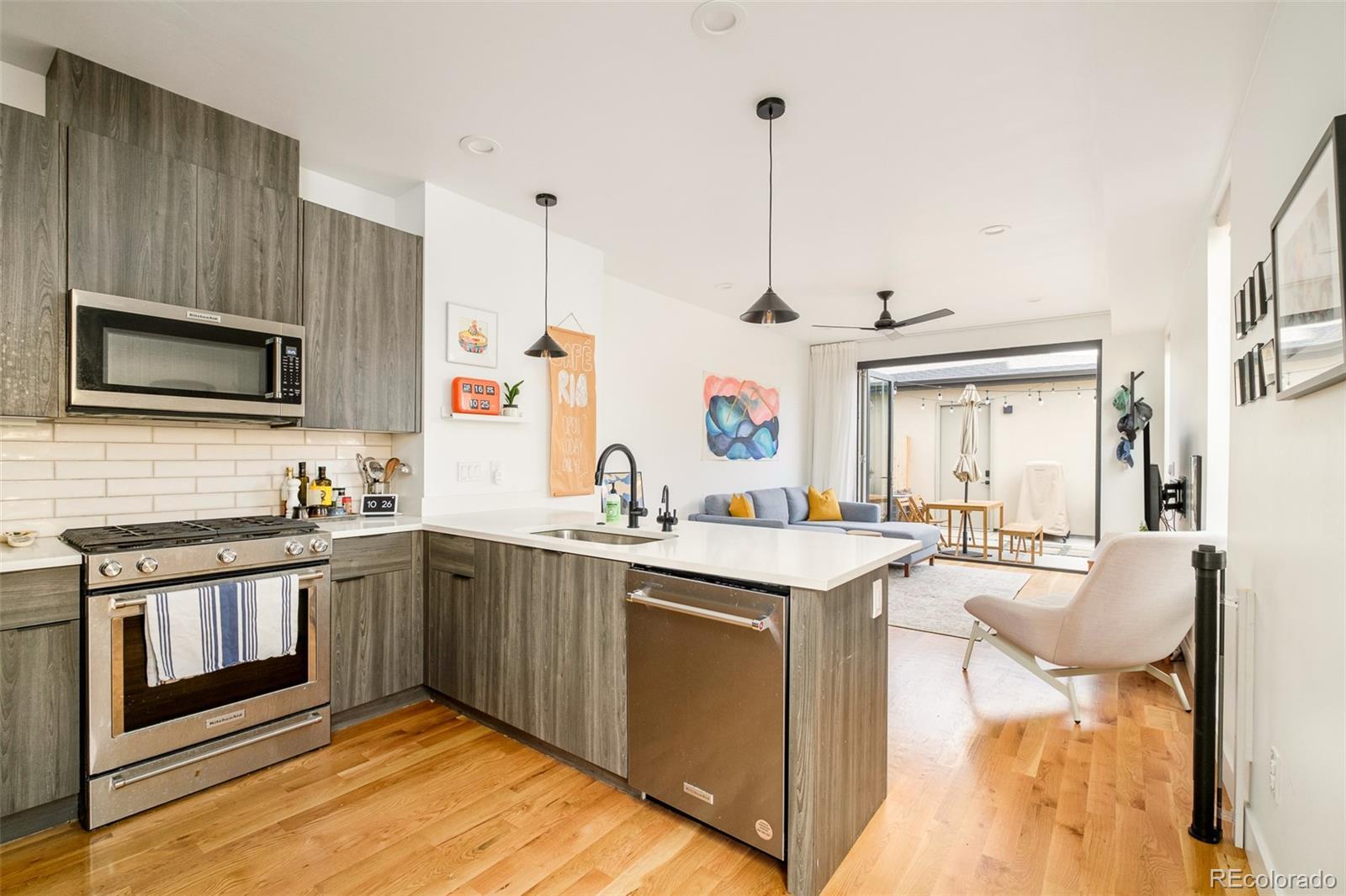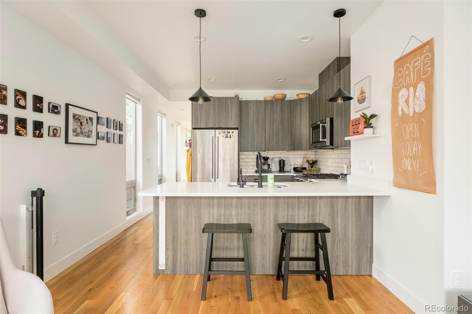 An artful expression of modern living is available for lease in this newer construction Sloan’s Lake townhome, where sunlit interiors and effortless indoor-outdoor connection define a rare urban retreat. Just one block from the lake and moments from vibrant dining and entertainment, this 2023 residence offers three levels of refined design and exceptional livability. A picture window frames the dining area, leading into an open kitchen with sleek cabinetry and a peninsula with seating. The living area expands through a multi-panel glass door to a private backyard with a patio, perfect for quiet mornings or lively hosting. Upstairs, the generous primary suite boasts a walk-in closet, complemented by two additional bedrooms. The third level features a flexible lounge area with a wet bar and access to a rooftop deck capturing picturesque mountain and city skyline views. Complete with a detached one-car garage, this pristine home embodies the best of contemporary Sloan’s Lake living. SHORTER LEASES WILL BE CONSIDERED ON A CASE BY CASE BASIS. Application Link: https://apps.myrental.com/renter/application/#/3SFP7TIM87NT