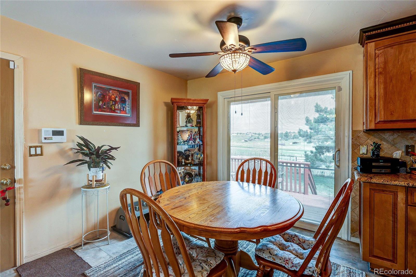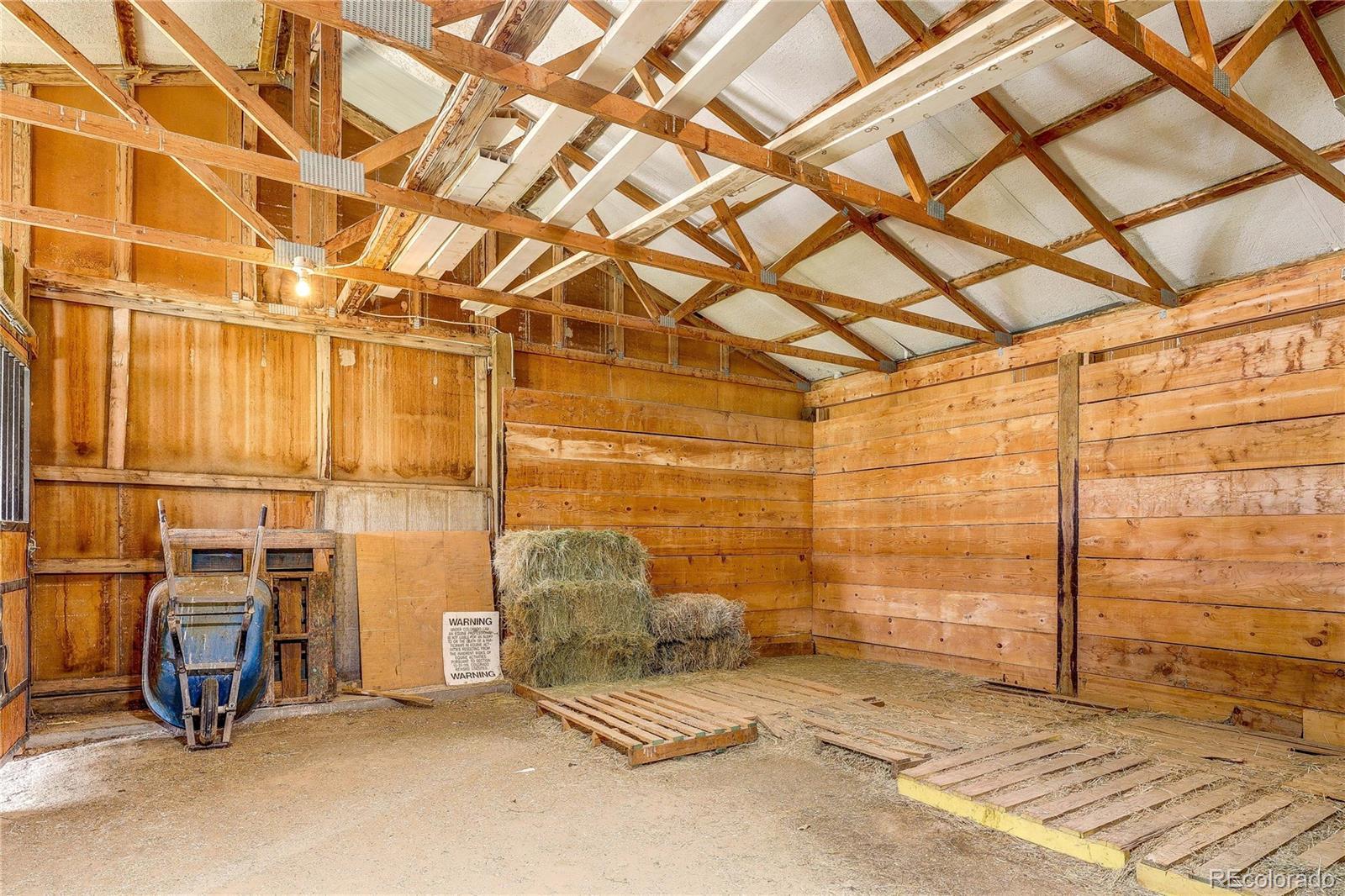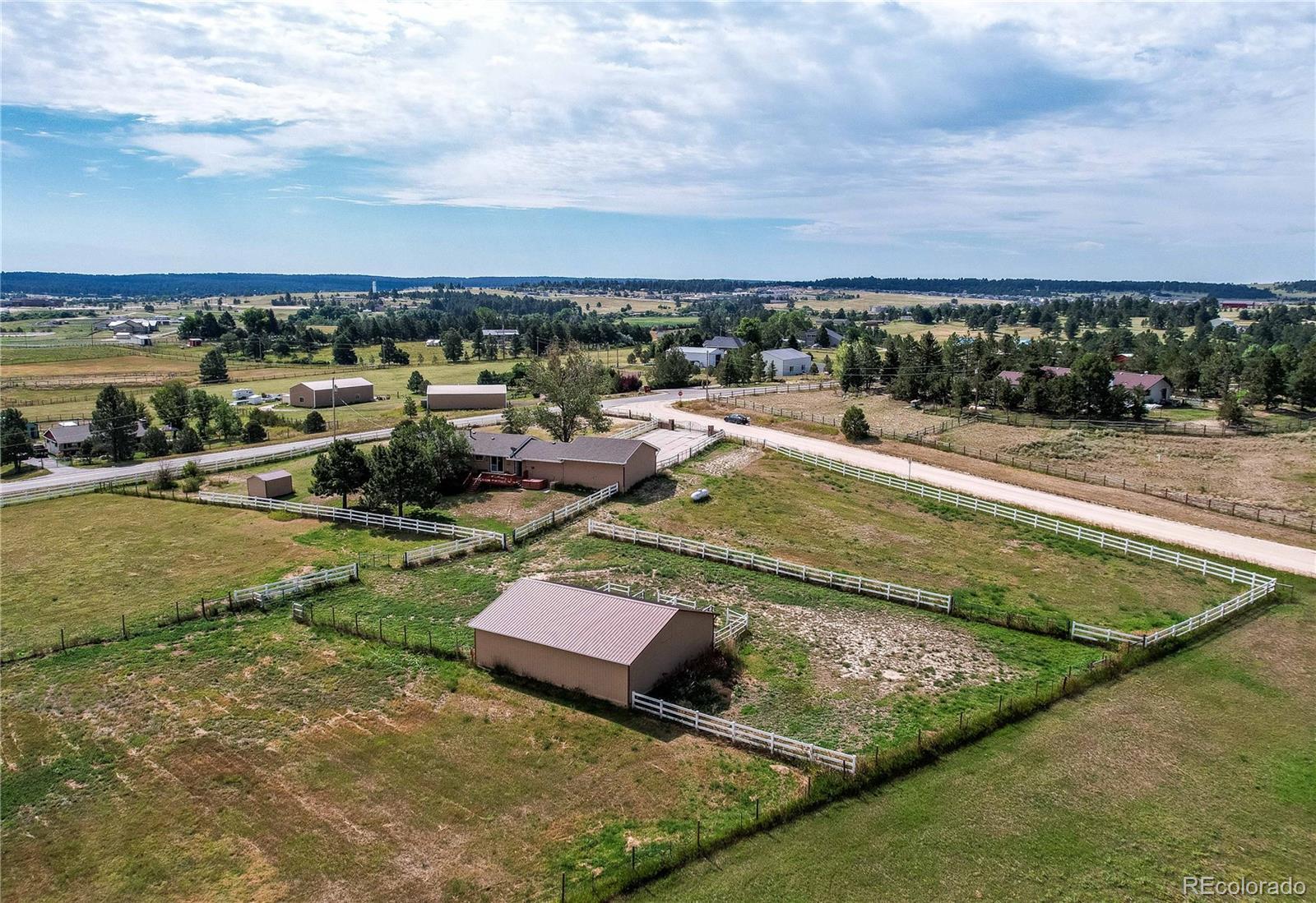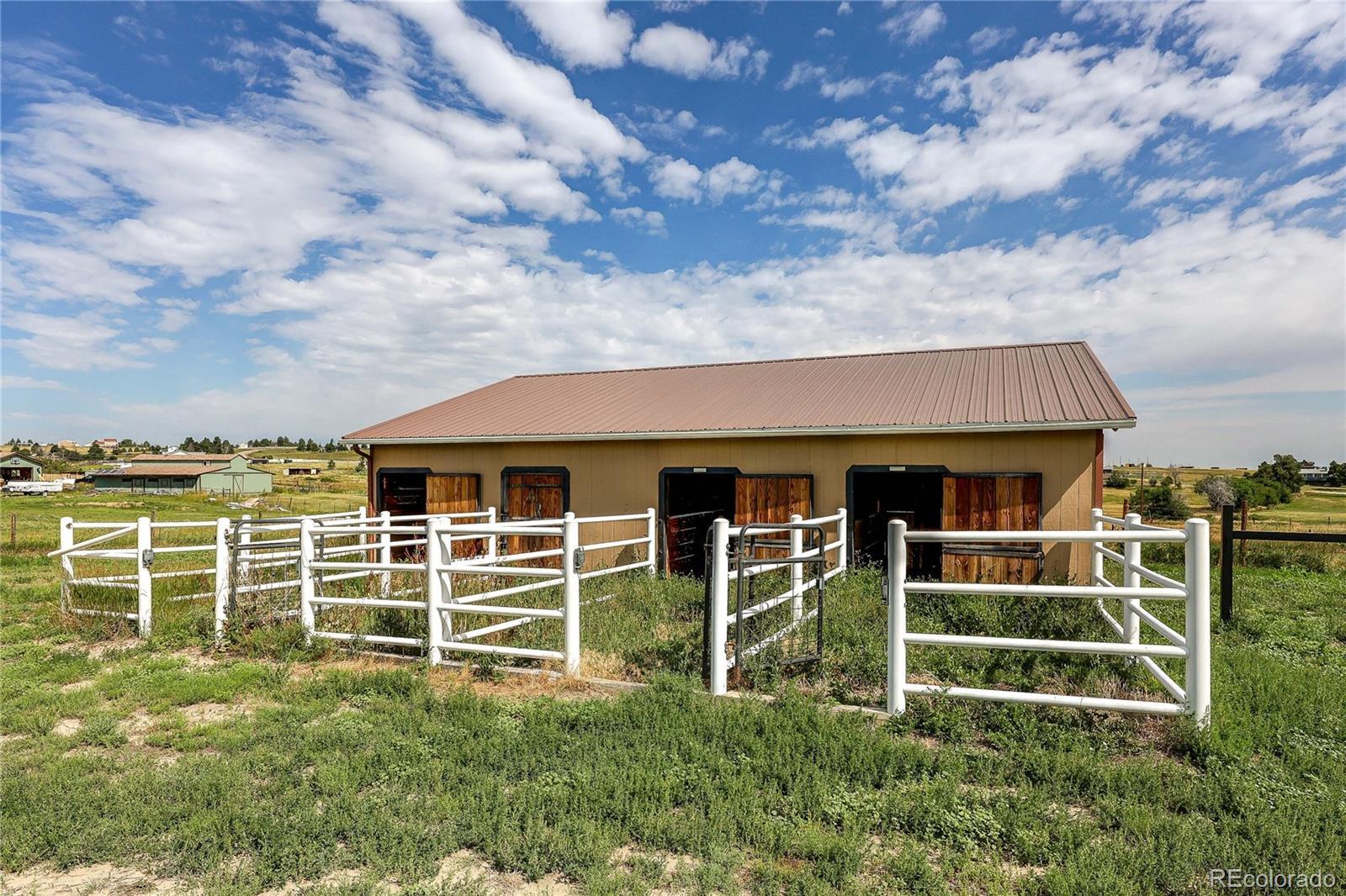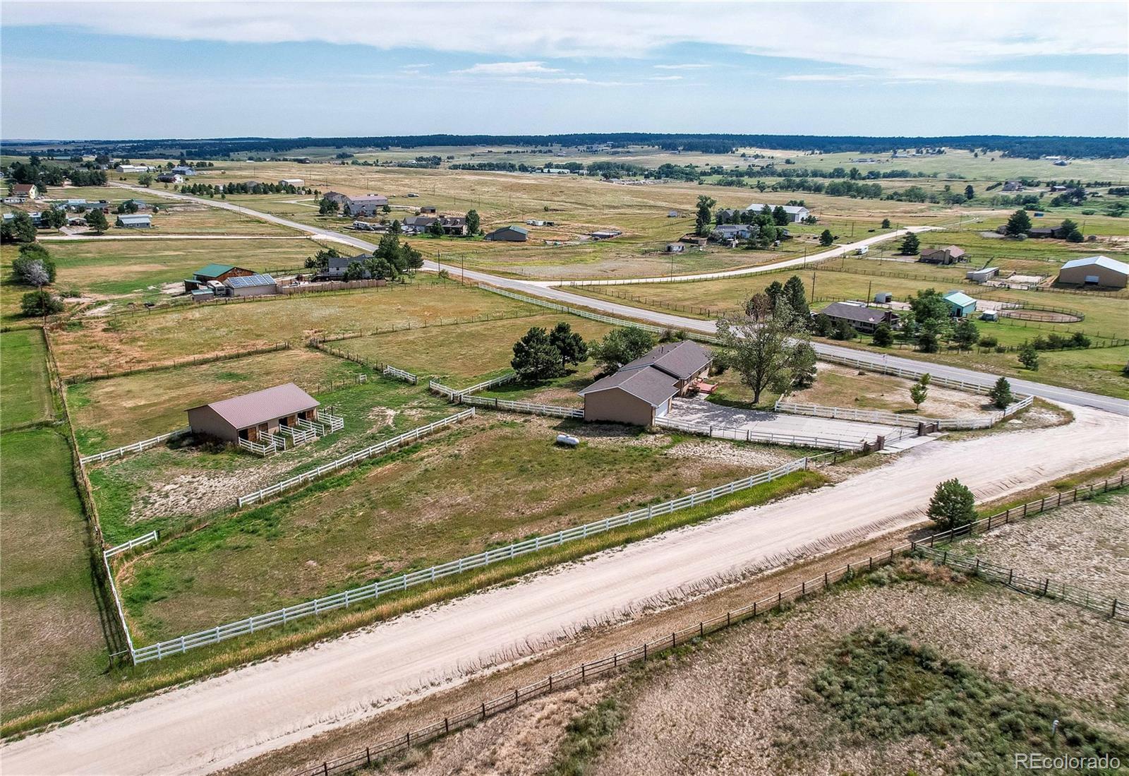 2385 Arabian Trail is the ultimate turnkey equestrian property in the heart of Elizabeth’s sought after Cimarron community. No HOA, no covenants, no more boarding fees. Just your own ranch style home on 5 fully fenced acres (field fencing, no barb wire), this well-maintained property is horse and livestock ready with 5 fenced and cross fenced pastures, approximately 10 gates for ease of movement, and a thoughtfully designed barn with 4 box stalls, runs, center aisle, large tack room, hay storage, and water spigot. 2 stalls are equipped with automatic waterers. Ample space to build an arena and the backyard shed could also work as a chicken coop. The 3 bed, 3 bath ranch style home offers 2,504 total sq ft (1,252 up/down) of flexible living spaces. Main level features 2 beds and 2 baths plus a huge custom walk-in closet the size of a bedroom (easily converted back). Upgraded galley kitchen has toffee cabinets, solid granite countertops, tile backsplash, deep sink, pantry, and an oven with air fryer. Sliding doors open from the dining area to a back deck with a working hot tub, both perfect for relaxing after a busy day. Hardwood floors are hidden under carpet to protect from pets and beautiful solid wood doors add timeless charm. The finished basement offers a large family room with a dry bar, bedroom with egress window, a ¾ bath, and a bonus room ideal for storage or gym. Exterior perks include an electric security gate with brick columns, cement driveway, oversized 4-car garage with an exterior access door, back-up generator, and both vinyl and box fencing to keep pets safe. The roof is brand new with Class 4 shingles ($22K value), septic, air conditioner & furnace have been serviced. Back deck has been painted. Rare opportunity to own a move-in ready equine retreat in a convenient location, just minutes from town with stores, retail, dining & schools, with rural peace and exceptional utility. Plenty of room to add a ring or round pen. Lot's of parking available.