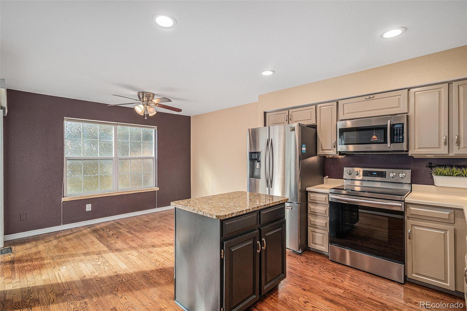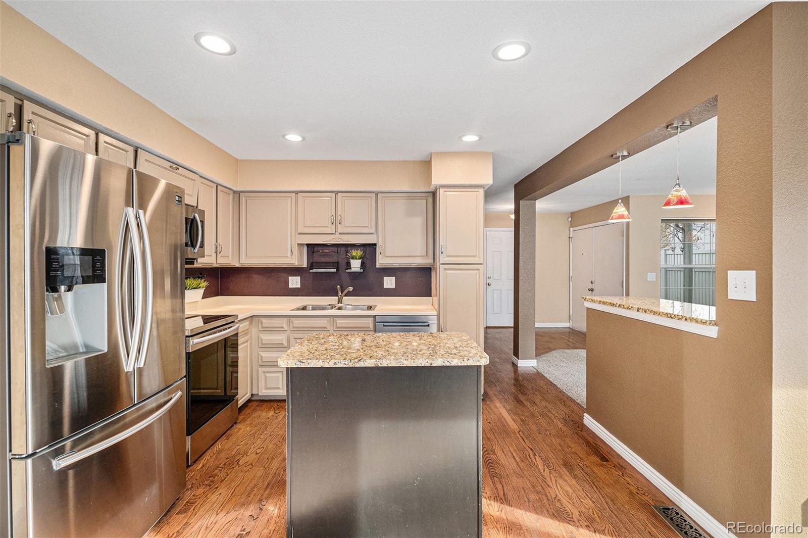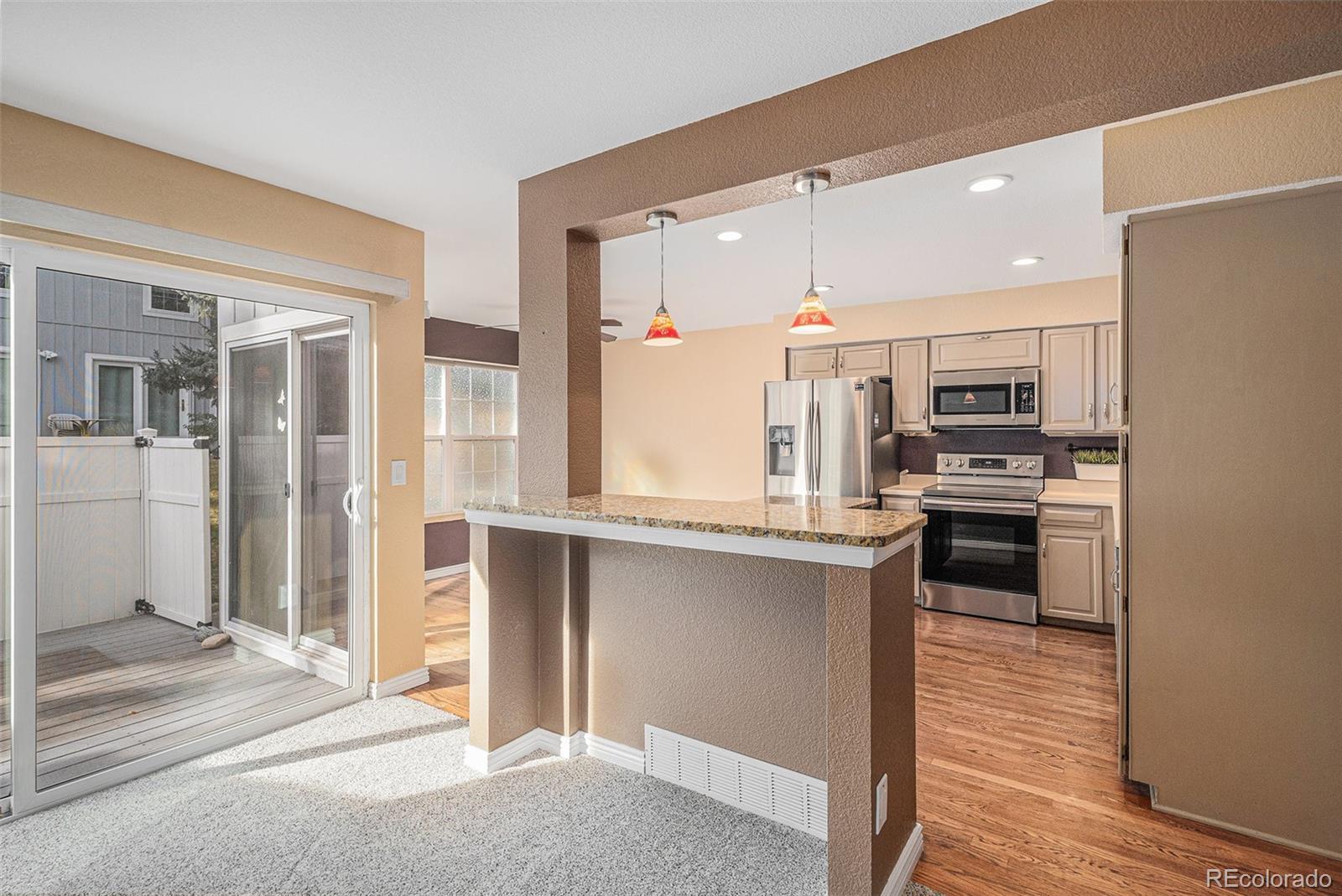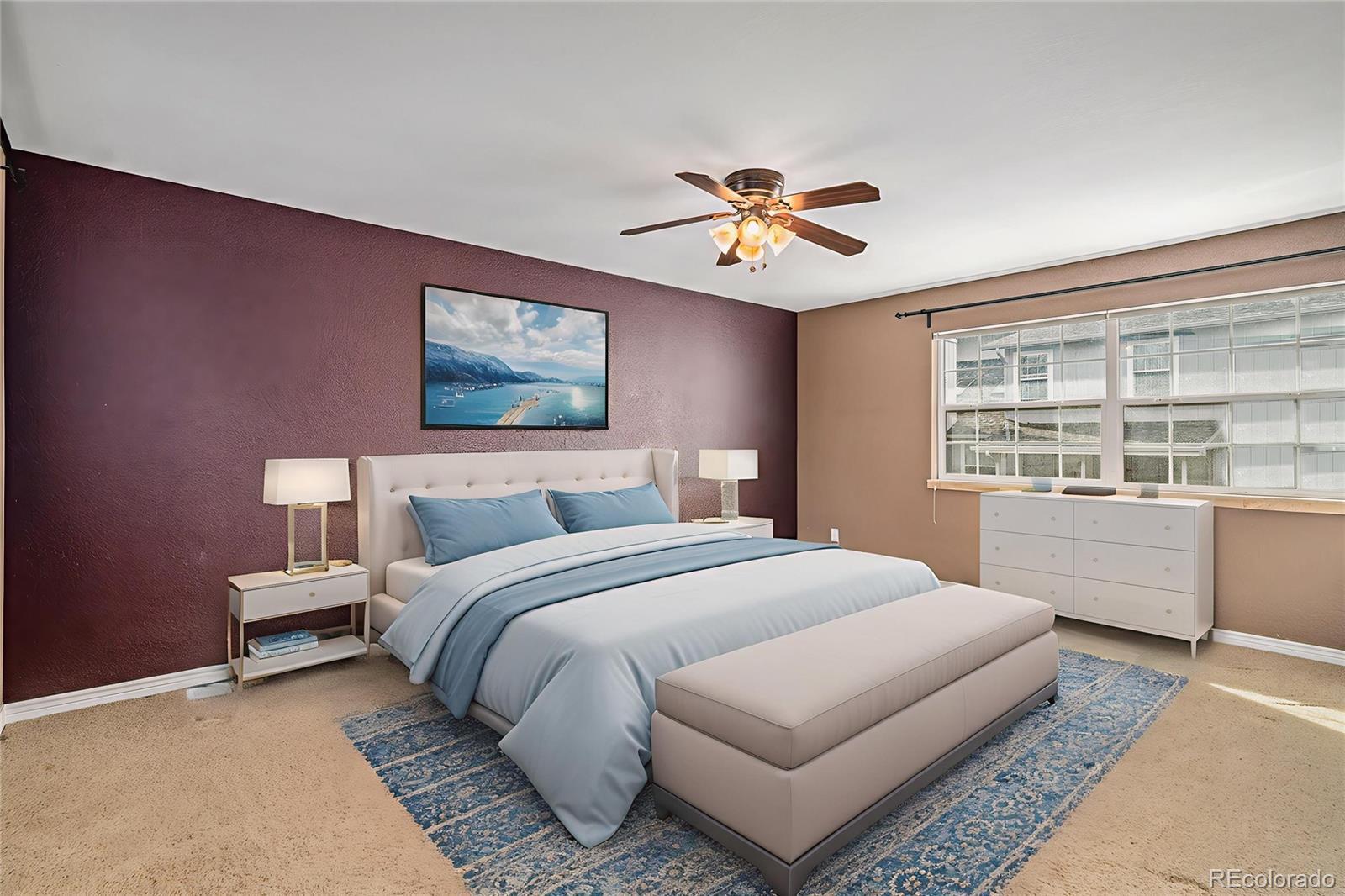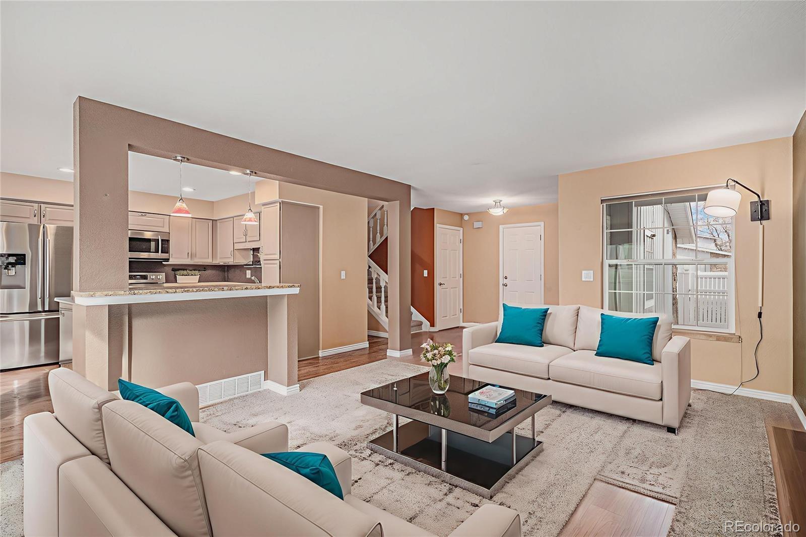 Click the Virtual Tour link to view the 3D walkthrough. Discounted rate options and no lender fee future refinancing may be available for qualified buyers of this home. Welcome to this beautifully designed Aurora home featuring a spacious living room and a modern kitchen with an island and bar seating that flows seamlessly into the dining and main living areas. The primary bedroom offers a generous walk-in closet and a private retreat, while an additional bedroom upstairs provides flexibility for guests or hobbies. The newly finished basement adds even more living space with a large secondary living area, an extra bedroom, and a full bath. Step outside to a fully fenced deck, perfect for relaxing or entertaining. Located in a friendly Aurora community, this home provides easy access to the DTC, local shopping, dining, parks, and recreational areas, with convenient routes to major roadways for commuting throughout the Denver metro area.