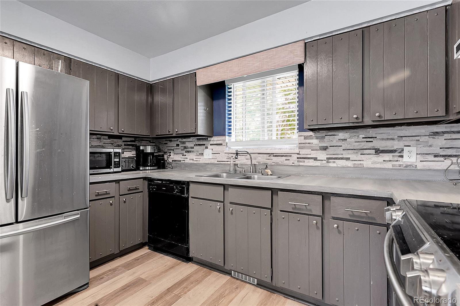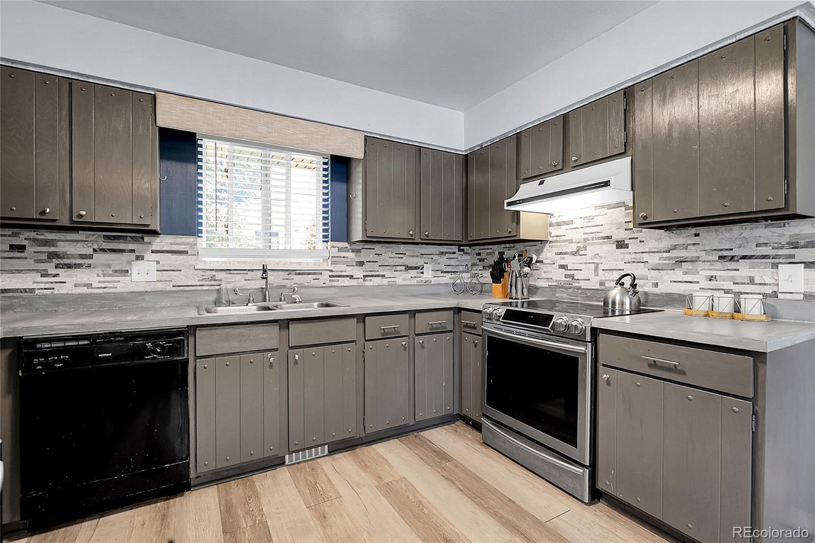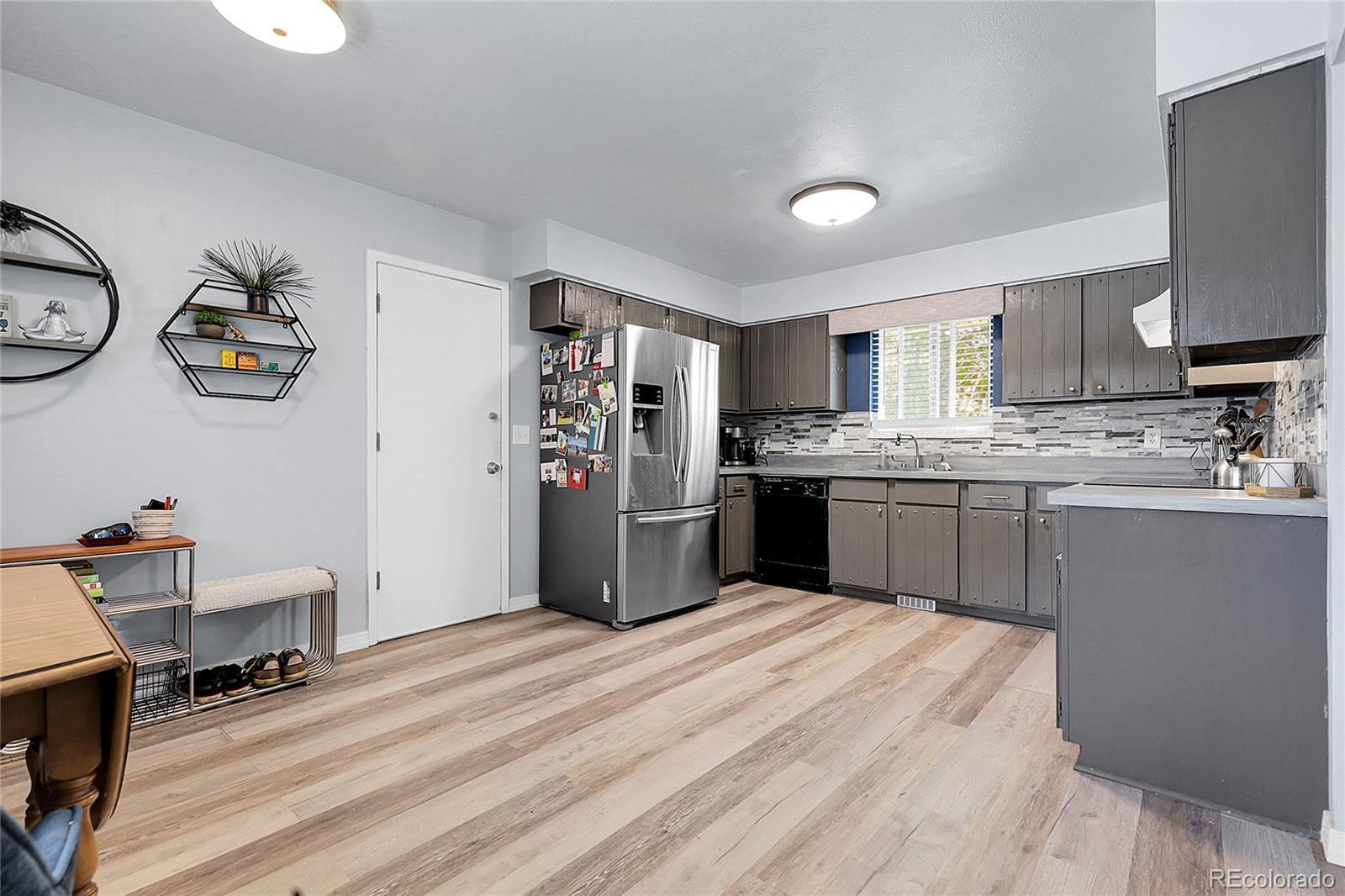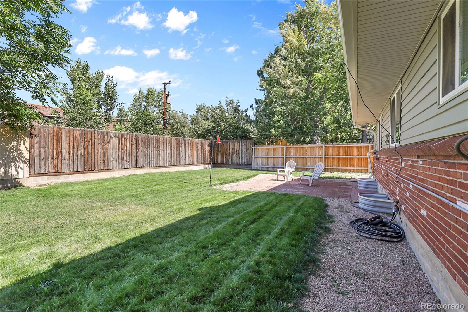 Beautiful Walnut Hills RANCH that sits on just under 1/4 acre with NO HOA! Great opportunity in this 4 Bed 3 bath Cherry Creek Schools home, walking distance to everything you could need or want! Only a short drive to DTC! Upon entering, notice the vinyl plank flooring throughout. The updated kitchen is complete with stainless steel appliances, vinyl flooring, decorative tile backsplash, Samsung range and plenty of cabinet space. Attached to the kitchen is a breakfast nook for small meals. Down the hall, step into the family room ready for entertaining and adjacent dining room fit for family gatherings. Find the primary bedroom and ensuite bathroom on the main floor along with two more bedrooms and another full bathroom. Head down to the basement and enjoy a large rec room, finished with vinyl plank flooring and plenty of natural light. There is also another bedroom and bathroom in the basement and 2 large storage areas, and the utility/laundry room. Take a seat on your back patio and enjoy the private large yard and all that this wonderful home has to offer. Notice the Newly poured concrete driveway, 2 car garage, newer windows, and updated window coverings. Nearby to schools, parks, shopping and only a short trip to I-25 and Park Meadows. Schedule your showing today and don't miss out on this one!