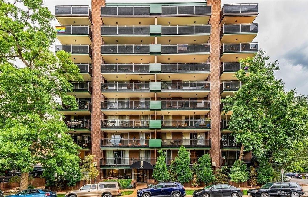 Views, Parking, and Rooftop Pool in Cheesman Park! Competitively priced at $374,000, this 8th floor residence offers above tree line views, large private balcony, secure covered gated parking, EV charging, and more. Seller Will Credit Buyer 6 Months of HOA Payments at Closing! Experience elevated city living with sweeping east sunrise views and natural light throughout the day. This remodeled residence blends modern comfort with refined design, featuring 9' ceilings, ambient lighting, wide plank vinyl flooring, tall doors, and patio doors that open to a spacious private balcony, accessible from both living room and bedroom. Enjoy relaxing on your own private patio or take in breathtaking city and mountain views from the many rooftop decks. The updated kitchen showcases generous prep space for everyday cooking or hosting. The bedroom layout was thoughtfully reimagined, with an expanded closet relocated to the hallway just outside the double vanity bathroom, creating improved flow and functionality. Newly installed central air and ceiling fans provide year round comfort, while included heat adds efficiency during cooler months. Reserved gated covered parking includes a personal electric vehicle charging station, a valuable feature for modern living. The monthly HOA covers capital reserves, building insurance, structural maintenance, security, sewer, snow removal, trash, and water. Residents enjoy elevator access, fitness center, penthouse level indoor heated pool with floor-to-ceiling windows, outdoor lounge areas, clubhouse, front desk, on site management, and secure fob key entry. Within a few blocks of Cheesman Park and moments from Denver Botanic Gardens, neighborhood dining, boutique shopping, and City Park, this newly priced opportunity stands out in the under $400K market. A rare opportunity to own a truly stylish city retreat in one of Denver's most coveted neighborhoods...Schedule your showing and experience the views, light, and lifestyle from the 8th floor.