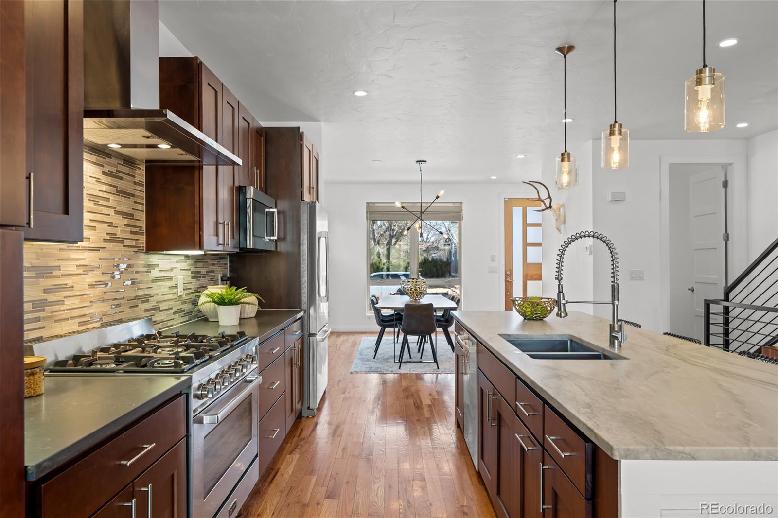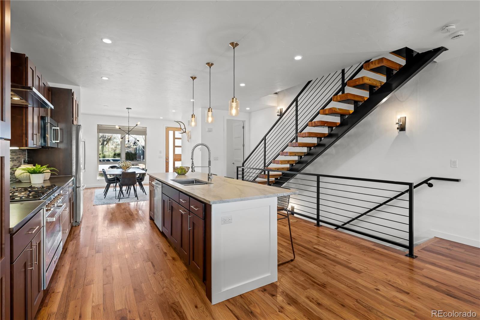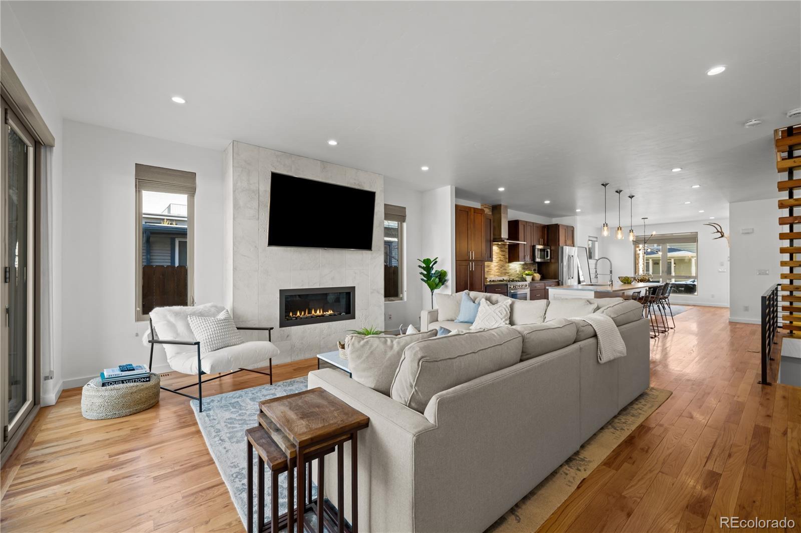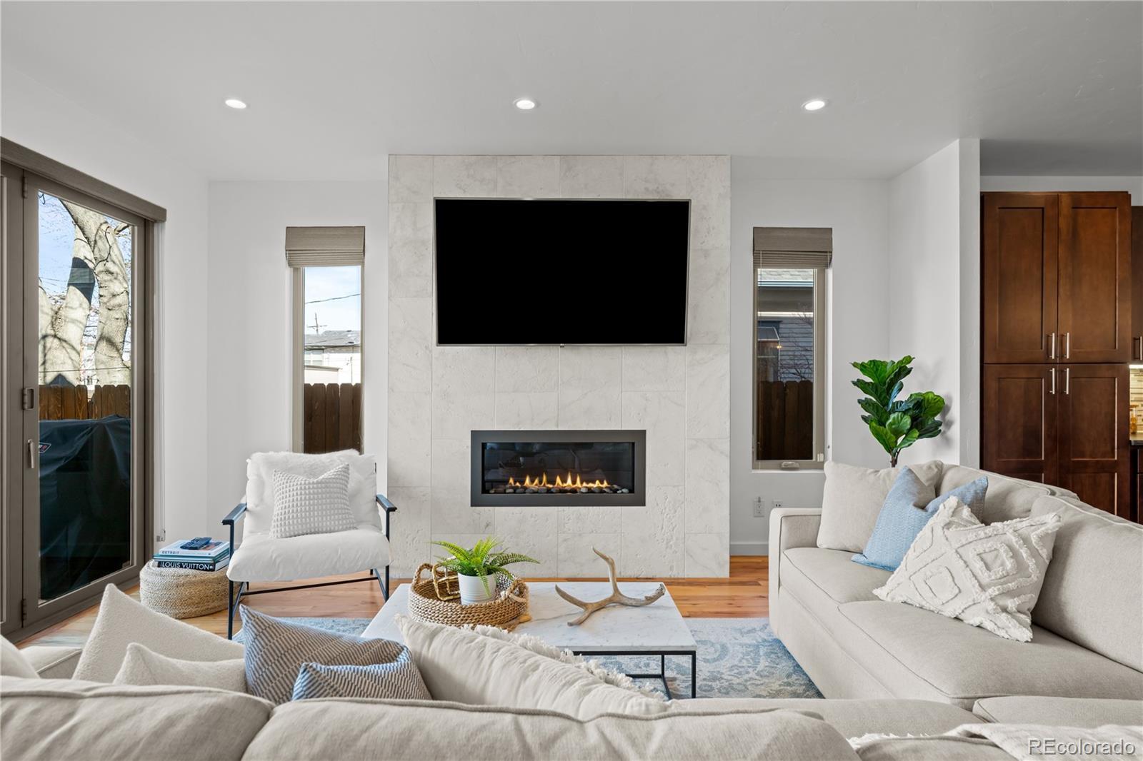 Stunning contemporary home just one block off vibrant Tennyson Street in the heart of Berkeley. This is modern Denver living at its finest, where design, comfort, and location come together seamlessly. Step inside to an open-concept floor plan flooded with natural light. Expansive windows and oversized bifold doors blur the line between indoors and out, creating an effortless flow for both everyday living and entertaining. The chef’s kitchen is a showpiece outfitted with high-end stainless steel appliances, sleek quartz countertops, and an oversized island that anchors the space. It opens beautifully into the living room, where a cozy fireplace sets the tone for relaxed evenings at home or easy access to the private patio for al fresco dining under Colorado skies. Upstairs, the spacious primary suite is a true retreat. Indulge in the spa-inspired bathroom featuring a freestanding soaking tub, separate glass-enclosed shower, and dual walk-in closets. An additional bedroom with its own en-suite bath and a conveniently located laundry room complete the second floor. The third level is built for entertaining. Host game days or cocktail nights beside the fireplace and wet bar, then take the party outside to the rooftop patio where sweeping views of the Rocky Mountains provide a breathtaking backdrop. The finished basement adds even more flexibility with a generous bonus room, full bathroom, and an additional bedroom featuring a large walk-in closet —ideal for guests, a home gym, or storing all your Colorado gear. Thoughtful upgrades include an exterior awning, CAT wiring throughout, and a security system with a garage camera — blending luxury with smart living. And the location? Unmatched. Living one block from Tennyson means you’re steps from some of Denver’s favorite dining and nightlife spots like Parisi, Two Hands Restaurant, Hey Kiddo, Atomic Cowboy, and wine bars and craft breweries that make this neighborhood one of the most sought-after in Northwest Denver.