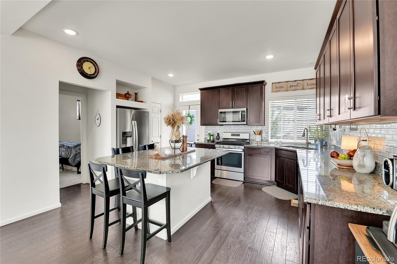 Discover low-maintenance living with thoughtful design and room to grow in this 3-story home, built in 2018 with soaring 9–10 ft ceilings and a light-filled open layout designed for easy living and entertaining. The gourmet kitchen shines with stainless steel appliances, gas range, large pantry, and an oversized island—perfect for hosting. Enjoy true low-maintenance luxury with full HOA coverage including lawn care and snow removal (sidewalks and stairs too). The main-floor primary suite offers a peaceful escape with a spa-like bath and walk-in closet. Upstairs, two bedrooms share a full bath, while the lower level provides flexible space for hobbies, pets, or storage, plus direct garage and laundry access. Step outside to a xeriscaped backyard with a custom patio and space for container gardening. Ideally located in vibrant Aurora near trails, parks, DIA, E-470, Southlands, Buckley SFB, and the Aurora Reservoir—this home is the perfect blend of comfort, convenience, and style.