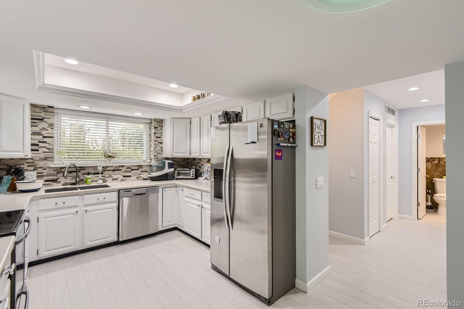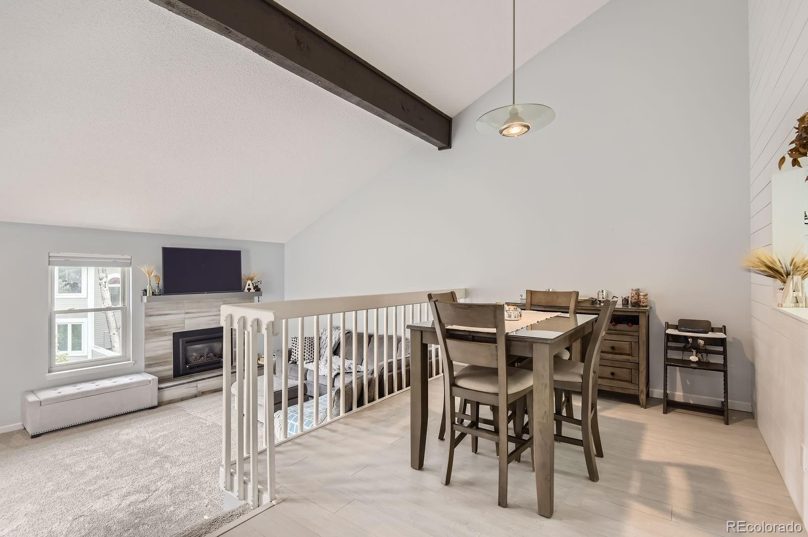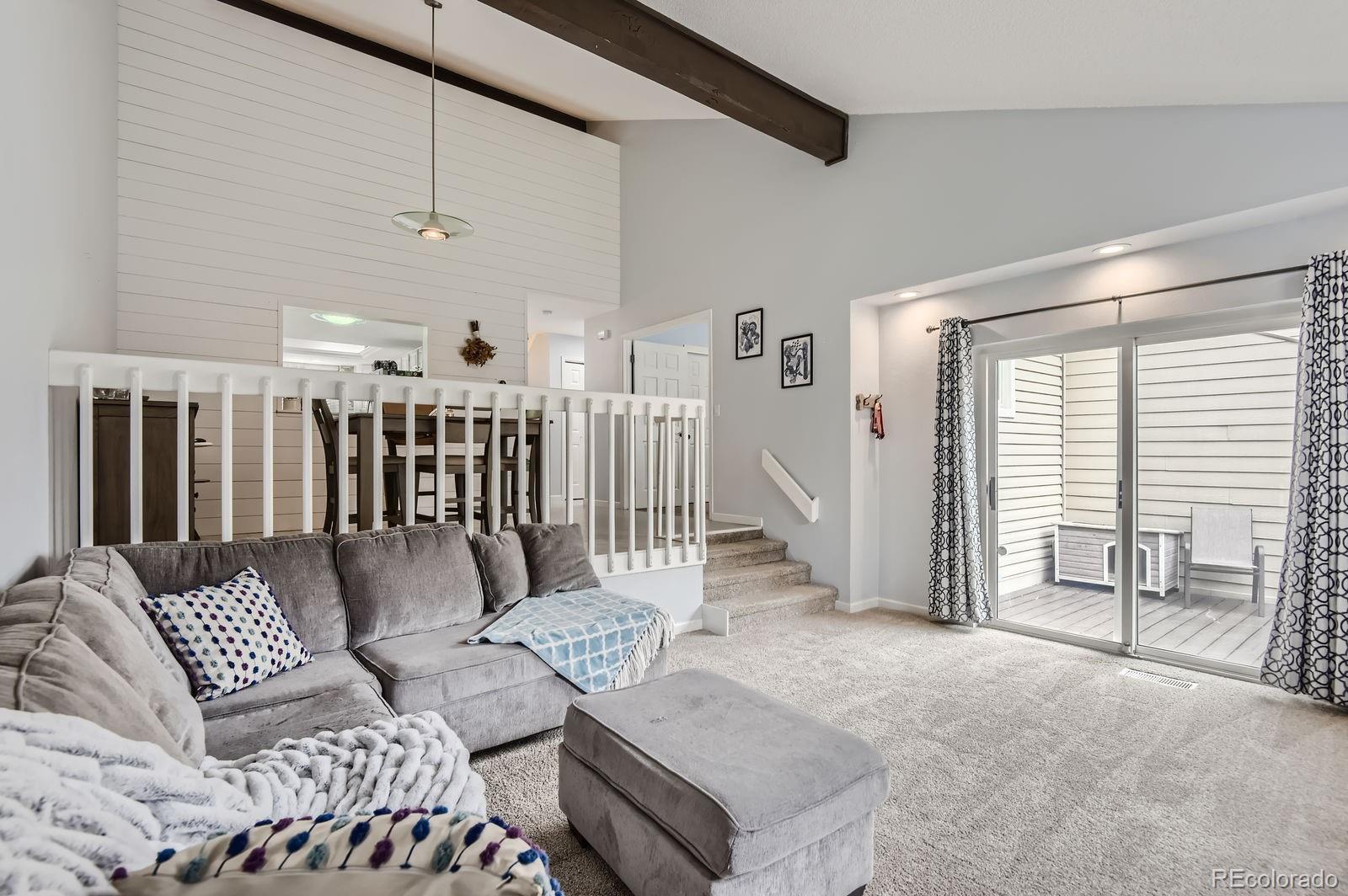 Visit this wonderful remodeled 2 bedroom/2 bath townhome with a fabulous oversized loft and natural light from both sides! This multi-level townhome has short levels which add character and separate spaces. The vaulted ceilings add drama and volume and feels like a full-sized home. The kitchen is very large with terrific counter space for multiple cooks. Add a cafe table for two or open up the pass through wall directly into the dining room which then is open to the living room for open concept living. The fireplace in the living room adds ambiance to the entire main floor areas. A main floor bedroom with double doors has access to the bathroom on the same level providing each bedroom with a bathroom. Upstairs is the primary bedroom with en-suite and a long walk in closet. Enjoy the spacious loft which works perfectly as an additional living space, office area, and space for additional guests. The many windows of this home offer natural lighting throughout. The full size laundry room has terrific additional storage and room for folding clothes with ease. There is access off of the living room to the large completely private patio which opens onto a grass area behind without backing directly to another unit. An attached garage enters into the home and is a rare find with an additional front door parking space and ample visitor parking. Within the development is access to the residential walking paths for biking and access to local parks. Features: Cherry Creek Schools, several nearby parks, close to the Tech Center & highway access, Park Meadows restaurants & entertainment, South Suburban Golf, Lifetime Fitness, South Glenn, hospitals, the Light Rail Station for direct transit. Updates include: newer carpet, keyless entry, smart dining light, updated baths with walk in showers, smart thermostat, attic fan, central air, and ceiling fans. This floorplan has options for a 3rd bedroom (loft) with jack 'n jill bath (through walk in closet) upstairs and open kitchen.