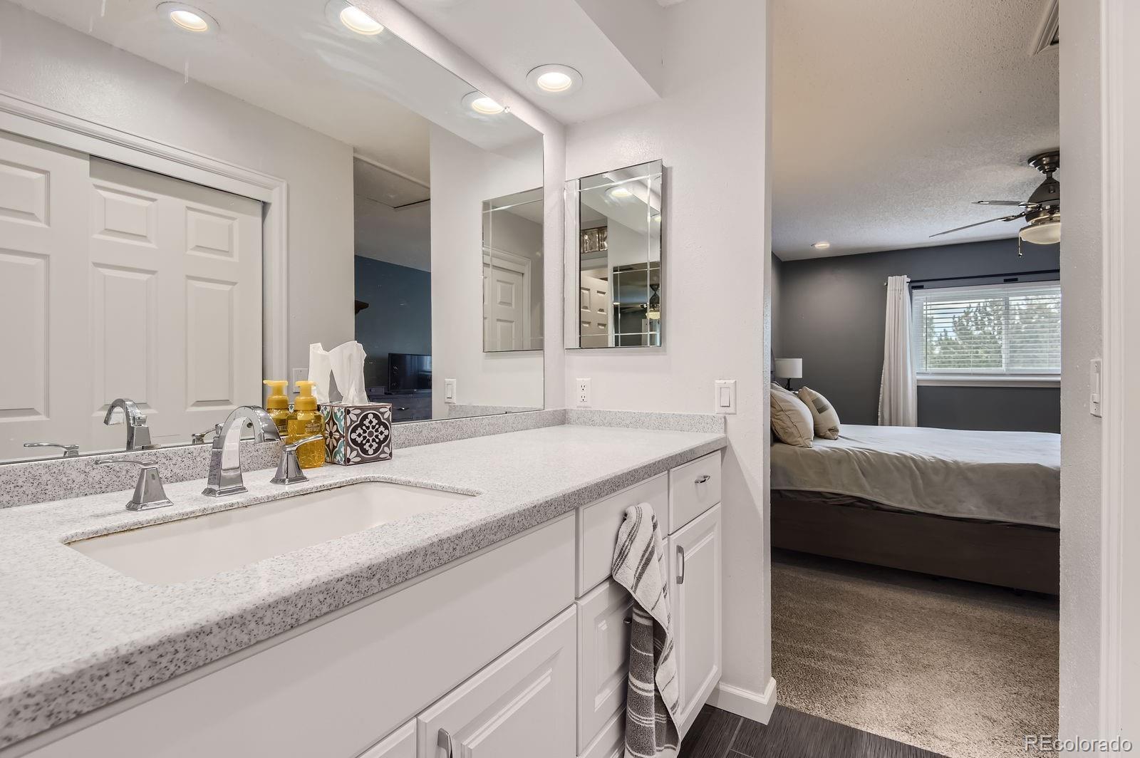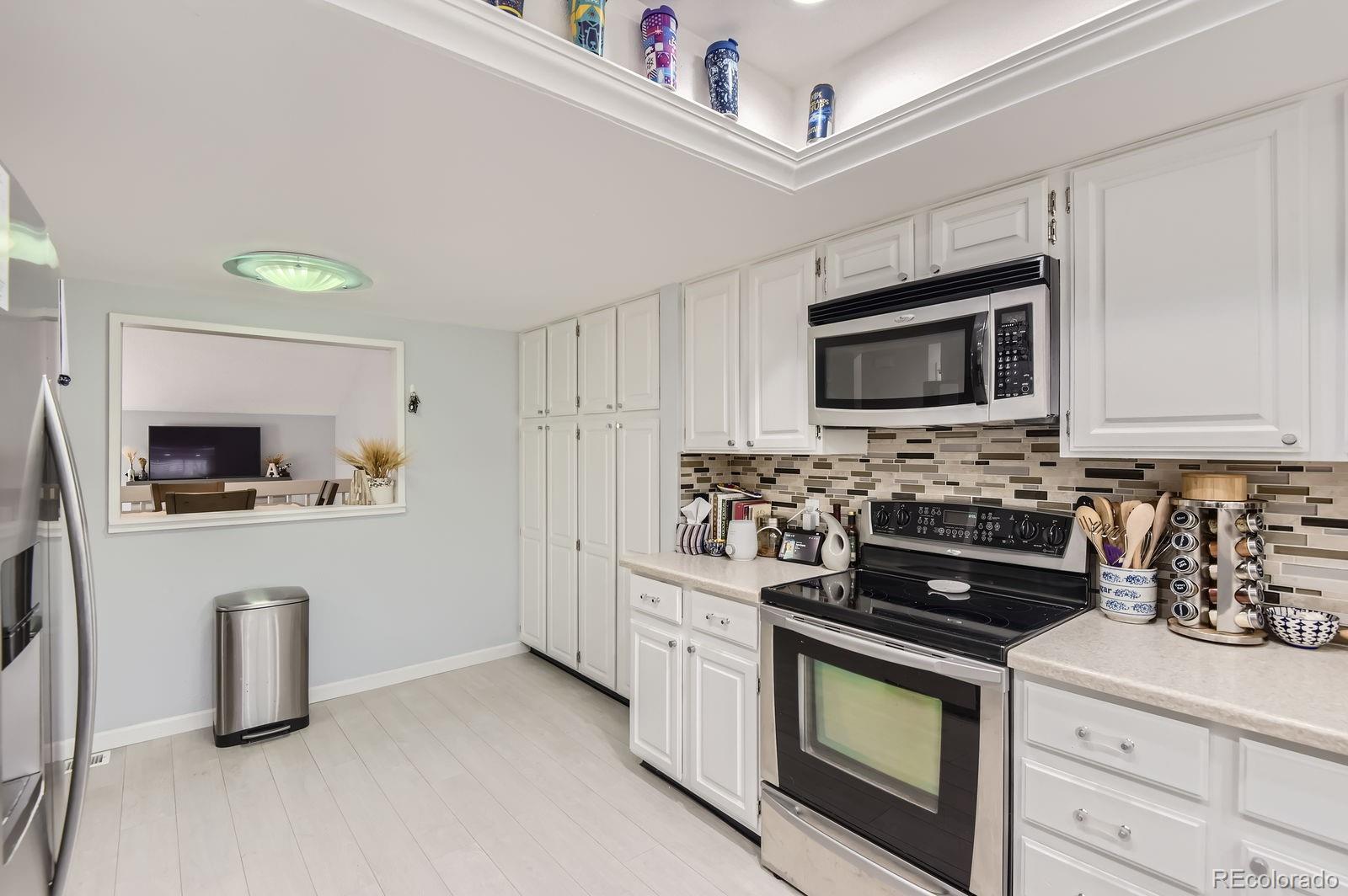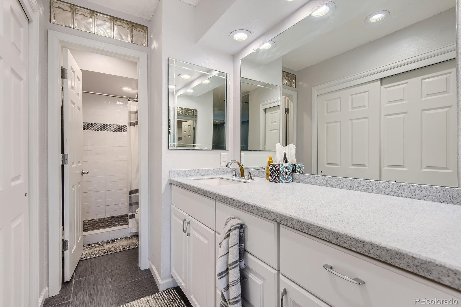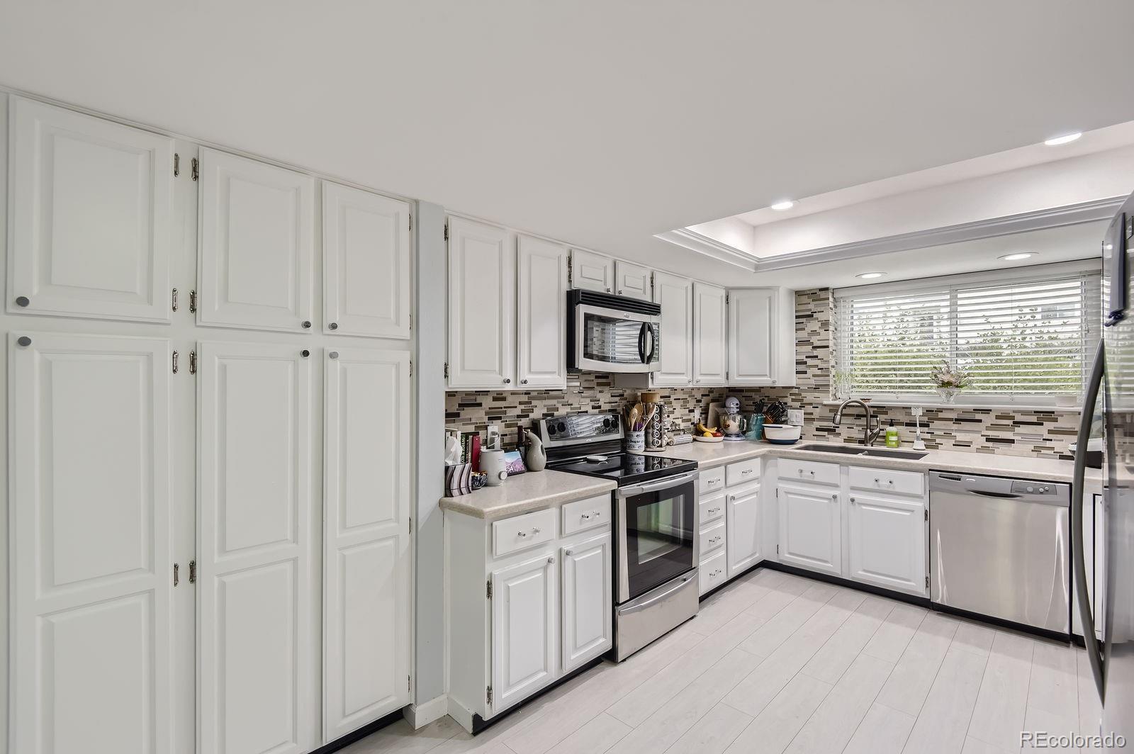Visit this wonderful remodeled 2 bedroom/2 bath townhome with a fabulous oversized loft and natural light from both sides! This multi-level townhome has short levels which add character and separate spaces. The vaulted ceilings add drama and volume and feels like a full-sized home. The kitchen is very large with terrific counter space for multiple cooks. Add a cafe table for two or open up the pass through wall directly into the dining room which then is open to the living room for open concept living. The fireplace in the living room adds ambiance to the entire main floor areas. A main floor bedroom with double doors has access to the bathroom on the same level providing each bedroom with a bathroom. Upstairs is the primary bedroom with en-suite and a long walk in closet. Enjoy the spacious loft which works perfectly as an additional living space, office area, and space for additional guests. The many windows of this home offer natural lighting throughout. The full size laundry room has terrific additional storage and room for folding clothes with ease. There is access off of the living room to the large completely private patio which opens onto a grass area behind without backing directly to another unit. An attached garage enters into the home and is a rare find with an additional front door parking space and ample visitor parking. Within the development is access to the residential walking paths for biking and access to local parks. Features: Cherry Creek Schools, several nearby parks, close to the Tech Center & highway access, Park Meadows restaurants & entertainment, South Suburban Golf, Lifetime Fitness, South Glenn, hospitals, the Light Rail Station for direct transit. Updates include: newer carpet, keyless entry, smart dining light, updated baths with walk in showers, smart thermostat, attic fan, central air, and ceiling fans. This floorplan has options for a 3rd bedroom (loft) with jack 'n jill bath (through walk in closet) upstairs and open kitchen.