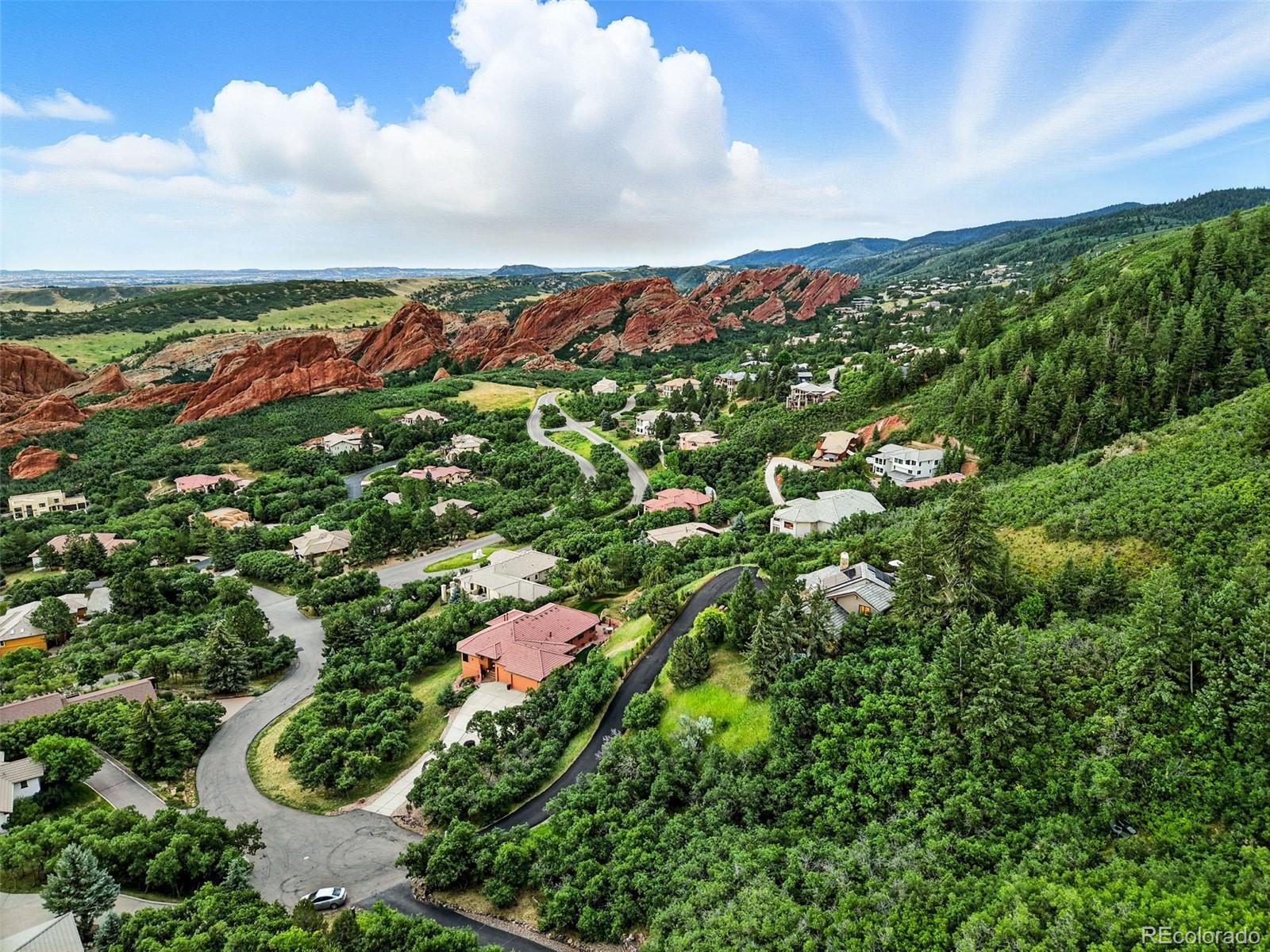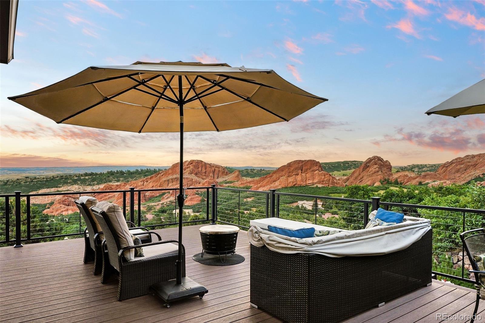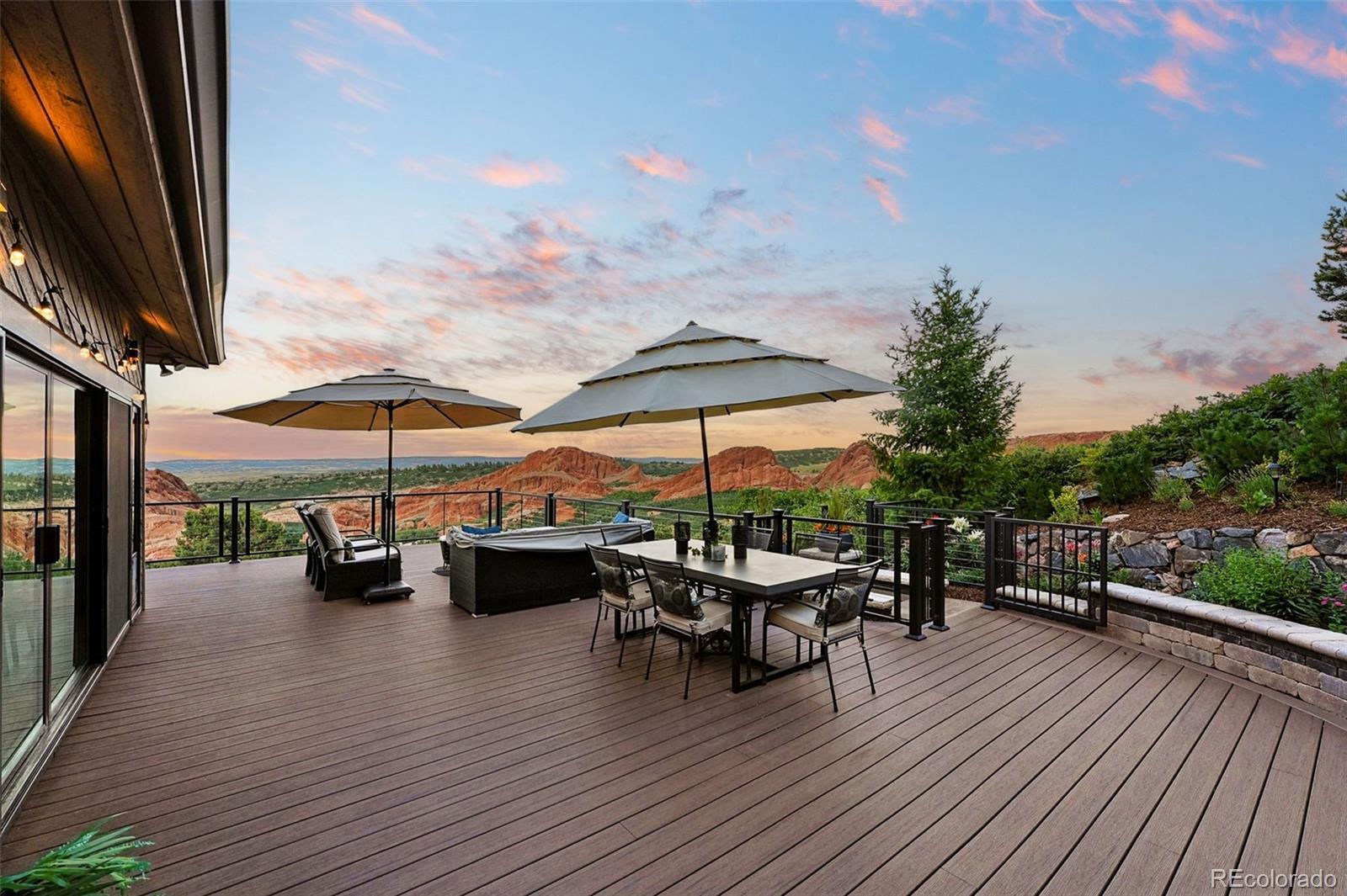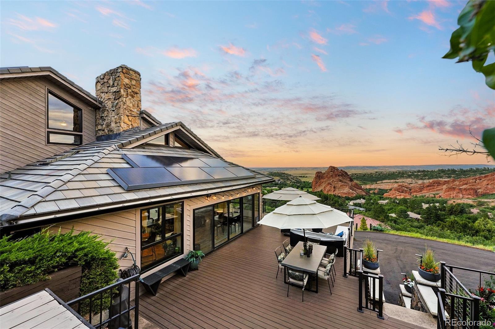 Some of the best views in all of Colorado! Gaze over MILES of captivating beauty from this custom mountain-modern retreat. Experience the tranquility and grandeur of mountain living just minutes from city amenities yet ideally located with direct access to outdoor adventure. From the moment you arrive, you’ll be struck by stunning curb appeal, connecting elevated design with nature. Abundant outdoor spaces provide the perfect setting for entertaining or relaxing in the crisp mountain air. Be captivated by incredible scenery, from Denver’s vibrant skyline and the sparkling waters of Chatfield Reservoir to Roxborough State Park’s legendary red rock formations and the renowned Arrowhead Golf Course. Designed to blend seamlessly with its natural surroundings, this home features expansive decks and wall-to-wall windows that illuminate an exceptional interior. The aesthetics are intentional and refined, including striking steel and glass doors, Australian cypress hardwoods, vaulted ceilings with skylights and an impressive 2-story stone wood-burning fireplace at the heart of the home. The modern kitchen features a built-in pantry, sleek appliances with induction cooking and gorgeous chiseled-edge quartzite. The spacious primary suite highlights a gas fireplace, floor-to-ceiling windows and a private deck with inviting hot tub surrounded by nature. The luxurious en suite reveals two vanities with soapstone counters, premium finishes, freestanding stone soaking tub and an indulgent walk-in shower. Every detail has been thoughtfully curated to create a harmonious balance of sophistication and comfort. This mountain sanctuary is more than a house – it’s an experience of effortless luxury and natural beauty, designed for sharing memorable moments. Truly a one-of-a-kind opportunity to own a home with views that must be seen to be believed. Come see for yourself how this remarkable retreat will elevate your lifestyle and leave a lasting impression.