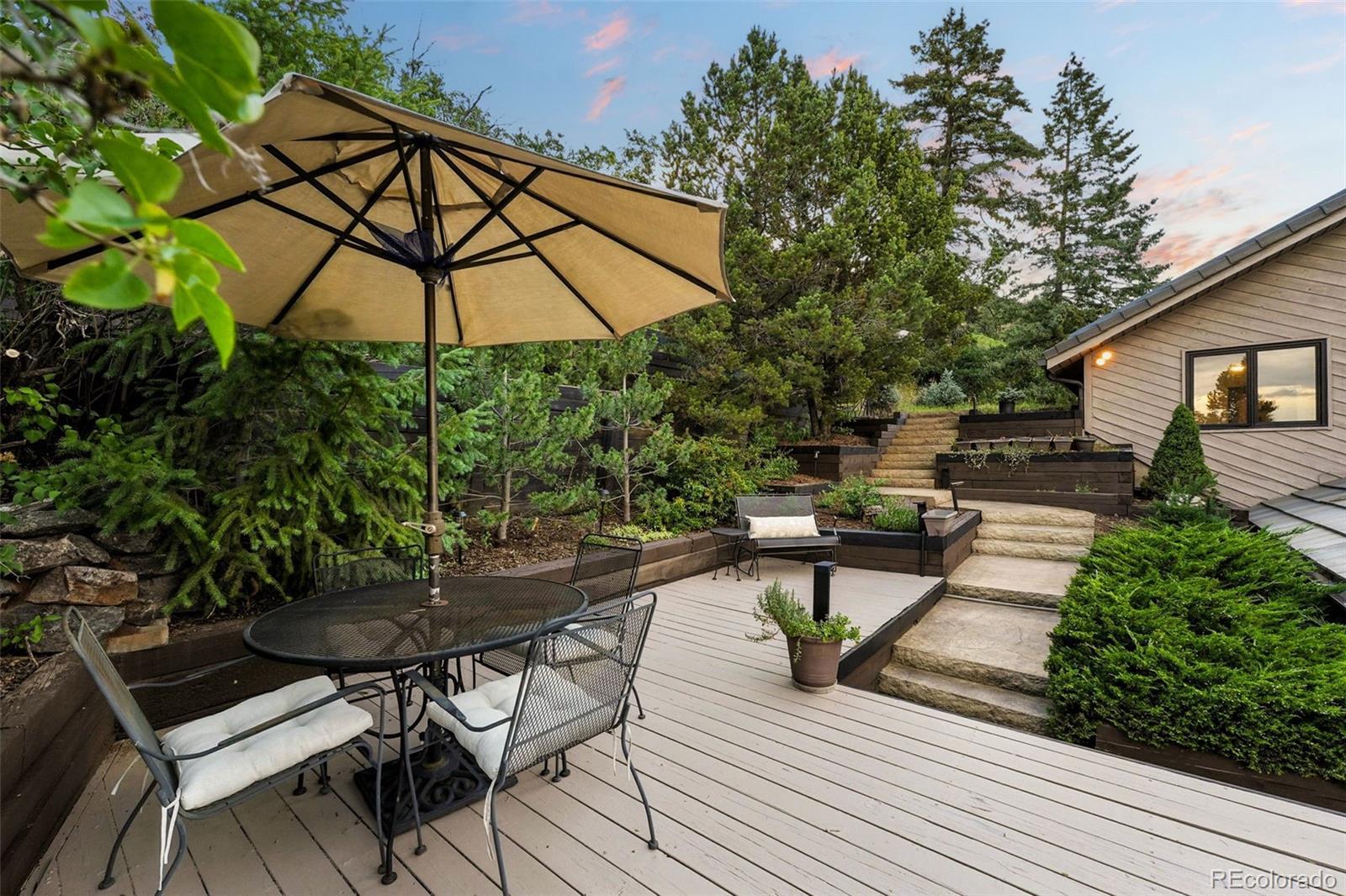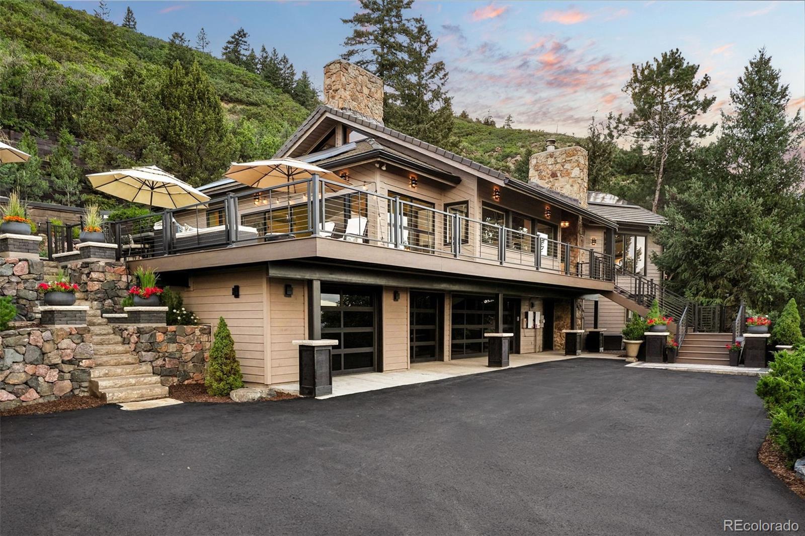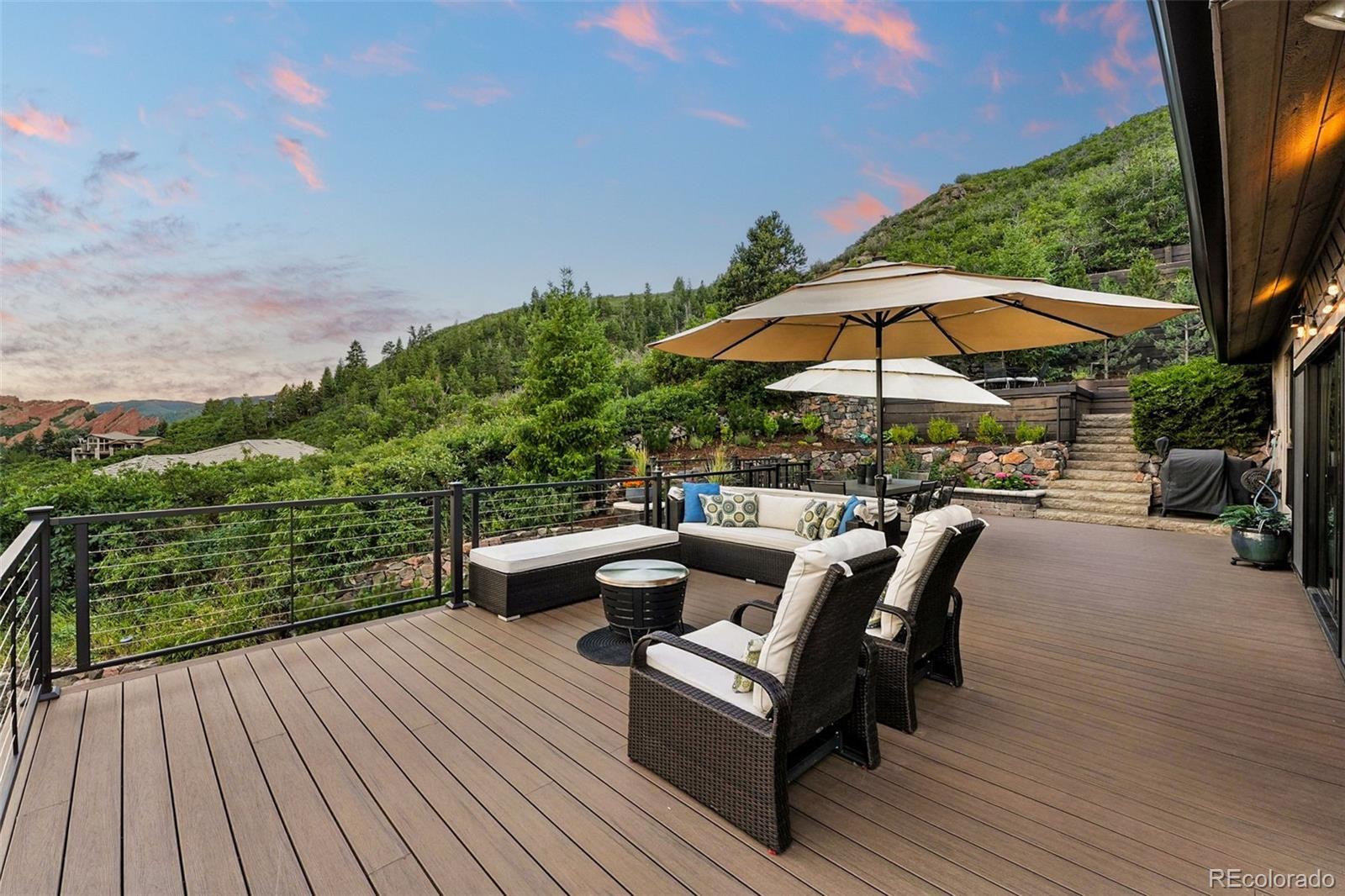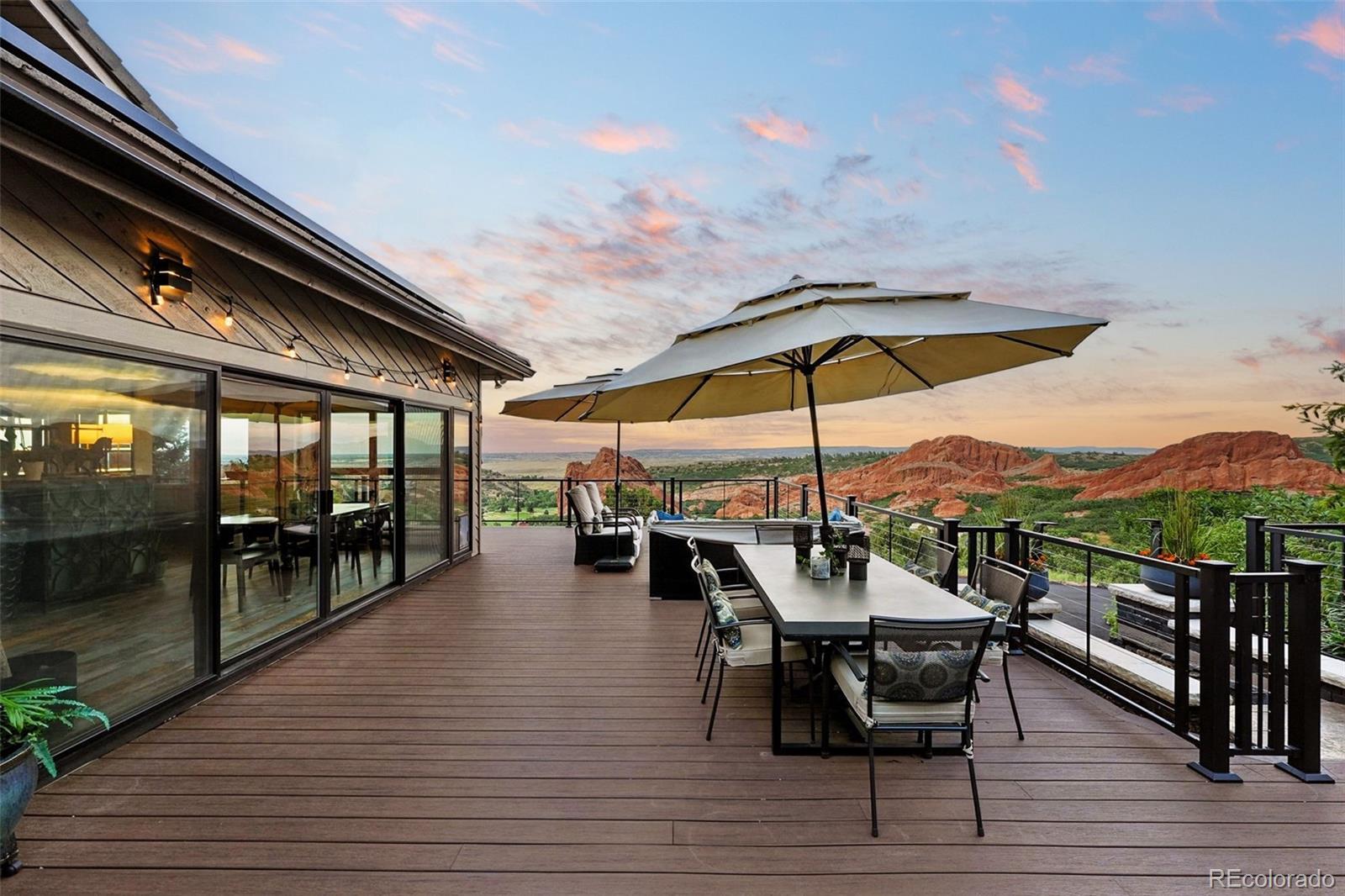 Some of the best views in all of Colorado! Gaze over MILES of captivating beauty from this custom mountain-modern retreat. Experience the tranquility and grandeur of mountain living just minutes from city amenities yet ideally located with direct access to outdoor adventure. From the moment you arrive, you’ll be struck by stunning curb appeal, connecting elevated design with nature. Abundant outdoor spaces provide the perfect setting for entertaining or relaxing in the crisp mountain air. Be captivated by incredible scenery, from Denver’s vibrant skyline and the sparkling waters of Chatfield Reservoir to Roxborough State Park’s legendary red rock formations and the renowned Arrowhead Golf Course. Designed to blend seamlessly with its natural surroundings, this home features expansive decks and wall-to-wall windows that illuminate an exceptional interior. The aesthetics are intentional and refined, including striking steel and glass doors, Australian cypress hardwoods, vaulted ceilings with skylights and an impressive 2-story stone wood-burning fireplace at the heart of the home. The modern kitchen features a built-in pantry, sleek appliances with induction cooking and gorgeous chiseled-edge quartzite. The spacious primary suite highlights a gas fireplace, floor-to-ceiling windows and a private deck with inviting hot tub surrounded by nature. The luxurious en suite reveals two vanities with soapstone counters, premium finishes, freestanding stone soaking tub and an indulgent walk-in shower. Every detail has been thoughtfully curated to create a harmonious balance of sophistication and comfort. This mountain sanctuary is more than a house – it’s an experience of effortless luxury and natural beauty, designed for sharing memorable moments. Truly a one-of-a-kind opportunity to own a home with views that must be seen to be believed. Come see for yourself how this remarkable retreat will elevate your lifestyle and leave a lasting impression.