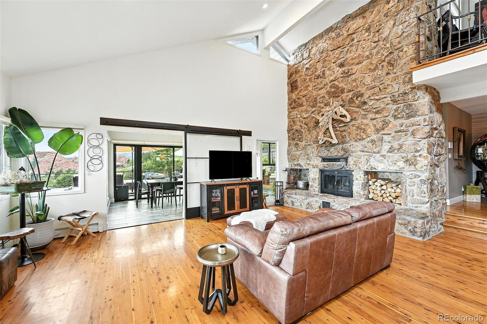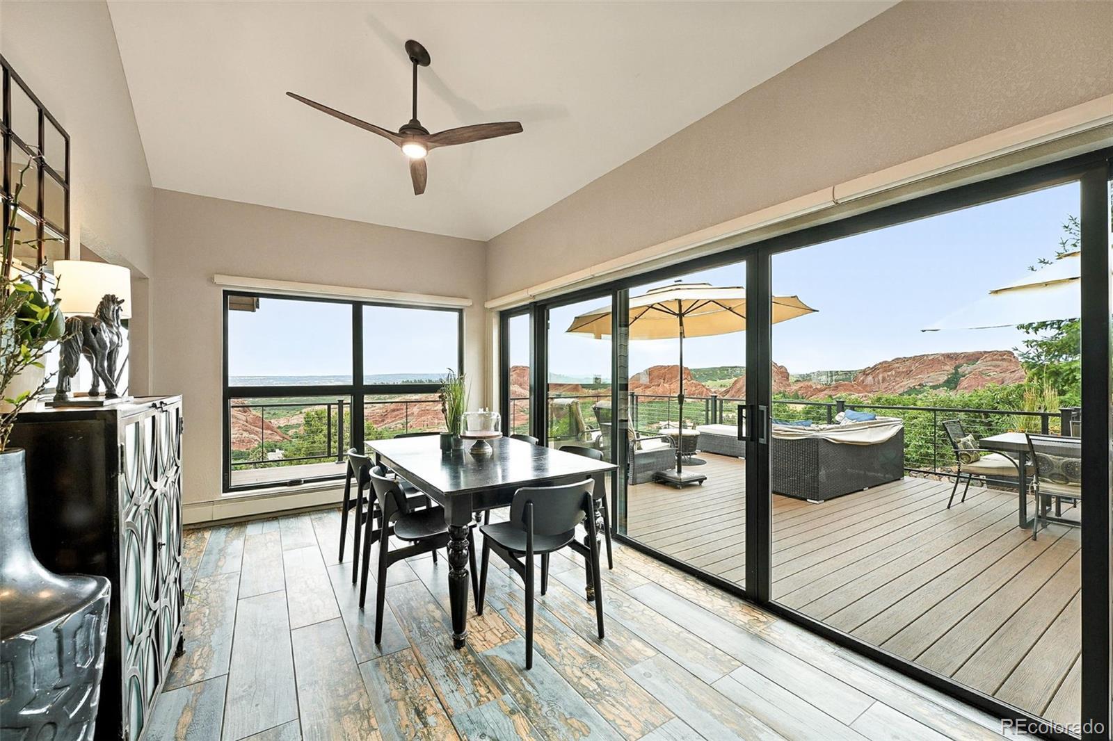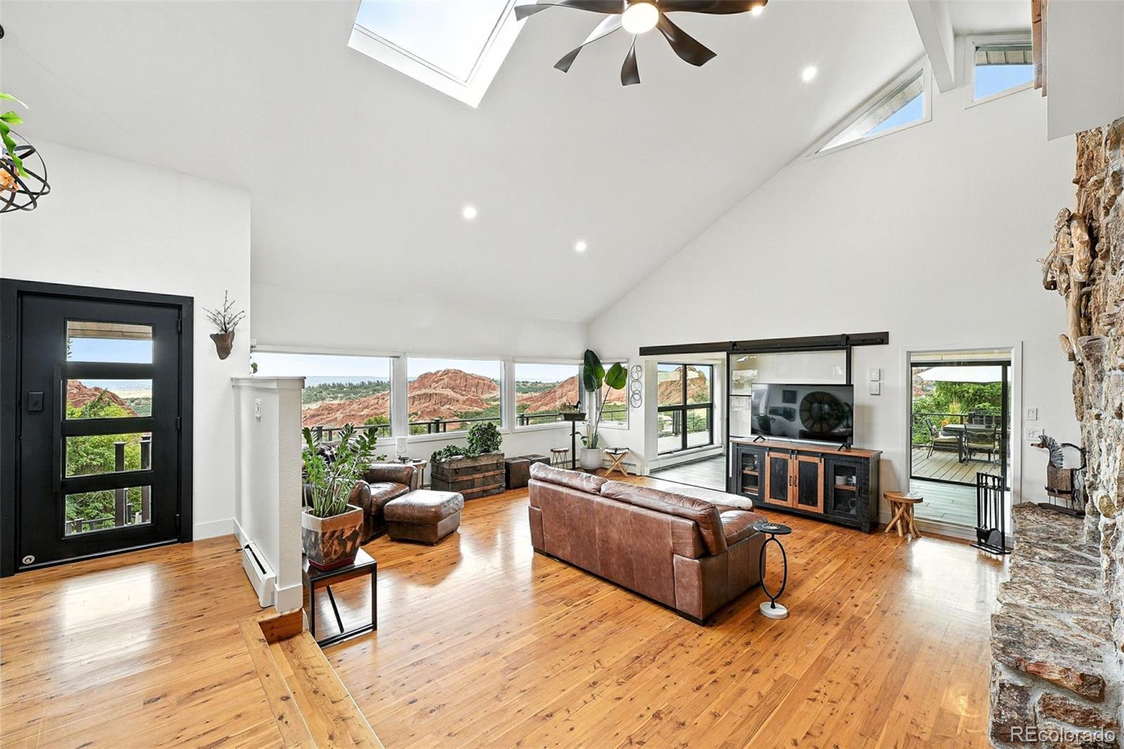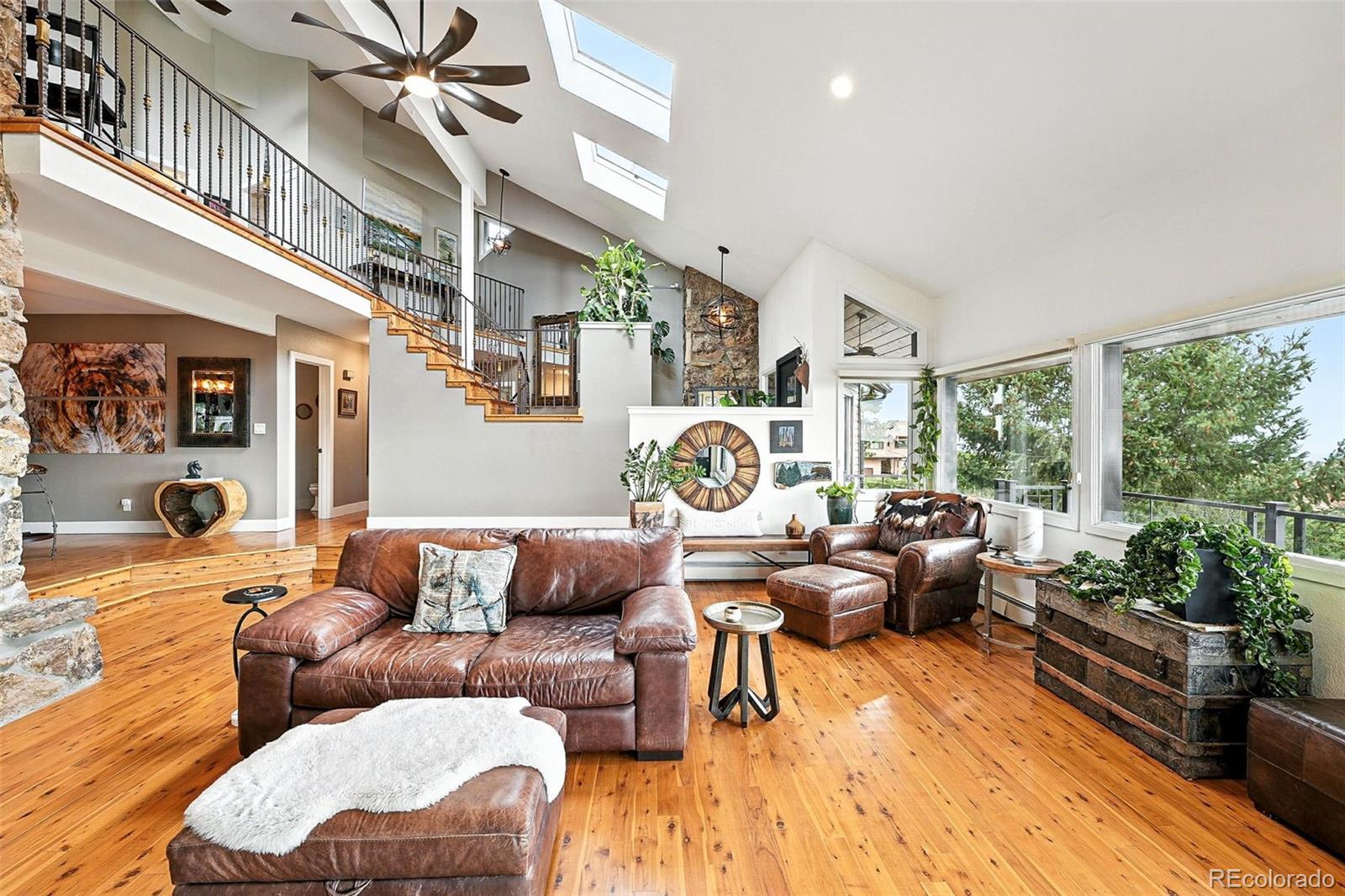 Some of the best views in all of Colorado! Gaze over MILES of captivating beauty from this custom mountain-modern retreat. Experience the tranquility and grandeur of mountain living just minutes from city amenities yet ideally located with direct access to outdoor adventure. From the moment you arrive, you’ll be struck by stunning curb appeal, connecting elevated design with nature. Abundant outdoor spaces provide the perfect setting for entertaining or relaxing in the crisp mountain air. Be captivated by incredible scenery, from Denver’s vibrant skyline and the sparkling waters of Chatfield Reservoir to Roxborough State Park’s legendary red rock formations and the renowned Arrowhead Golf Course. Designed to blend seamlessly with its natural surroundings, this home features expansive decks and wall-to-wall windows that illuminate an exceptional interior. The aesthetics are intentional and refined, including striking steel and glass doors, Australian cypress hardwoods, vaulted ceilings with skylights and an impressive 2-story stone wood-burning fireplace at the heart of the home. The modern kitchen features a built-in pantry, sleek appliances with induction cooking and gorgeous chiseled-edge quartzite. The spacious primary suite highlights a gas fireplace, floor-to-ceiling windows and a private deck with inviting hot tub surrounded by nature. The luxurious en suite reveals two vanities with soapstone counters, premium finishes, freestanding stone soaking tub and an indulgent walk-in shower. Every detail has been thoughtfully curated to create a harmonious balance of sophistication and comfort. This mountain sanctuary is more than a house – it’s an experience of effortless luxury and natural beauty, designed for sharing memorable moments. Truly a one-of-a-kind opportunity to own a home with views that must be seen to be believed. Come see for yourself how this remarkable retreat will elevate your lifestyle and leave a lasting impression.