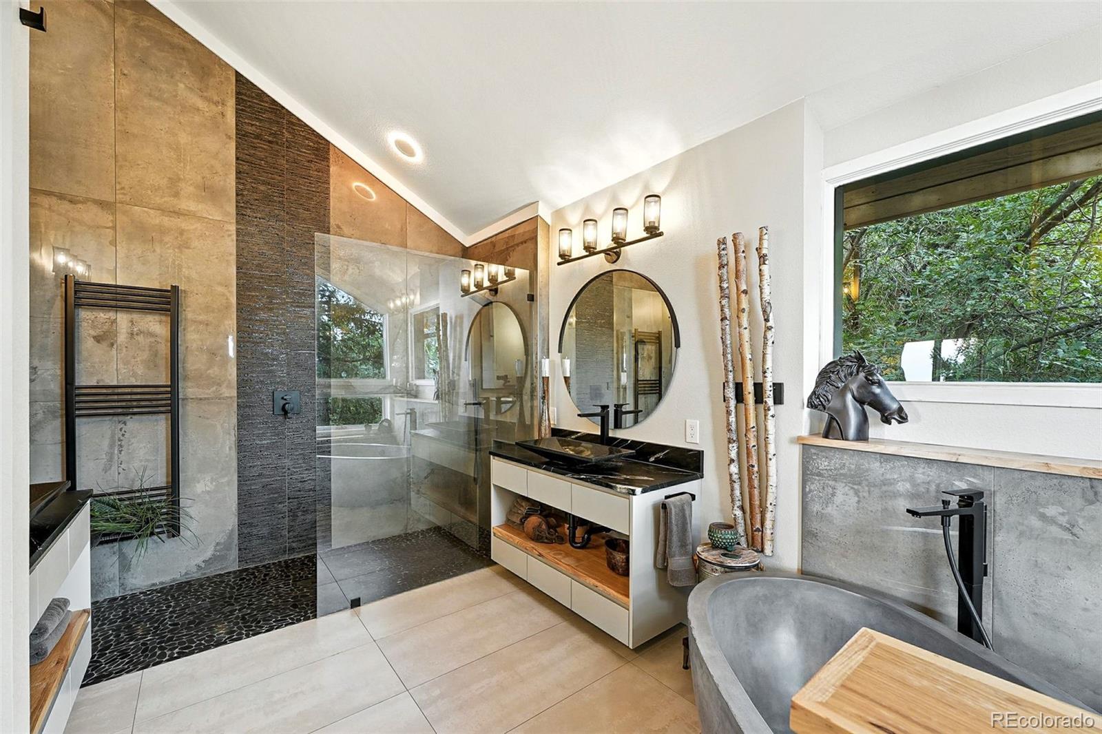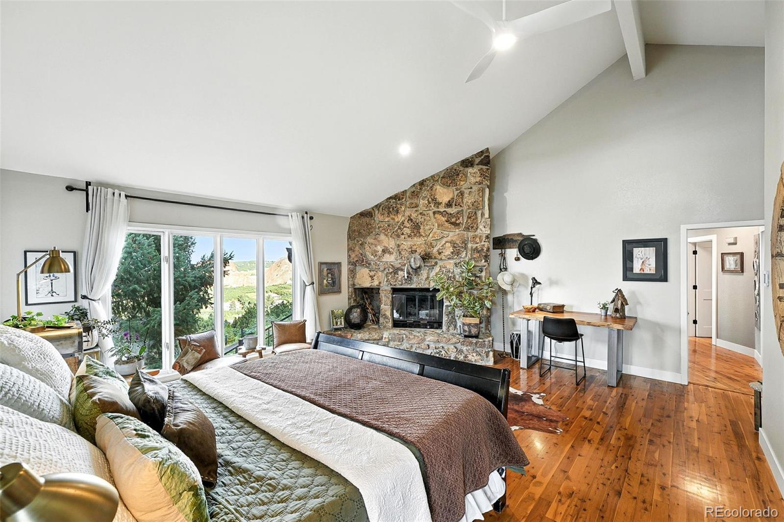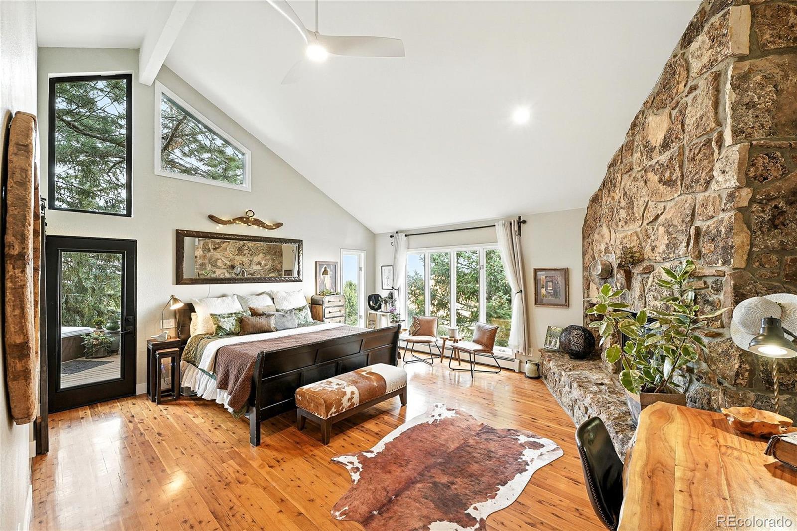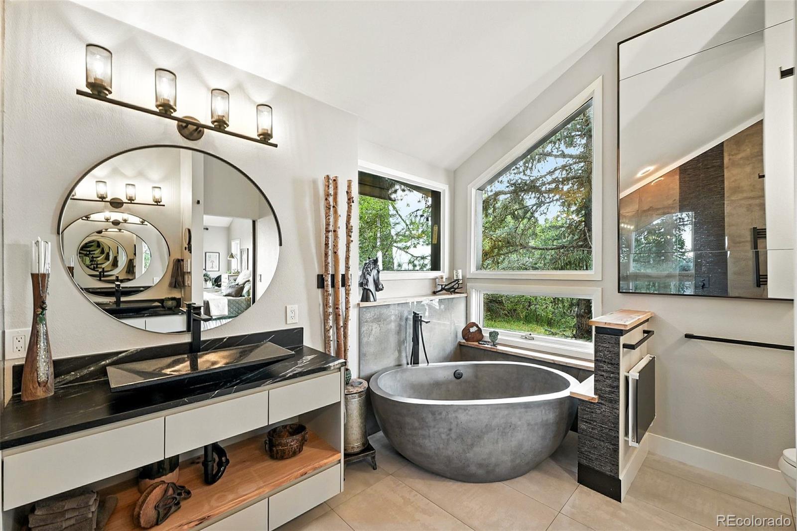 Some of the best views in all of Colorado! Gaze over MILES of captivating beauty from this custom mountain-modern retreat. Experience the tranquility and grandeur of mountain living just minutes from city amenities yet ideally located with direct access to outdoor adventure. From the moment you arrive, you’ll be struck by stunning curb appeal, connecting elevated design with nature. Abundant outdoor spaces provide the perfect setting for entertaining or relaxing in the crisp mountain air. Be captivated by incredible scenery, from Denver’s vibrant skyline and the sparkling waters of Chatfield Reservoir to Roxborough State Park’s legendary red rock formations and the renowned Arrowhead Golf Course. Designed to blend seamlessly with its natural surroundings, this home features expansive decks and wall-to-wall windows that illuminate an exceptional interior. The aesthetics are intentional and refined, including striking steel and glass doors, Australian cypress hardwoods, vaulted ceilings with skylights and an impressive 2-story stone wood-burning fireplace at the heart of the home. The modern kitchen features a built-in pantry, sleek appliances with induction cooking and gorgeous chiseled-edge quartzite. The spacious primary suite highlights a gas fireplace, floor-to-ceiling windows and a private deck with inviting hot tub surrounded by nature. The luxurious en suite reveals two vanities with soapstone counters, premium finishes, freestanding stone soaking tub and an indulgent walk-in shower. Every detail has been thoughtfully curated to create a harmonious balance of sophistication and comfort. This mountain sanctuary is more than a house – it’s an experience of effortless luxury and natural beauty, designed for sharing memorable moments. Truly a one-of-a-kind opportunity to own a home with views that must be seen to be believed. Come see for yourself how this remarkable retreat will elevate your lifestyle and leave a lasting impression.
