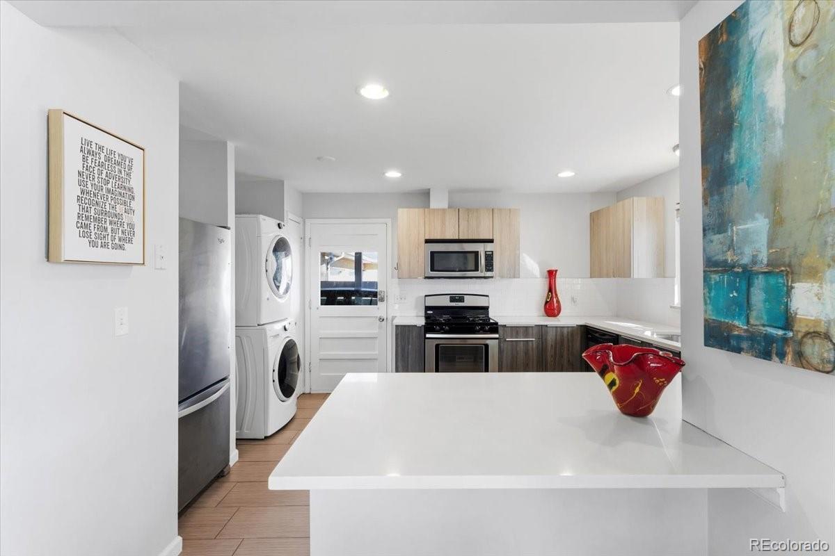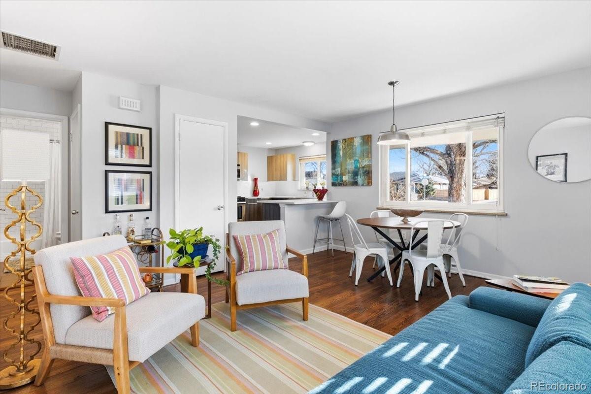 Have you almost given-up on the idea of having BOTH a cool location and something better than a condo? Don’t give-up because this one will make you smile. For less than the price of many condos and with no HOA, this spacious, charming & cute updated fabulous ‘50s half-duplex is likely to exceed your hopes and dreams! Just a half mile west of NW Denver and exactly one-mile to Tennyson, this location is stellar! Its renovations are wonderful. The enormous contemporary kitchen would be a perfect set for you to be an internet cooking star. The 1950s details, the wonderful real hardwoods and the big updated windows are all great. Especially compared to a condo at a similar price that might have a tiny deck, the outdoor living spaces here are a wonderful. It includes a covered front porch, a front yard and a big back yard for BBQs or for your pup to run ’the victory lap’. With this wonderful home, you’ve also got your own carport with storage, a driveway for a couple more vehicles and none of the dreaded HOA drama nor HOA dues nor special assessments that come so many condos these days. Commuting from here is a cinch. This house is right on the bike path and from 29th & Harlan its a protected lane most of the way into downtown. By car, 38th Ave drops you right onto Park Ave and into LoDo at Coors Field. Go north 1-mile on Harlan and you have direct access onto I-70 east to the Airport & to I-25, or, head west to the open space parks and to the mountains.