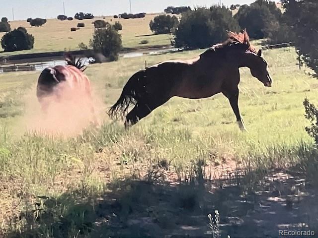 What an opportunity! This beautiful horse property is located in East Hatchet Ranch, just south of Pueblo. Easy access of I25 and located on one of the main roads. The property is mostly fenced (about 30 acres) and set up for horses! The house, stable and round pen are enclosed within about 2 acres. There is a separate approximately 2 acre parcel with the loafing shed and dog kennel. The two small pastures are fenced with field fence. There is a year-round spring and a seasonal pond on the property. The pastures have been very well maintained and provide excellent grazing. The front and backyards are fenced with chain link making a great, safe place for dog turnouts. The custom home is “right-sized” for a couple or small family. Large open rooms with vaulted or elevated ceilings and lots of windows makes this home bright and homey. Windows open up to the magnificent views of the Sangre de Cristo Mountains. The house is well built and includes amenities like a steam shower and jetted tub. Framed with 2x6’s, and with interior insulation (for sound), the home is quiet and cozy. A large free-space haybarn allows for both hay storage and a shelter for the horses. There is also a two-stall barn (could easily convert to three stalls) with 12’ aisle and insulated tack room, and loft. The horse runs and corrals are constructed with safe, metal panels and there is a large outdoor riding arena with a good sand base. Over 20 fruit trees were planted over the past six years and are serviced by a sprinkler system. There are also several established ornamental trees. If you love the outdoors and would like a homey, accessible lifestyle, check this out. Also: Generator back-up and generator included - have power even during the infrequent power losses! 3+ foot lighted crawlspace RO system for kitchen use and full house water filter The room measurements are approximate - many of the rooms are not rectangular. Owned and home to broker and builder.