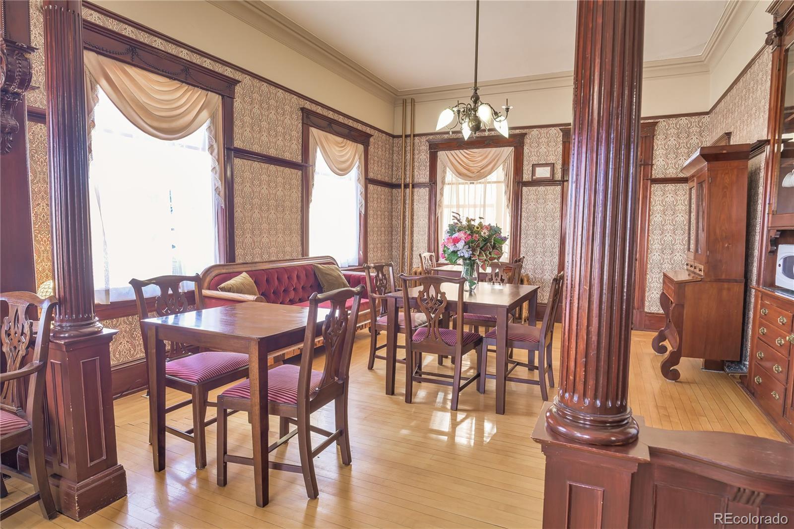 Just two blocks from the heart of downtown Trinidad, this impeccably maintained Victorian estate is a rare, high-profile opportunity with proven income history and remarkable flexibility. Long known as one of Southern Colorado’s most popular places to stay, see, and experience, this historic property offers multiple paths forward: continue operating as a successful B&B or short-term rental, enjoy it as a private residence with income-producing units, or expand into an event, hospitality, or creative destination. The main residence features four spacious master suites, each with private balconies or terraces, blending authentic historic charm with thoughtful upgrades. A fully independent lower-level apartment includes its own private entrance and yard, making it ideal for guests, extended stays, managers unit or long-term rental income. Situated on a large lot with sweeping town and mountain views, the property also includes the original carriage house, perfect for additional event space, another apartment, a studio, additional business or restaurant opportunity, or garage use. Commercial-level electrical upgrades, a commercial refrigerator and freezer, and a complete inventory of furnishings and equipment support immediate operation and the owner is willing to provide training to ensure a smooth transition for new ownership. Major updates include a new roof and gutters installed in 2023, and Historic District zoning allows for a wide range of creative uses, including, but not limited to, residential, multi-residential, and hospitality uses—offering both immediate functionality and long-term expansion potential. This is not just a property—it’s a legacy opportunity. If you’ve been searching for a turnkey historic estate with income, character, and room to grow in beautiful Southern Colorado, this one truly stands apart.