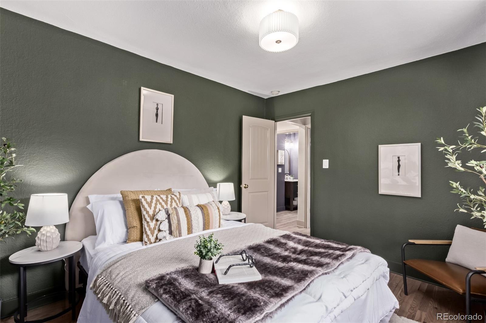 Welcome to this beautifully updated single-story ranch home, blending timeless charm with modern upgrades. Offering 4 bedrooms—two on the main level and two in the basement (including the primary suite)—and 2 bathrooms (a ¾ bath upstairs and a full bath downstairs), this home provides both comfort and functionality. Discover brand new hardwood floors on the main level (2025), and fresh interior paint (2024). The basement is a true highlight with its **9-foot ceilings—rare for Denver ranch homes—**new vinyl plank flooring, and a thoughtfully added 4th bedroom. Major updates give peace of mind: new sewer line (2023), new furnace (2022), new 200-amp electrical box (2021), new oversized 2-car detached garage with heater and room to add an EV charging station (2023), plus new exterior paint (2023). Enjoy new landscaping (2024) with a stamped concrete patio, and a modern sprinkler system with controls conveniently located in the backyard and furnace room. The smart features include a SimpliSafe security system, Ring doorbell alarm, and an electric water heater. A new washer/dryer (2021) is also included for added convenience! The location is unbeatable—walking distance to Rivers and Roads Coffee (known for amazing espresso and their sausage biscuit breakfast sandwich), Manuel’s Taco Truck (arguably Denver’s best Mexican food truck), and the acclaimed neighborhood eatery The Plimoth. You’re also just a short stroll to City Park and City Park Golf Course, and a quick 5–8 minute drive to RiNo’s vibrant restaurants, breweries, and entertainment. This home is the perfect mix of modern updates, unique architectural features, and great location—a true Denver gem ready for its next chapter!