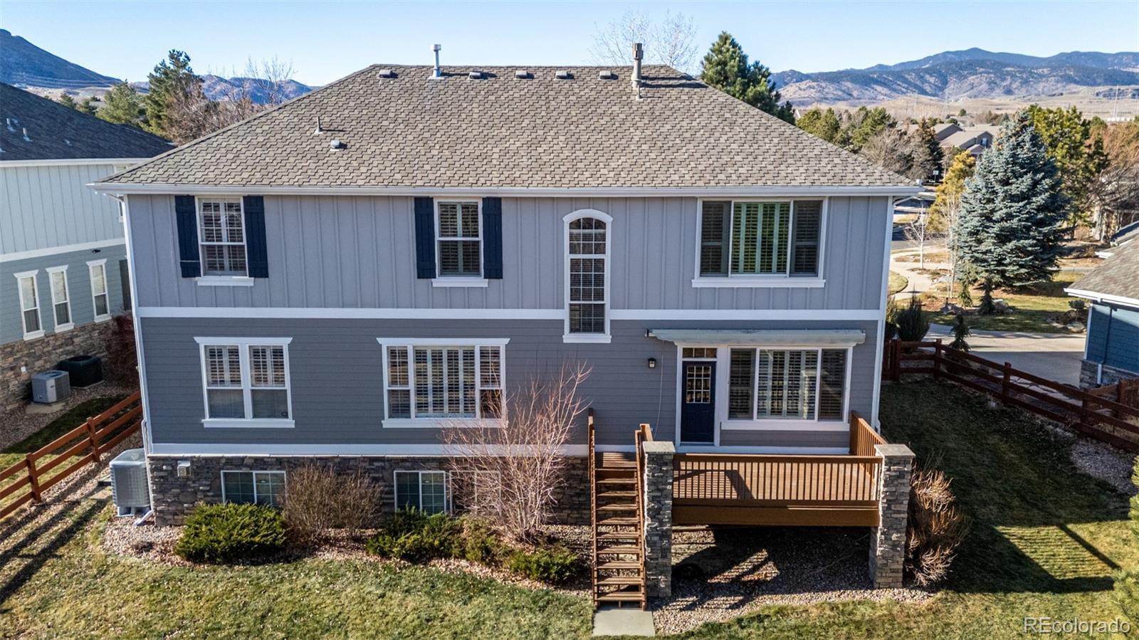 The search is over! This gorgeous home backs to open space and welcomes you with eye-catching curb appeal and amazing views from your own front door! Inside you will discover high ceilings, plenty of windows that flood the home with natural light, classic wide louver shutters and wood flooring. The formal spacious dining room is perfect for hosting memorable dinner gatherings. The well-appointed family room, complete with a fireplace leads out to the deck and backyard. The kitchen has granite countertops with a matching backsplash, ample wood cabinetry with crown molding, stainless steel appliances, and an island with a breakfast bar. The main floor bedroom has a walk-in closet and is located perfectly to enjoy as a home office. The sizeable primary bedroom includes engineered wood flooring, a private bathroom with double vanities and a generous walk-in closet. The second upstairs bedroom is a private ensuite with its own bathroom and includes an ELFA closet. The third and fourth upper bedrooms enjoy a joining bathroom. You'll be delighted by the garden level finished basement which offers high ceilings, a versatile bonus room with a secondary fireplace and flex/game area. Spend peaceful afternoons in the lovely backyard, featuring a deck with installed gas line and plenty of space for outdoor activities. Meticulously maintained including new and newer windows, carpet and paint. This street allows access to the pool and is walkable to the neighborhood Park. Don't miss out on this incredible gem located just minutes from Long Lake Regional Park, the Blunn Reservoir and less than 10 minutes to Downtown Golden. Be sure to check out the drone videos!