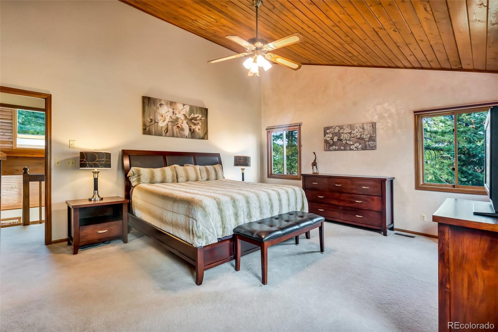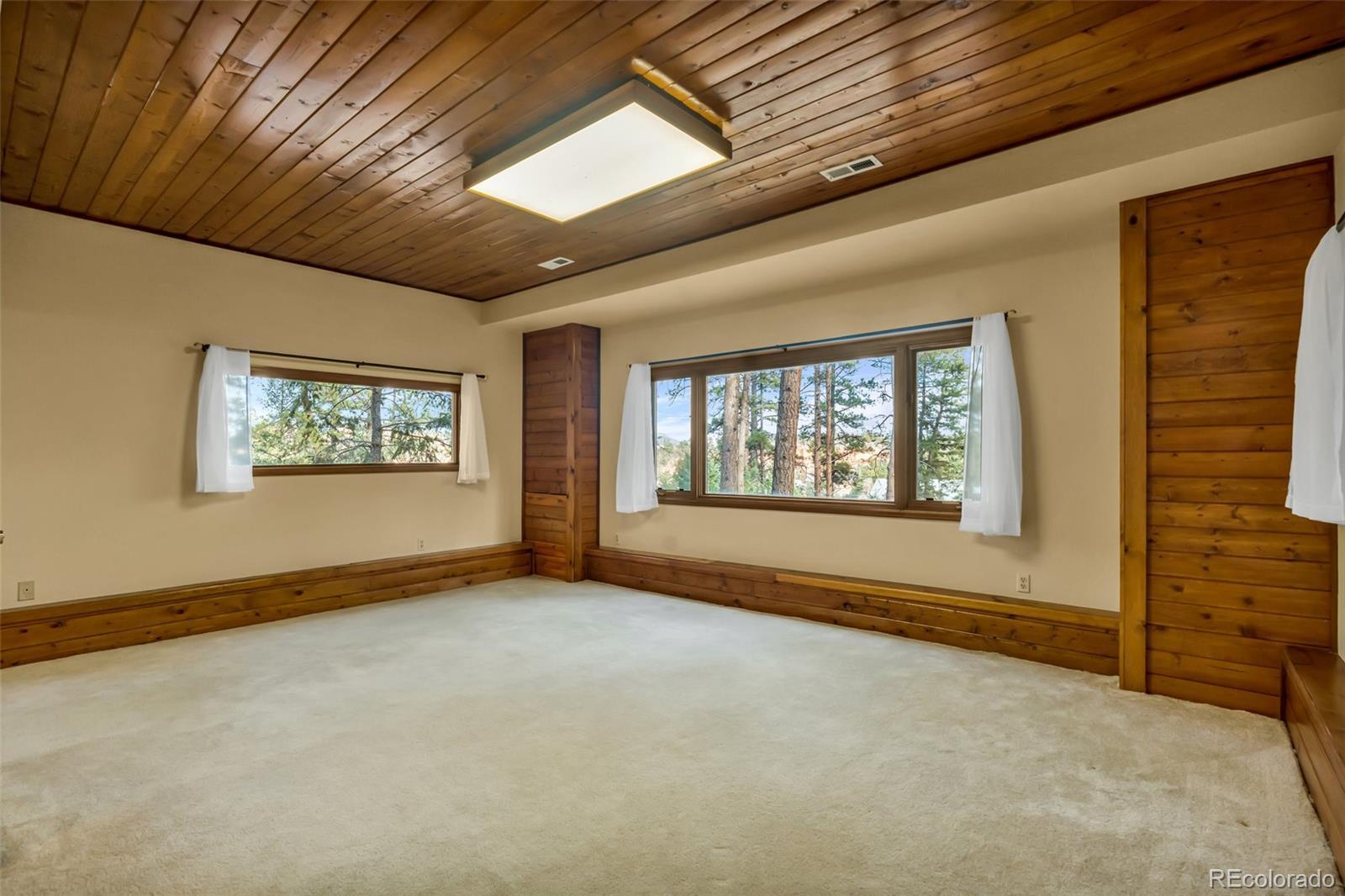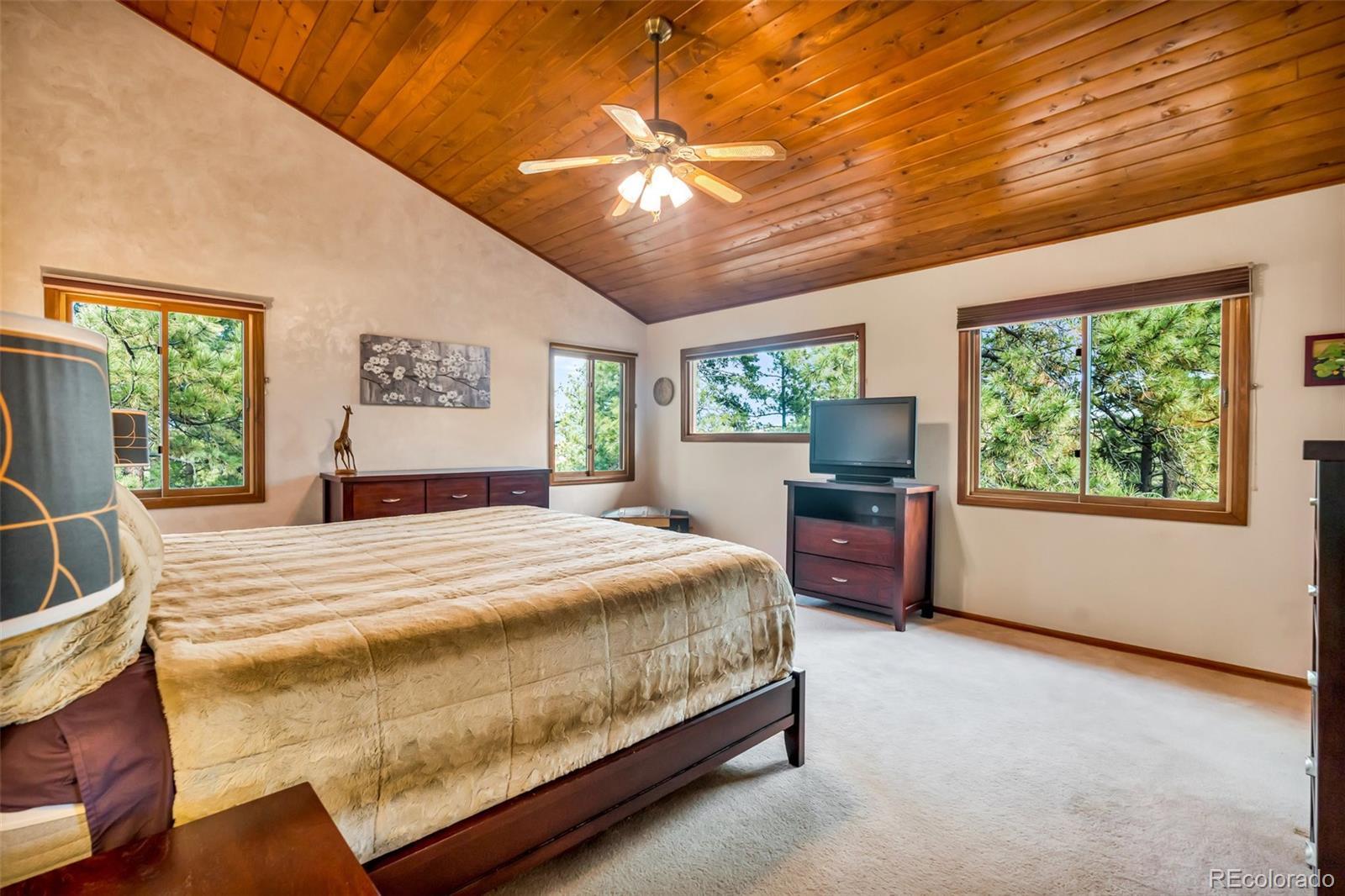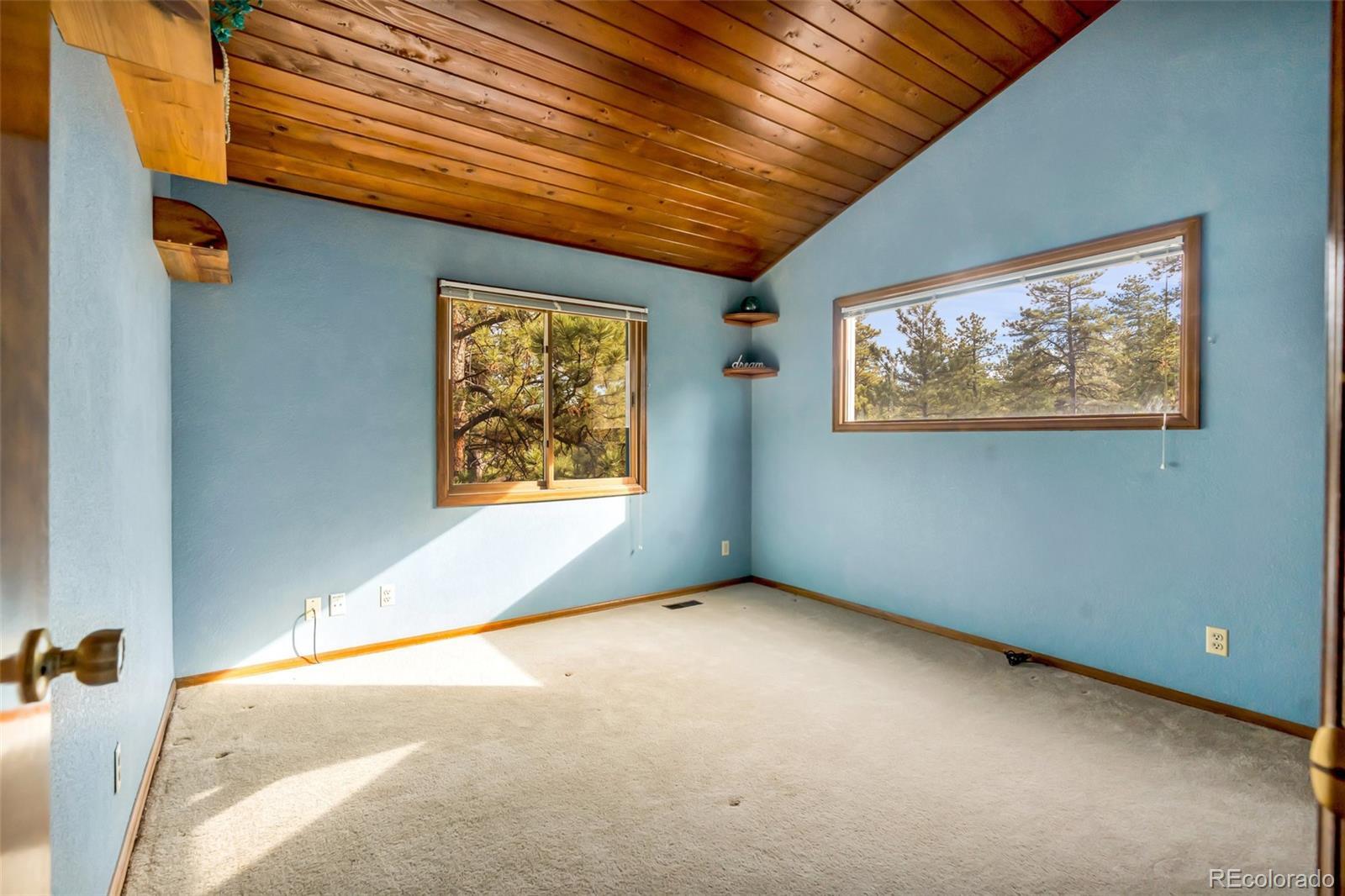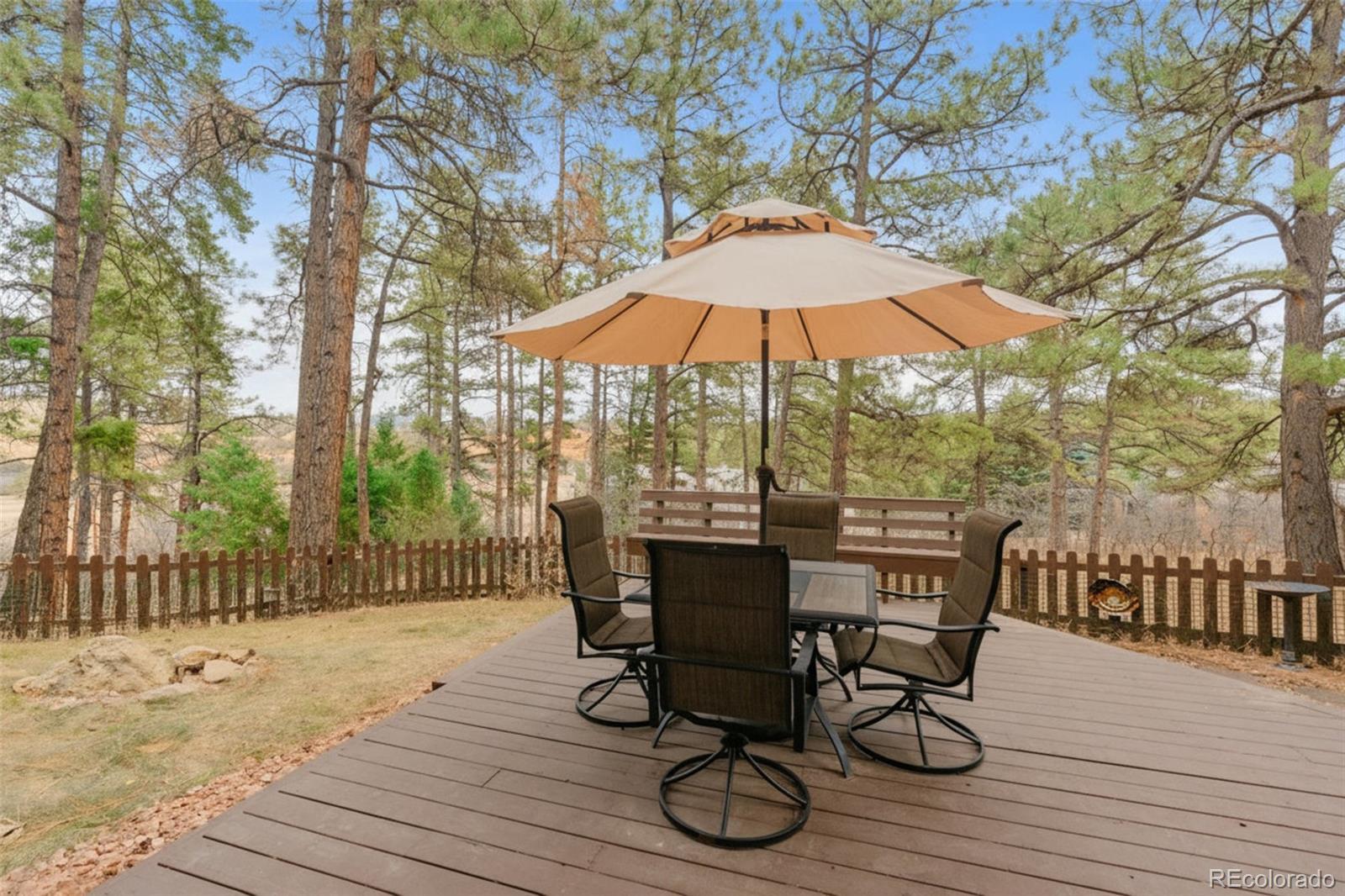 If you’ve been waiting for a clean, well-maintained home in Perry Park under $1M, this is it! Offered at $800K, this property features 3 bedrooms, 4 bathrooms, and just over 3,000 sq ft on nearly one acre with private views of mature ponderosa pines. Landscaped front and back yard, fenced area, large composite deck, and sandstone patio create inviting outdoor living surrounded by Colorado scenery. Main level offers a sunken living room with tongue-and-groove vaulted ceiling, skylights, and a wood-burning fireplace with tile surround and wood mantel. Large windows overlook the private, treed yard. The kitchen includes tile flooring, slab granite countertops, classic cabinetry, and a window with backyard views. The formal dining room has a chandelier and windows facing treed open space. A sunroom off the dining room, accessed by sliding glass door, features tile flooring, a wood-accent wall, and multiple windows providing natural light. Upstairs, the primary bedroom suite offers carpet flooring, tongue-and-groove ceiling with fan, treed views, closet, and an en-suite full bathroom with dual-sink vanity, updated granite countertop, vaulted tongue-and-groove ceiling with skylight, and tub/shower combination. Two additional bedrooms feature carpet flooring, vaulted tongue-and-groove ceilings, windows, and closets, with a full bathroom serving this level. The lower-level walk-out basement provides a family room with large windows, carpet flooring, and wood accents, plus a bonus space with dry bar, refrigerator, cabinetry, and windows—ideal for entertaining, hobbies, or office use.. Enjoy the peace and quiet of Perry Park from either the upper or lower composite deck, or relax on the sandstone patio in the fenced backyard. This private outdoor space, surrounded by ponderosa pines and low-maintenance landscaping, is perfect for entertaining, grilling, morning coffee, or simply taking in the Colorado scenery.