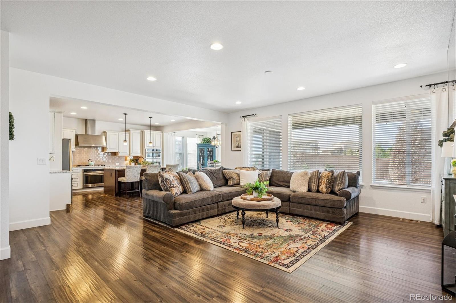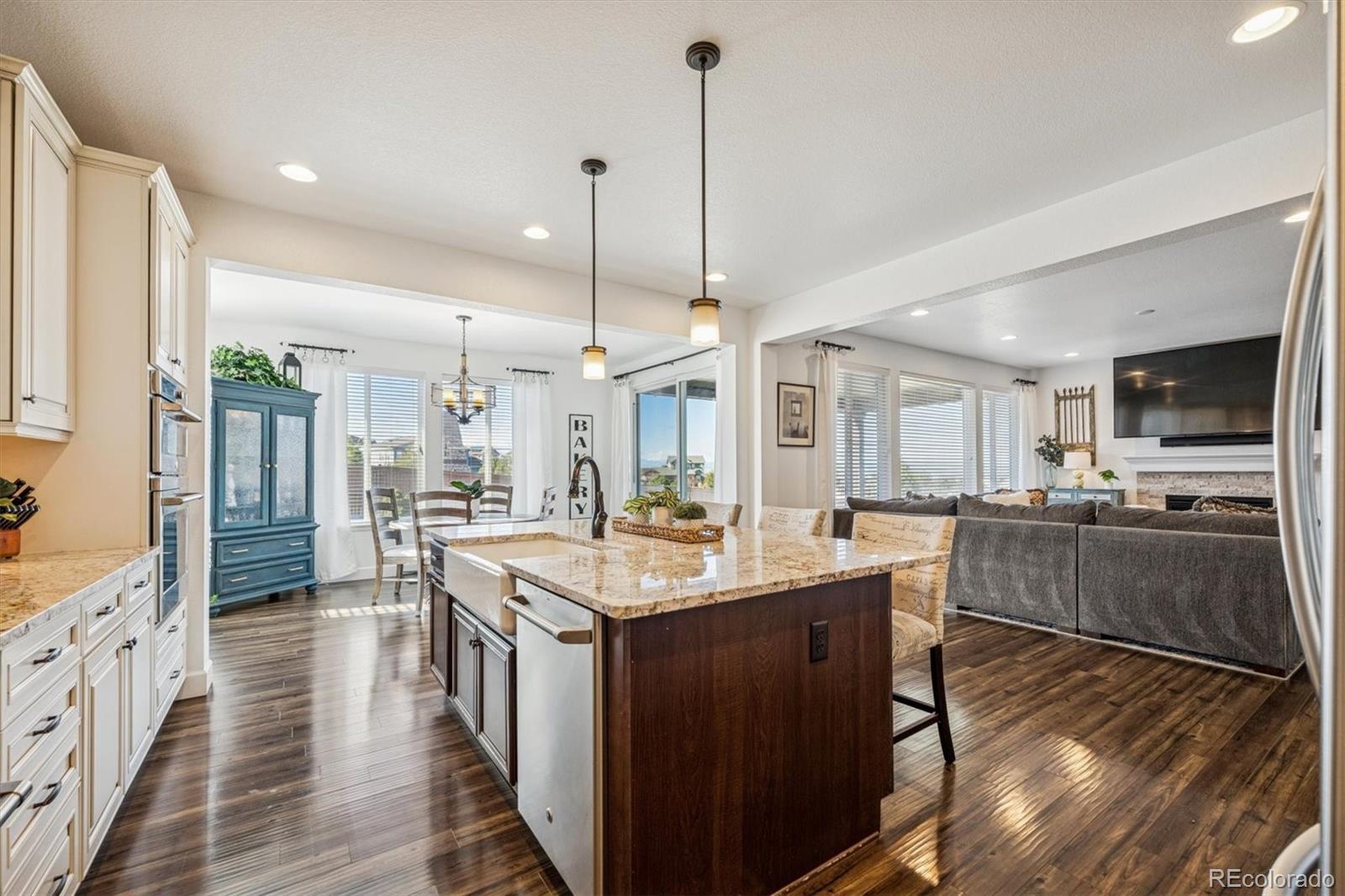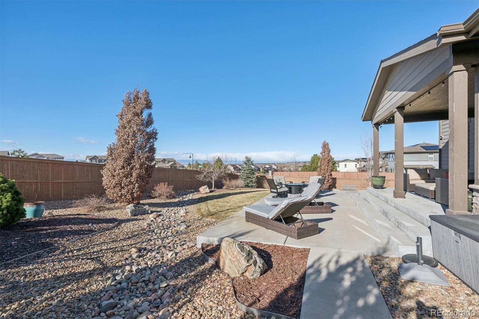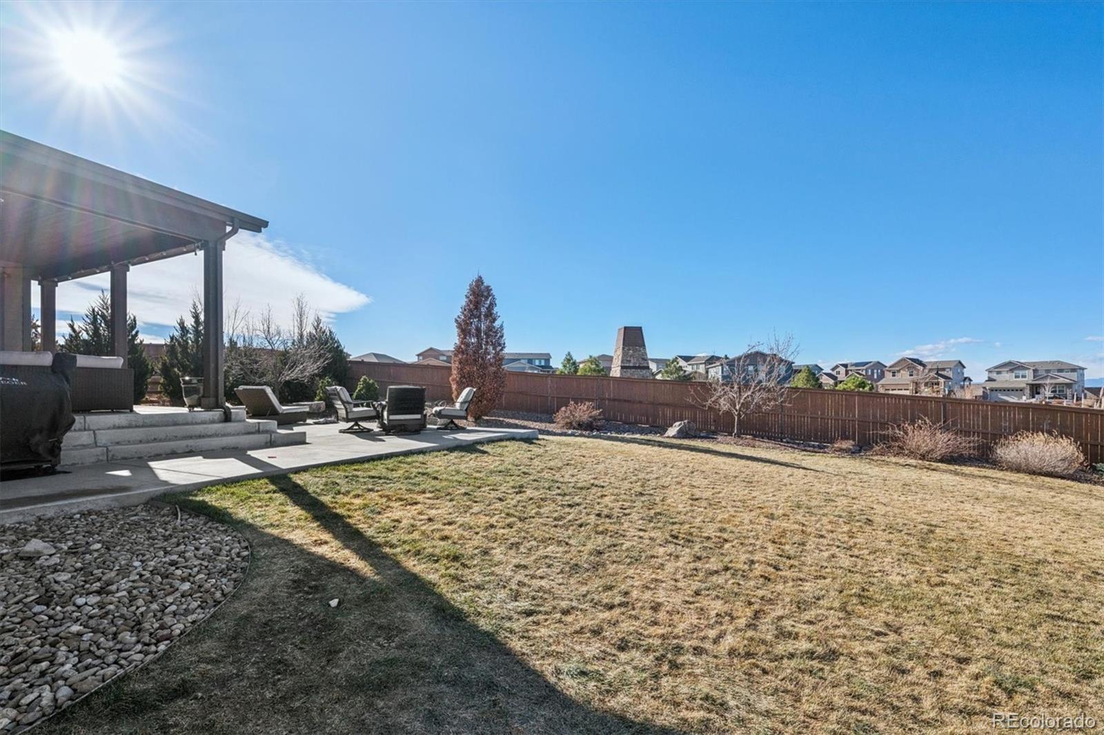 Back Active- Buyers Got Cold Feet- Stunning Shea home on an oversized lot with unobstructed Rocky Mountain views! A bright foyer with dramatic two-story ceilings sets the tone, complemented by gleaming floors throughout the main level. The open-concept kitchen is a showstopper, featuring rich cabinetry, granite countertops, an oversized island with seating, and a massive walk-in pantry. Flowing seamlessly into the great room, the layout is ideal for both everyday living and entertaining. The sunny dining area overlooks the private backyard, while the extended, partially covered patio invites year-round outdoor enjoyment and unforgettable mountain sunsets. A bonus room on the main level can easily be used as a 2nd office, hobby room, formal living or dining room. The home’s thoughtful placement on the lot offers exceptional privacy from surrounding homes. Upstairs, the expansive primary suite is a peaceful retreat with a spa-inspired five-piece bath and walk-in closet. A second bedroom with its own full bath is perfect for guests or multi-generational living, while two additional bedrooms share a Jack-and-Jill bath. The open basement provides abundant storage or the opportunity to create future living space. Prime location close to E-470, Southlands Mall, dining, and shopping—this home delivers the best of Colorado living.