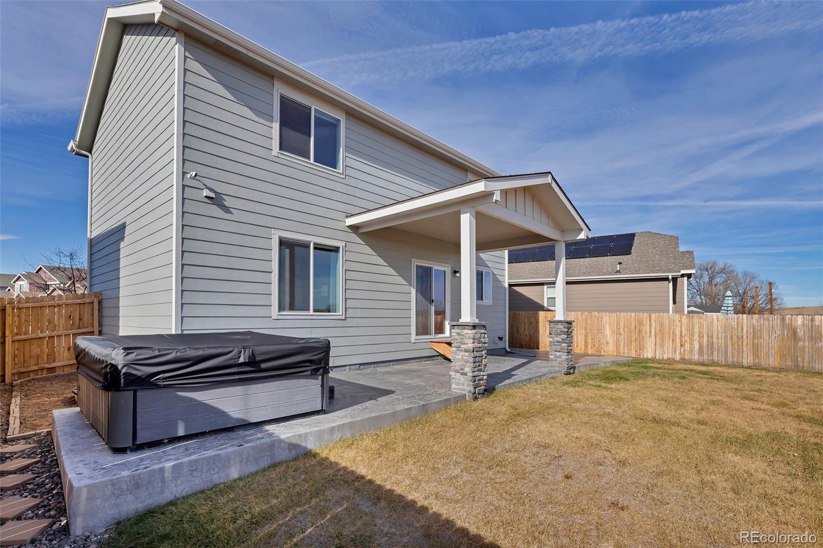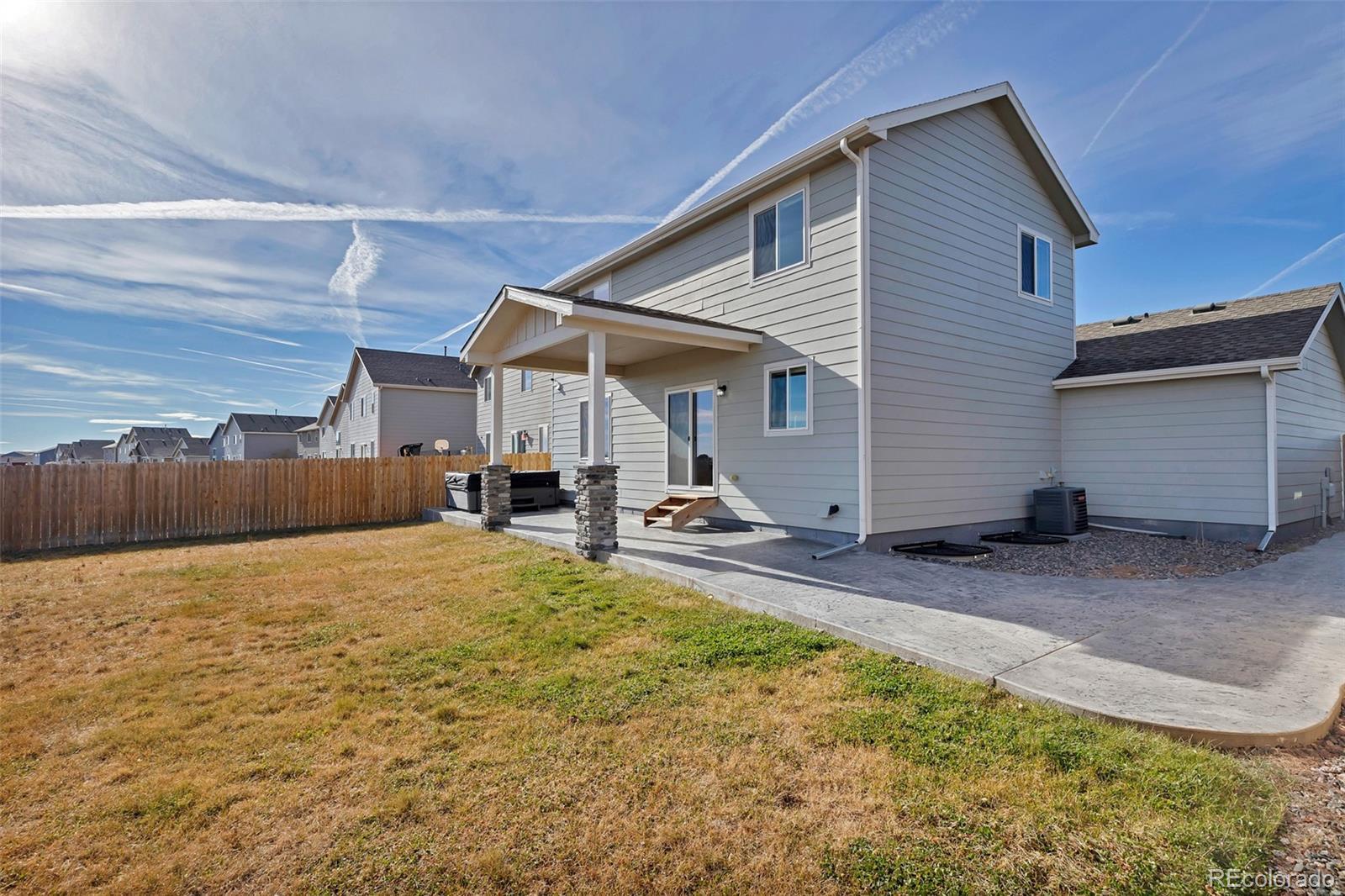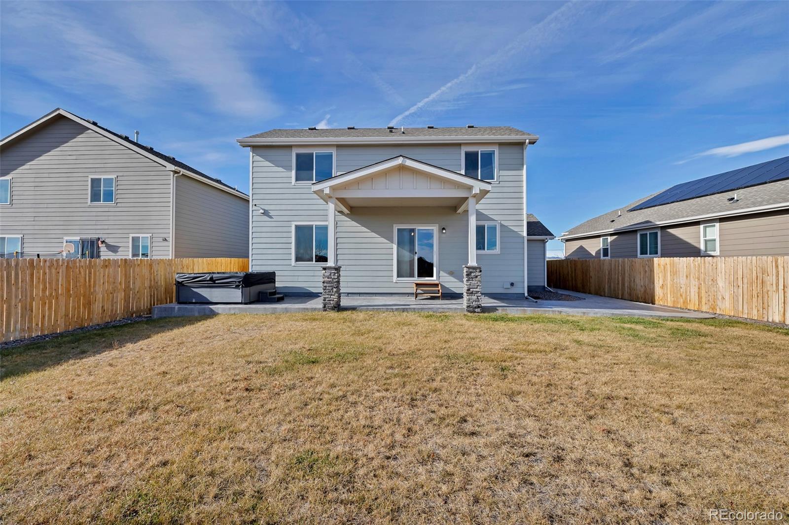 Welcome to this beautifully maintained home in Carriage Meadows North at Lorson Ranch, perfectly positioned against open space for added privacy and views. Located in Widefield School District #3, this 4-bed, 4-bath, 2,253 sq. ft. home offers the ideal blend of comfort, convenience, and modern living with thoughtful upgrades throughout. From the front of the home, you’ll love the views of Pikes Peak. The inviting family room and dining area have custom trim work and wood window sills, adding warmth and character throughout the main level. The kitchen features stainless steel appliances, upgraded lighting and ceiling fans, two pantries, and direct access to the three-car garage—making everyday routines easy and efficient. The laundry room, conveniently located on the main floor, has built-in wood shelving, providing charm, organization, and practical storage. The two additional bedrooms are served by a conveniently located full bathroom. Upstairs, you'll find three bedrooms, including a spacious primary suite with its own ensuite bathroom.The finished basement adds even more versatility with a fourth bedroom and a bathroom—ideal for guests, multigenerational living, a home office, or a private studio. Both the front and back yards are fully landscaped with sprinkler systems. In the backyard, enjoy a concrete path and patio, creating a smooth, functional outdoor space that pairs perfectly with the hot tub and quiet open-space setting behind the home. This property is also equipped with an on-demand water heater, electrostatic air filter system, whole-home water filter, and a whole-home humidifier—offering increased comfort, efficiency, and air quality throughout the year. All of this in a location that strikes the perfect balance: peaceful and removed from the hustle and bustle, yet close to shopping, schools, hospitals, and a nearby fire station. Modern comfort, upgraded features, and a setting that gives you room to breathe—this home truly has it all.