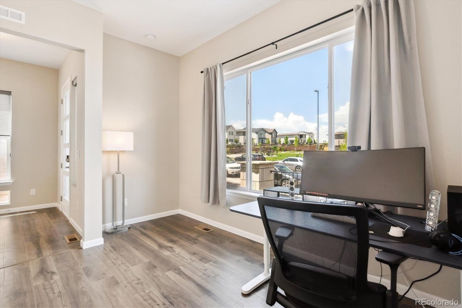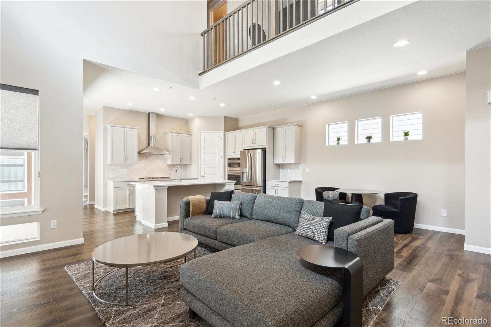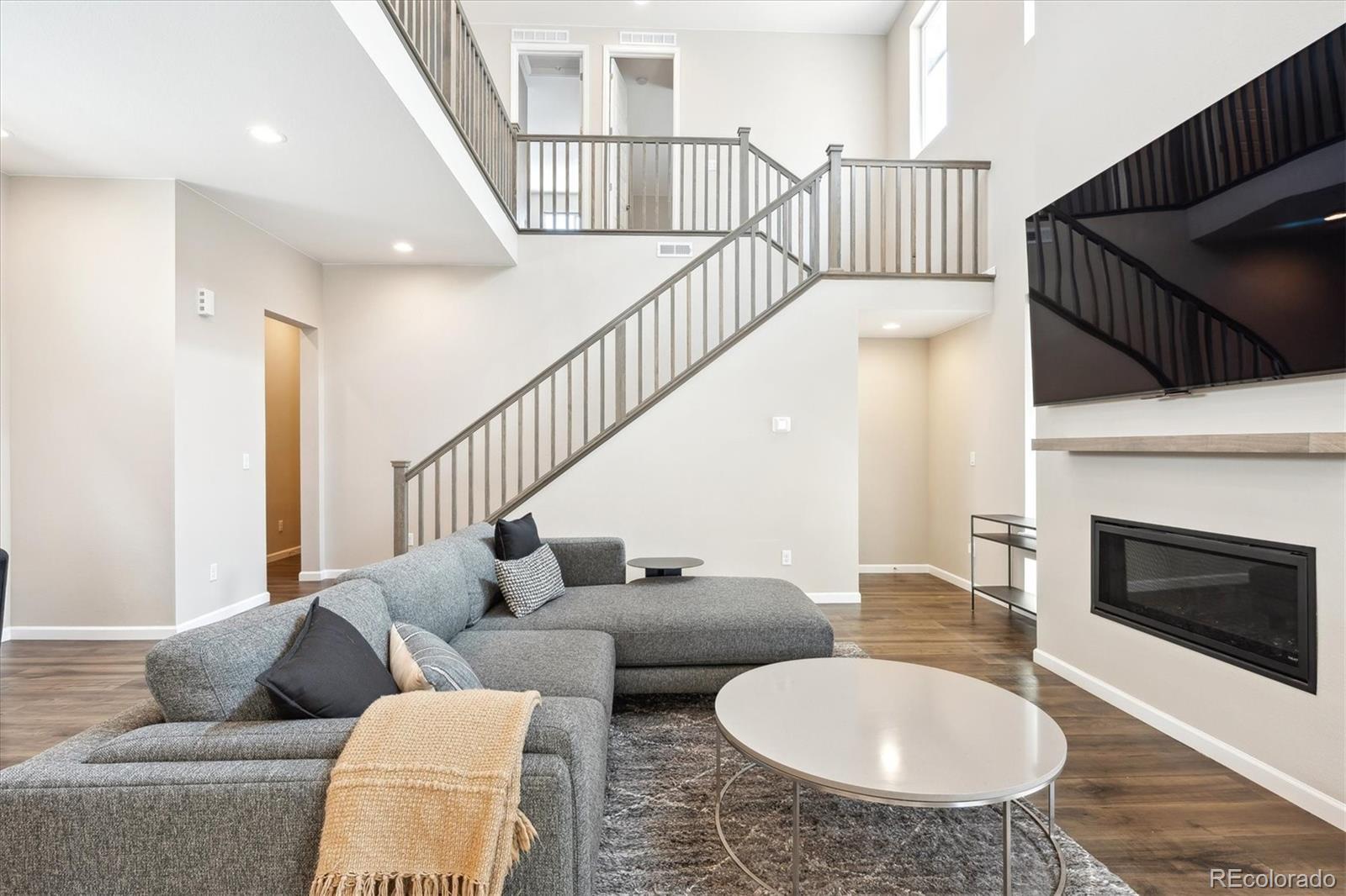 Experience the perfect blend of luxury & low-maintenance living in this stunning 3-bedroom PLUS office, 3-bath home by Taylor Morrison at Rock Canyon. Located in one of the area's only newer neighborhoods, this home offers modern design, premium upgrades, and access to Highlands Ranch’s top-tier amenities. *** Step inside to soaring 10’ ceilings on the main level, 9’ ceilings upstairs, and 8’ doors throughout—creating an open, airy feel. The spacious great room seamlessly connects the living, dining, & kitchen areas with wide plank luxury vinyl flooring & abundant natural light. The gourmet kitchen features quartz countertops, a large island for prep/storage/seating, stainless appliances including a 36” gas cooktop, walk-in pantry, and ample cabinetry. The living room is anchored by a gas fireplace & an upgraded swivel MANTLE TV mount that lowers for optimal watching from all angles & seating areas. Main-floor office includes a closet & can easily convert into a main floor bedroom. There's even room to expand the half bath into a ¾ bath with shower if needed in the future. *** Upstairs, a versatile loft separates the luxurious Primary Suite from the secondary bedrooms for enhanced privacy. The Primary features an oversized bedroom, spa-like 4-piece ensuite, and massive walk-in closet. Laundry is conveniently located just off the Primary with washer and dryer included. Secondary bedrooms & bath are also quite spacious w/ great closets. *** Additional highlights: custom Hunter Douglas window treatments throughout, full unfinished basement, 2-car attached garage w/ mudroom, and 2 PREMIUM STRUCTURAL UPGRADES —an extended front porch seating area AND a covered side patio with your own private, zero-maintenance yard. (Feel free to add turf for pets or kids too) Located across from the neighborhood park w/ rare option to join HRCA (pools, tennis, trails, fitness, golf, classes, etc), C-470, DTC, mountains, dining, and shopping. YOU WILL LOVE LIVING HERE!