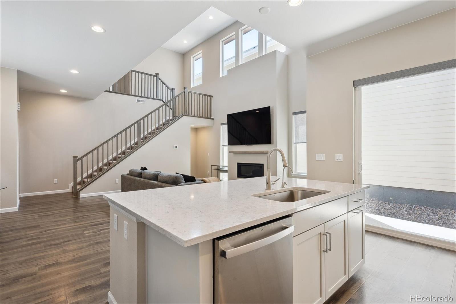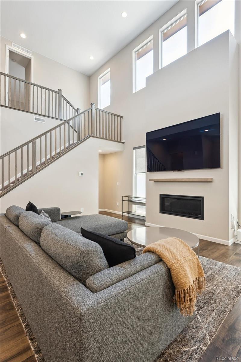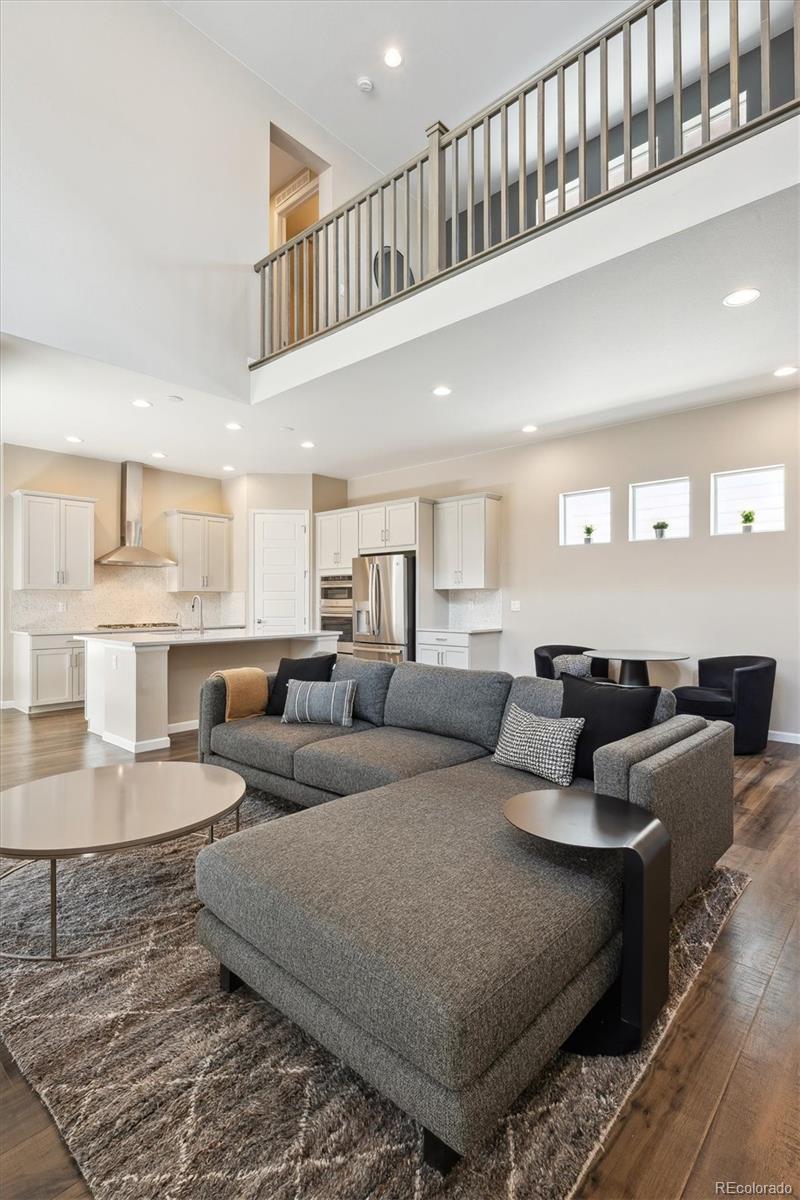 Experience the perfect blend of luxury & low-maintenance living in this stunning 3-bedroom PLUS office, 3-bath home by Taylor Morrison at Rock Canyon. Located in one of the area's only newer neighborhoods, this home offers modern design, premium upgrades, and access to Highlands Ranch’s top-tier amenities. *** Step inside to soaring 10’ ceilings on the main level, 9’ ceilings upstairs, and 8’ doors throughout—creating an open, airy feel. The spacious great room seamlessly connects the living, dining, & kitchen areas with wide plank luxury vinyl flooring & abundant natural light. The gourmet kitchen features quartz countertops, a large island for prep/storage/seating, stainless appliances including a 36” gas cooktop, walk-in pantry, and ample cabinetry. The living room is anchored by a gas fireplace & an upgraded swivel MANTLE TV mount that lowers for optimal watching from all angles & seating areas. Main-floor office includes a closet & can easily convert into a main floor bedroom. There's even room to expand the half bath into a ¾ bath with shower if needed in the future. *** Upstairs, a versatile loft separates the luxurious Primary Suite from the secondary bedrooms for enhanced privacy. The Primary features an oversized bedroom, spa-like 4-piece ensuite, and massive walk-in closet. Laundry is conveniently located just off the Primary with washer and dryer included. Secondary bedrooms & bath are also quite spacious w/ great closets. *** Additional highlights: custom Hunter Douglas window treatments throughout, full unfinished basement, 2-car attached garage w/ mudroom, and 2 PREMIUM STRUCTURAL UPGRADES —an extended front porch seating area AND a covered side patio with your own private, zero-maintenance yard. (Feel free to add turf for pets or kids too) Located across from the neighborhood park w/ rare option to join HRCA (pools, tennis, trails, fitness, golf, classes, etc), C-470, DTC, mountains, dining, and shopping. YOU WILL LOVE LIVING HERE!