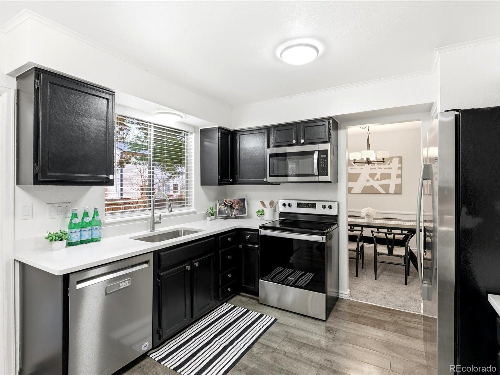 This beautifully refreshed 4-bedroom, 3-bath home is tucked into a wonderful Aurora neighborhood with no HOA and has been meticulously updated with a new class 4 roof, new water heater, new carpet and trim, fresh paint throughout, elevated lighting/fixtures & much more —so you can move in and enjoy with confidence! Step inside to a light-filled living room that flows effortlessly into the formal dining area, offering peaceful views of the backyard. The open kitchen is the heart of the home, featuring new quartz countertops, stainless steel appliances, a walk-in pantry, and a sunny breakfast nook that leads directly to the backyard—perfect for family meals, homework time, or entertaining friends. All four bedrooms are conveniently located just a few steps up from the main level, each offering generous space and flexibility. A full bathroom serves the secondary bedrooms, while the primary suite is privately tucked down the hall and includes a walk-in closet, ensuite bath, and an abundance of natural light! A few steps down from the kitchen, the cozy family room invites you to unwind beside a charming brick wood-burning fireplace, complemented by additional bonus space ideal for a playroom, creative studio, or home office. A newly updated half bath with quartz countertops adds everyday convenience on this level. The basement provides even more room to grow, offering space for a media room, home gym, or play area, along with the laundry area, ample storage, and the home’s new water heater. Outside, the fully fenced backyard is a private retreat designed for making memories, complete with mature trees and established garden beds ready for your favorite fruits and vegetables. A two-car garage with a new garage door opener completes this exceptional offering. Thoughtfully updated, warm, and welcoming—this home is ready to begin its next chapter. Schedule your showing today.