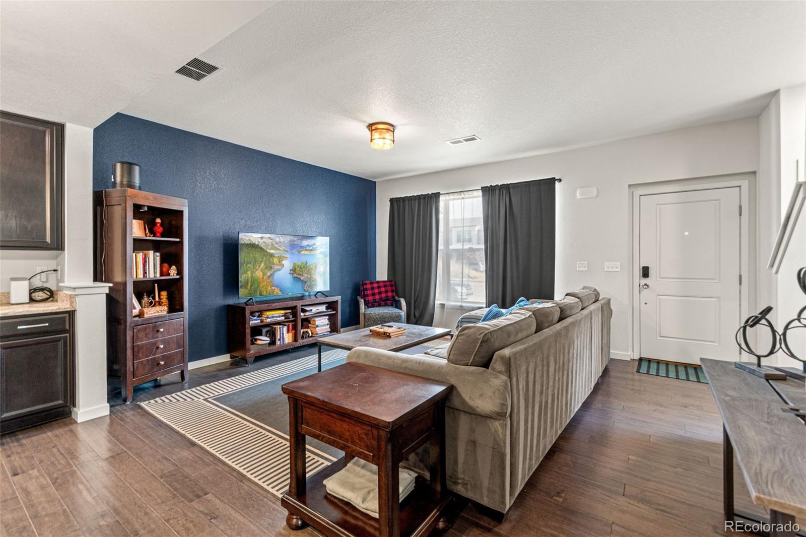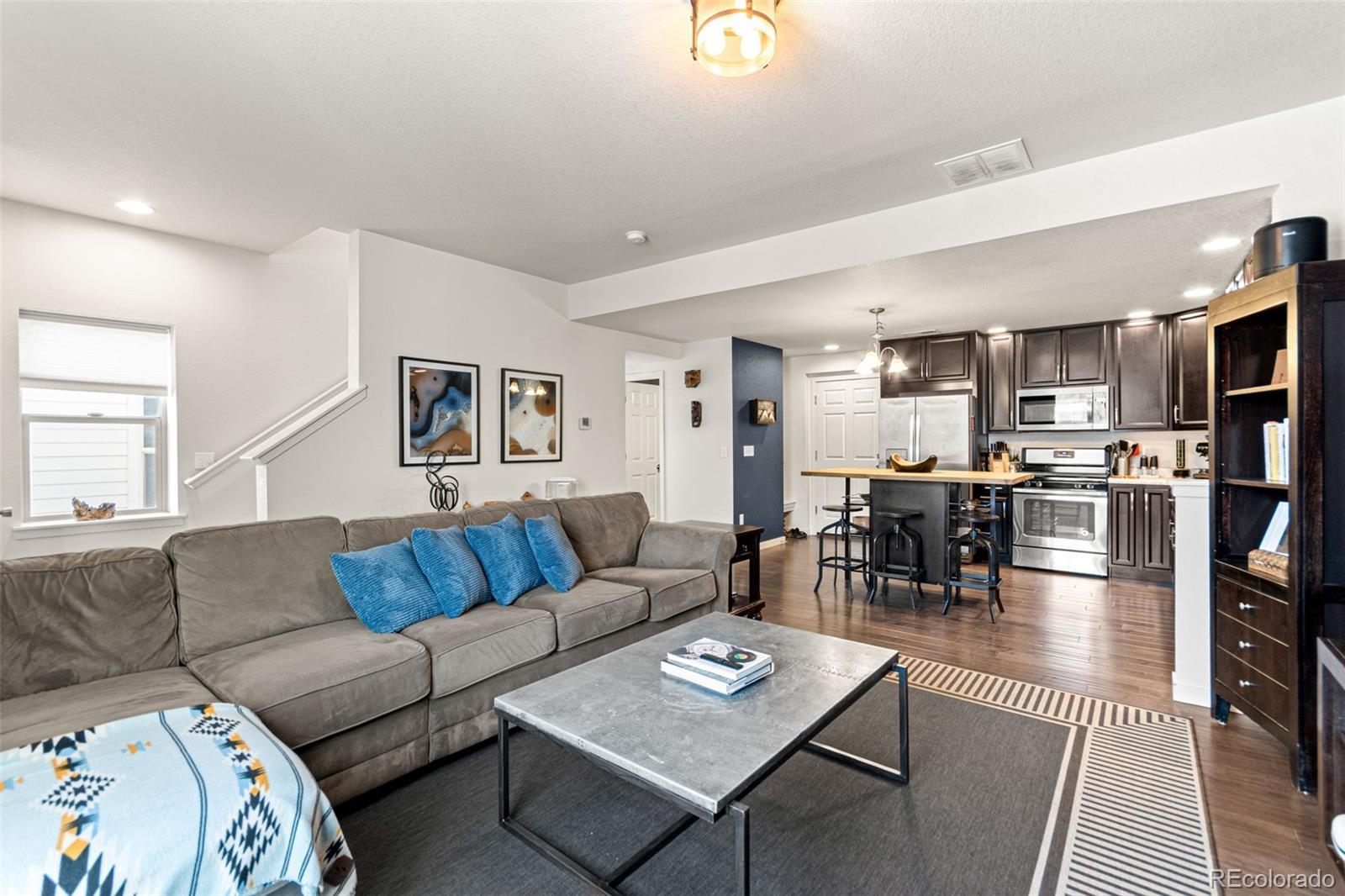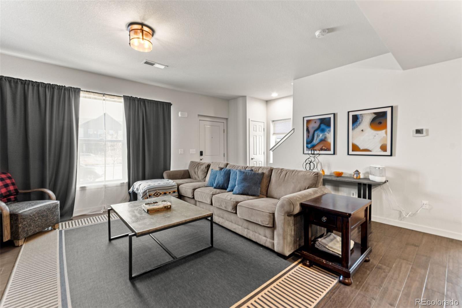 This bright and thoughtfully designed end-unit townhome offers the perfect blend of comfort, functionality, and ease—set within the Denver Affordable Housing Program and designed for real life. From the moment you step inside, you’ll notice the natural light and clean, modern flow of the main level. Durable vinyl flooring anchors the space, while the open-concept layout connects the kitchen, living, and dining areas in a way that feels both practical and welcoming. The kitchen features a gas range, generous cabinet space, a custom built island that naturally becomes the gathering spot—whether you’re cooking, working, or catching up at the end of the day. A convenient main-level powder bath and attached two-car garage add everyday ease. Upstairs, all three bedrooms are thoughtfully positioned for privacy and comfort. The primary suite feels calm and grounded, complete with an en-suite bath and plenty of room to unwind. Two additional bedrooms offer flexibility for guests, work-from-home space, or whatever this season of life calls for. A tankless water heater adds energy efficiency, while the home overall feels warm, well cared for, and move-in ready. As an end unit, you’ll appreciate the added light and sense of space, along with low-maintenance living that frees up more time to enjoy what’s outside your door. Located near Dick’s Sporting Goods Park, with easy access to parks, trails, schools, dining, and public transit, this home is well connected without feeling overwhelming. Stylish, comfortable, and intentionally designed—this is a home that supports how you actually live.