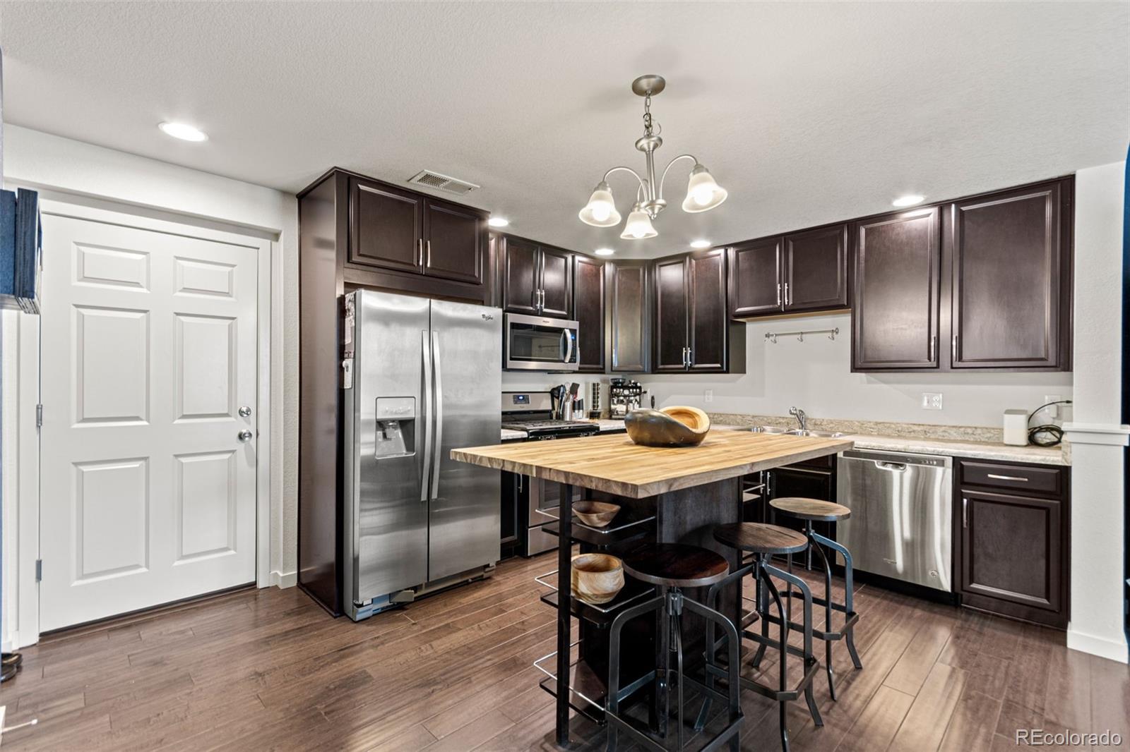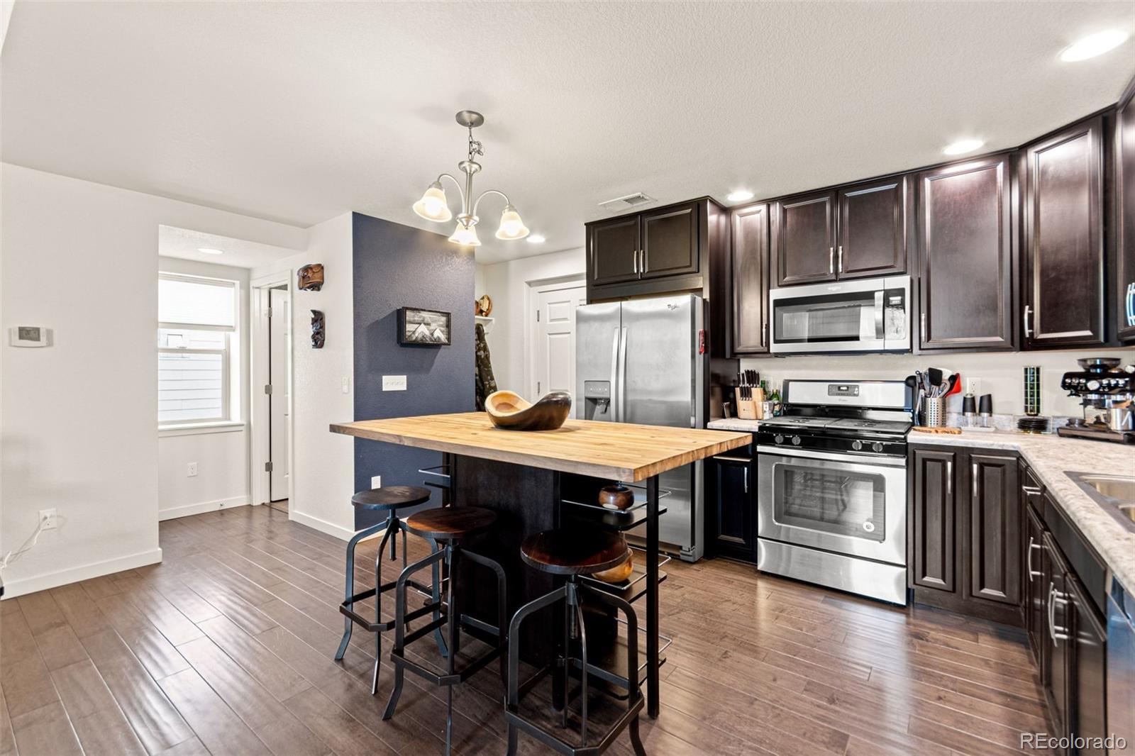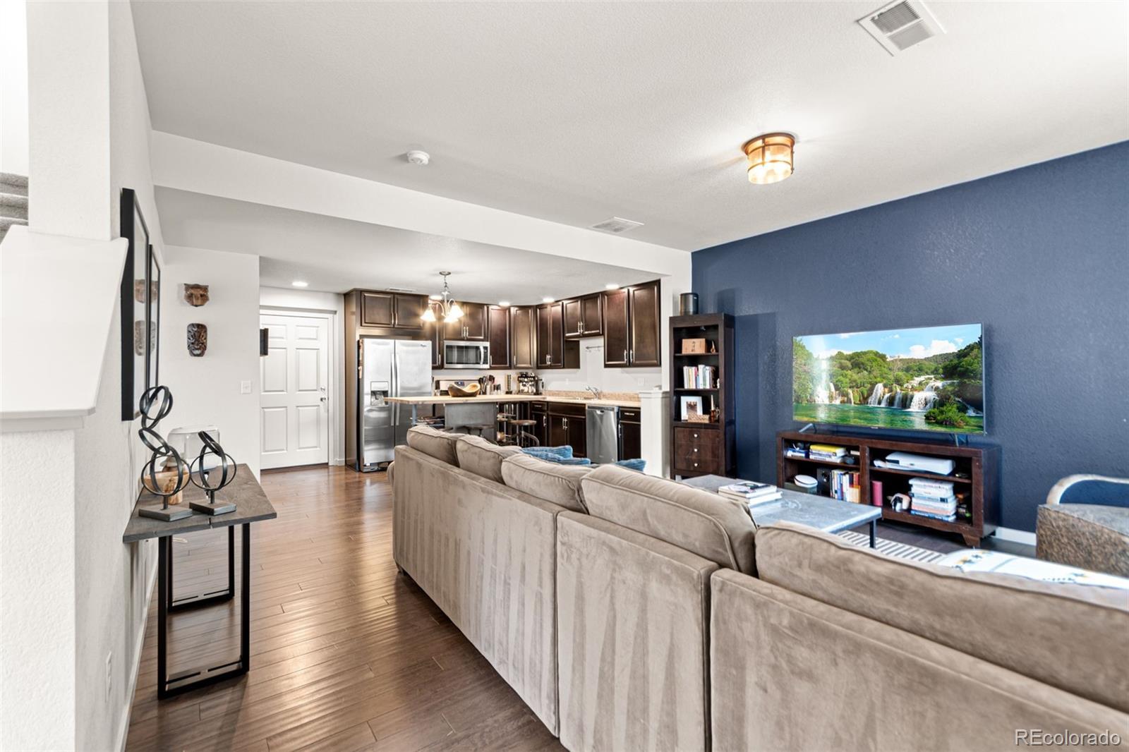 This bright and thoughtfully designed end-unit townhome offers the perfect blend of comfort, functionality, and ease—set within the Denver Affordable Housing Program and designed for real life. From the moment you step inside, you’ll notice the natural light and clean, modern flow of the main level. Durable vinyl flooring anchors the space, while the open-concept layout connects the kitchen, living, and dining areas in a way that feels both practical and welcoming. The kitchen features a gas range, generous cabinet space, a custom built island that naturally becomes the gathering spot—whether you’re cooking, working, or catching up at the end of the day. A convenient main-level powder bath and attached two-car garage add everyday ease. Upstairs, all three bedrooms are thoughtfully positioned for privacy and comfort. The primary suite feels calm and grounded, complete with an en-suite bath and plenty of room to unwind. Two additional bedrooms offer flexibility for guests, work-from-home space, or whatever this season of life calls for. A tankless water heater adds energy efficiency, while the home overall feels warm, well cared for, and move-in ready. As an end unit, you’ll appreciate the added light and sense of space, along with low-maintenance living that frees up more time to enjoy what’s outside your door. Located near Dick’s Sporting Goods Park, with easy access to parks, trails, schools, dining, and public transit, this home is well connected without feeling overwhelming. Stylish, comfortable, and intentionally designed—this is a home that supports how you actually live.