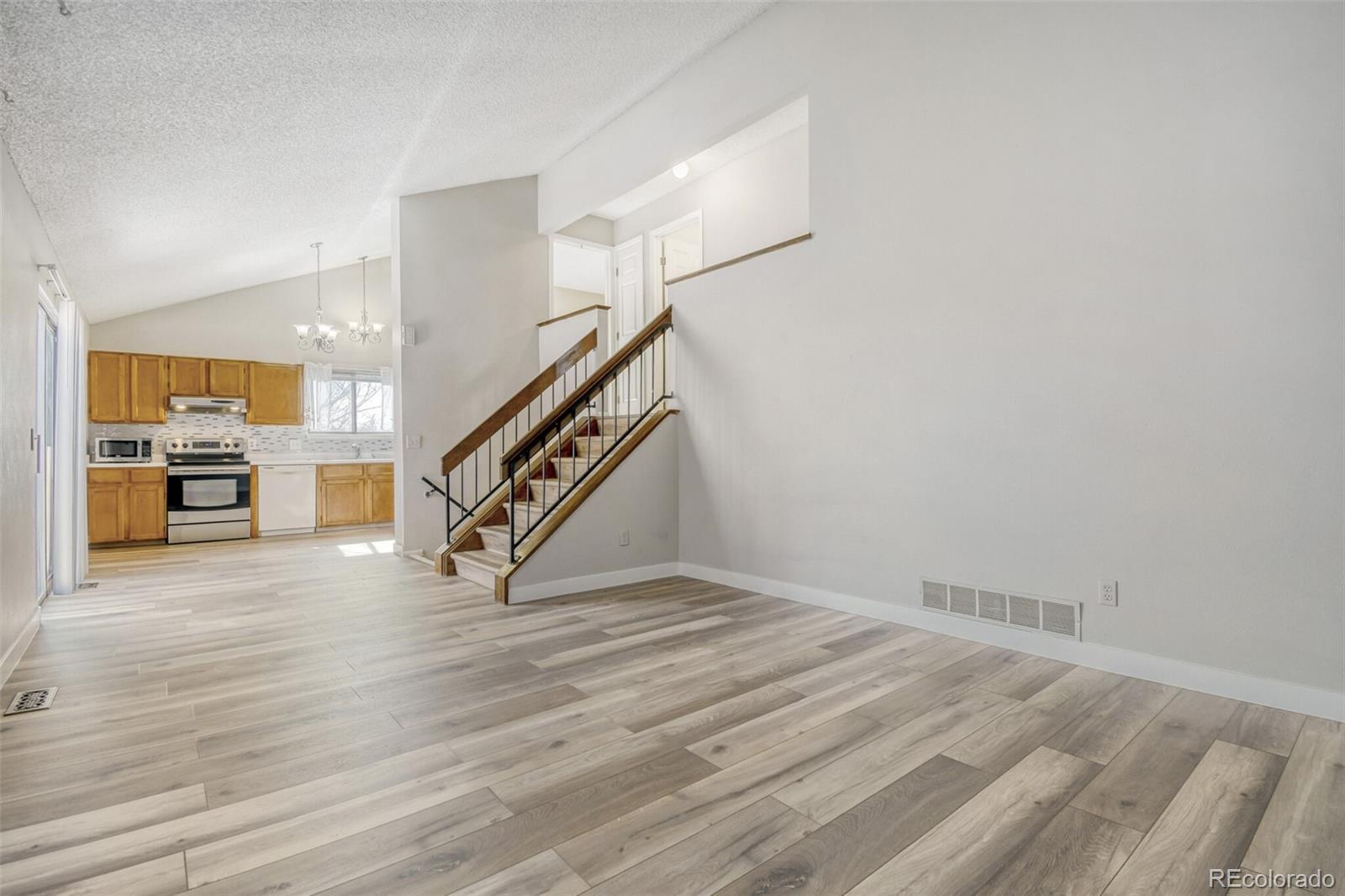 High Ceilings, Laminate Counters, Open Floorplan, Primary Suite, Stone Counters, Vaulted Ceiling(s)