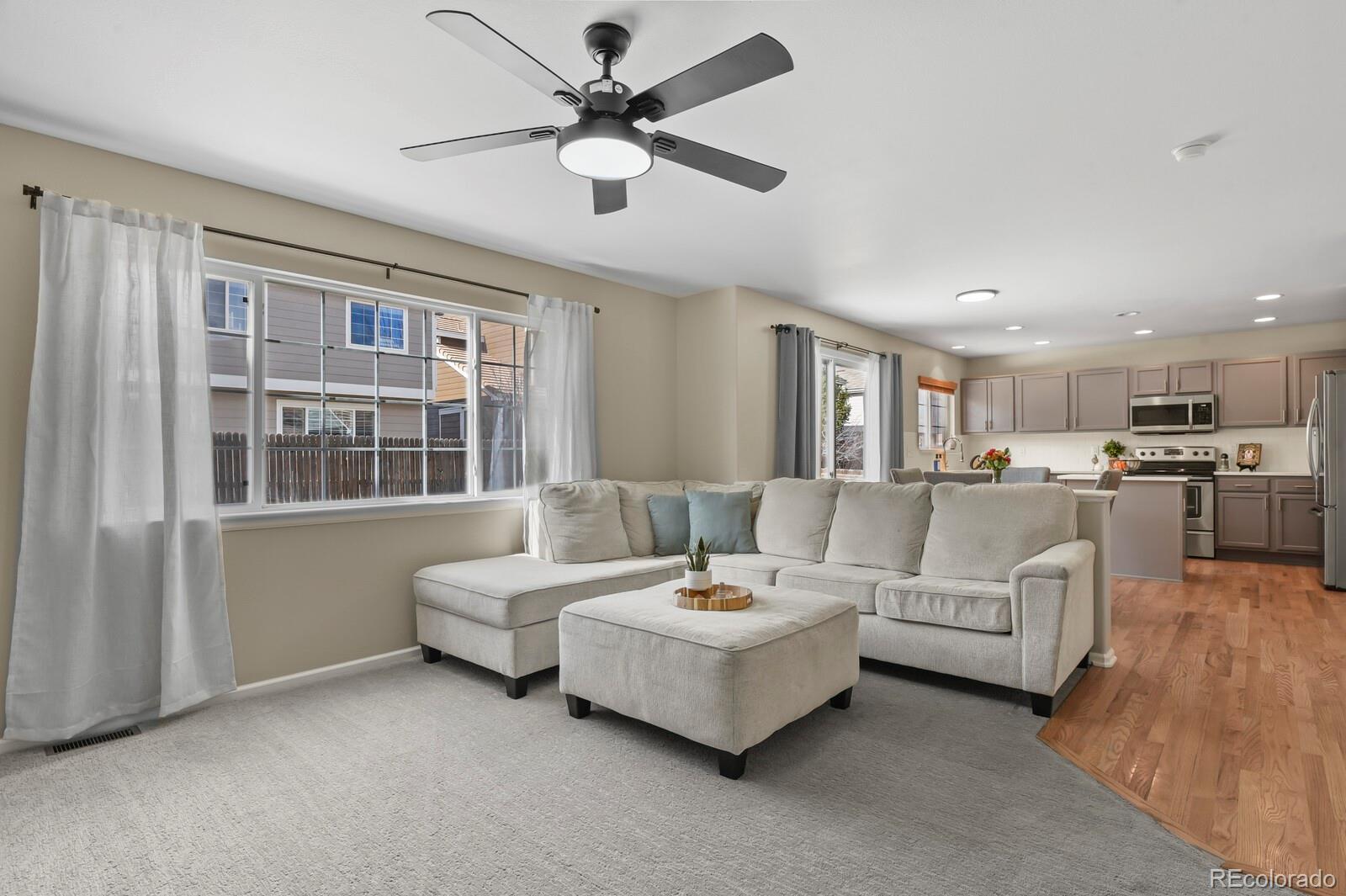 Ceiling Fan(s), Kitchen Island, Open Floorplan, Quartz Counters