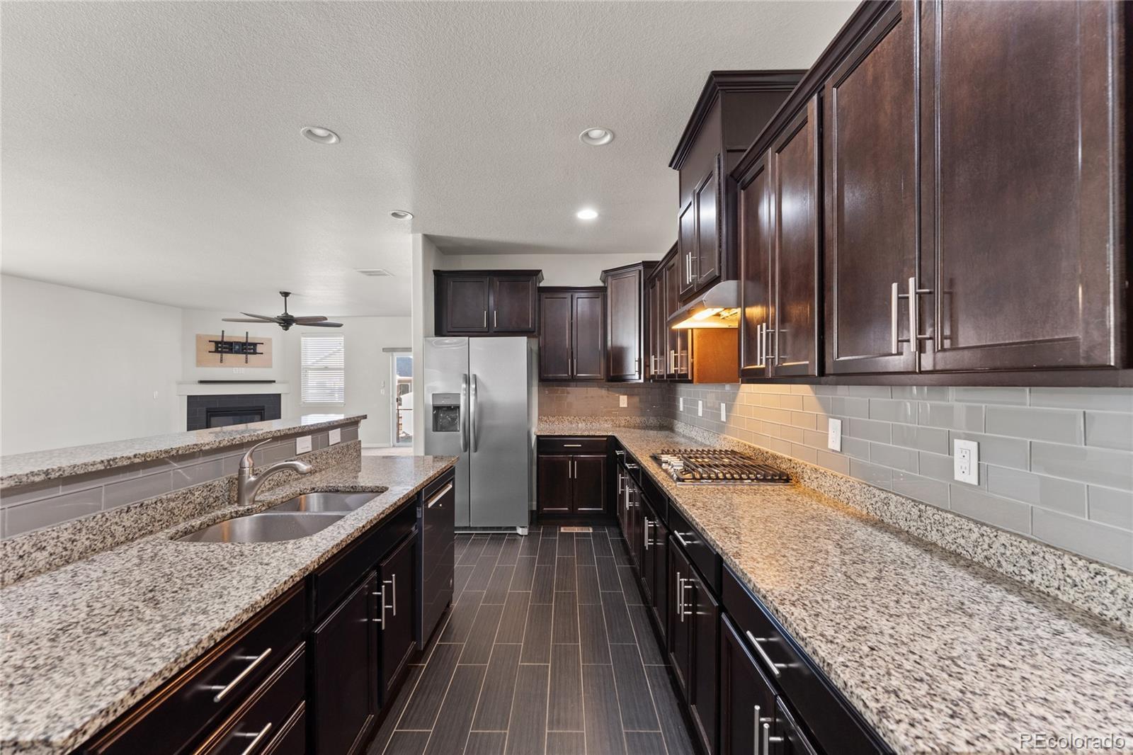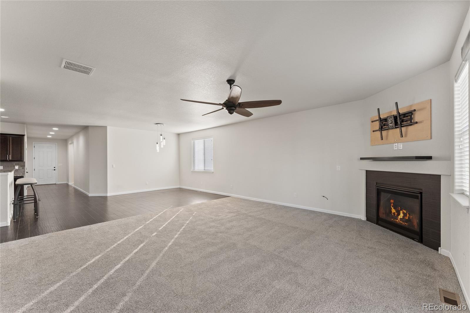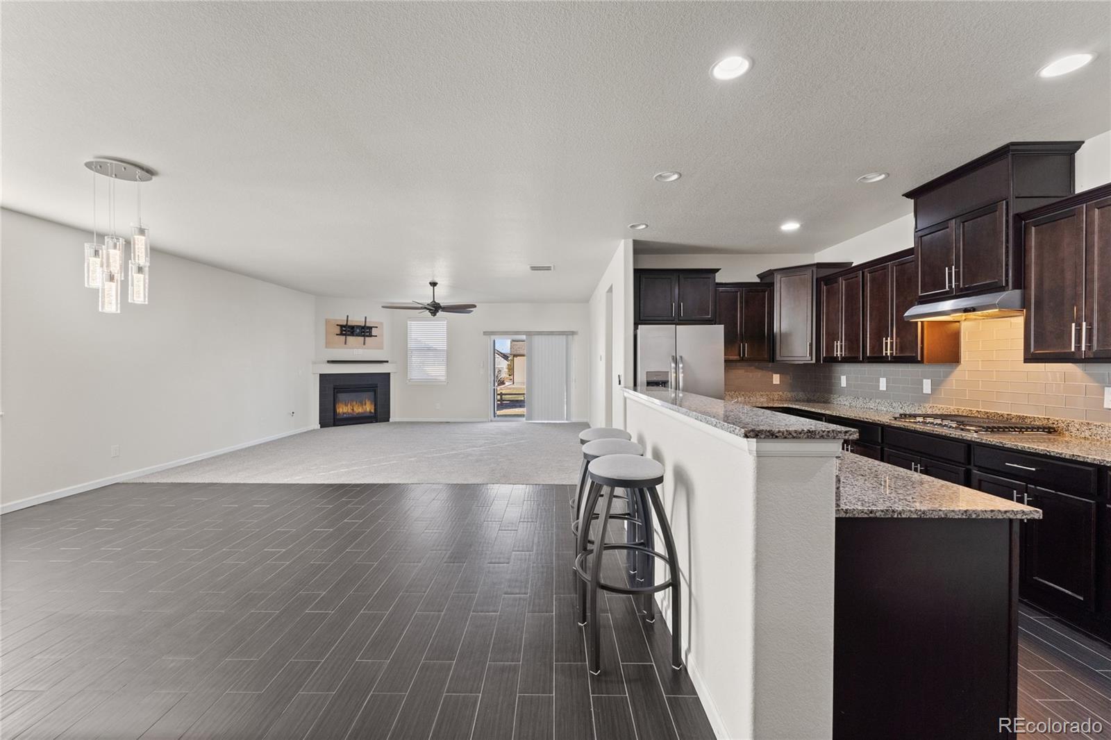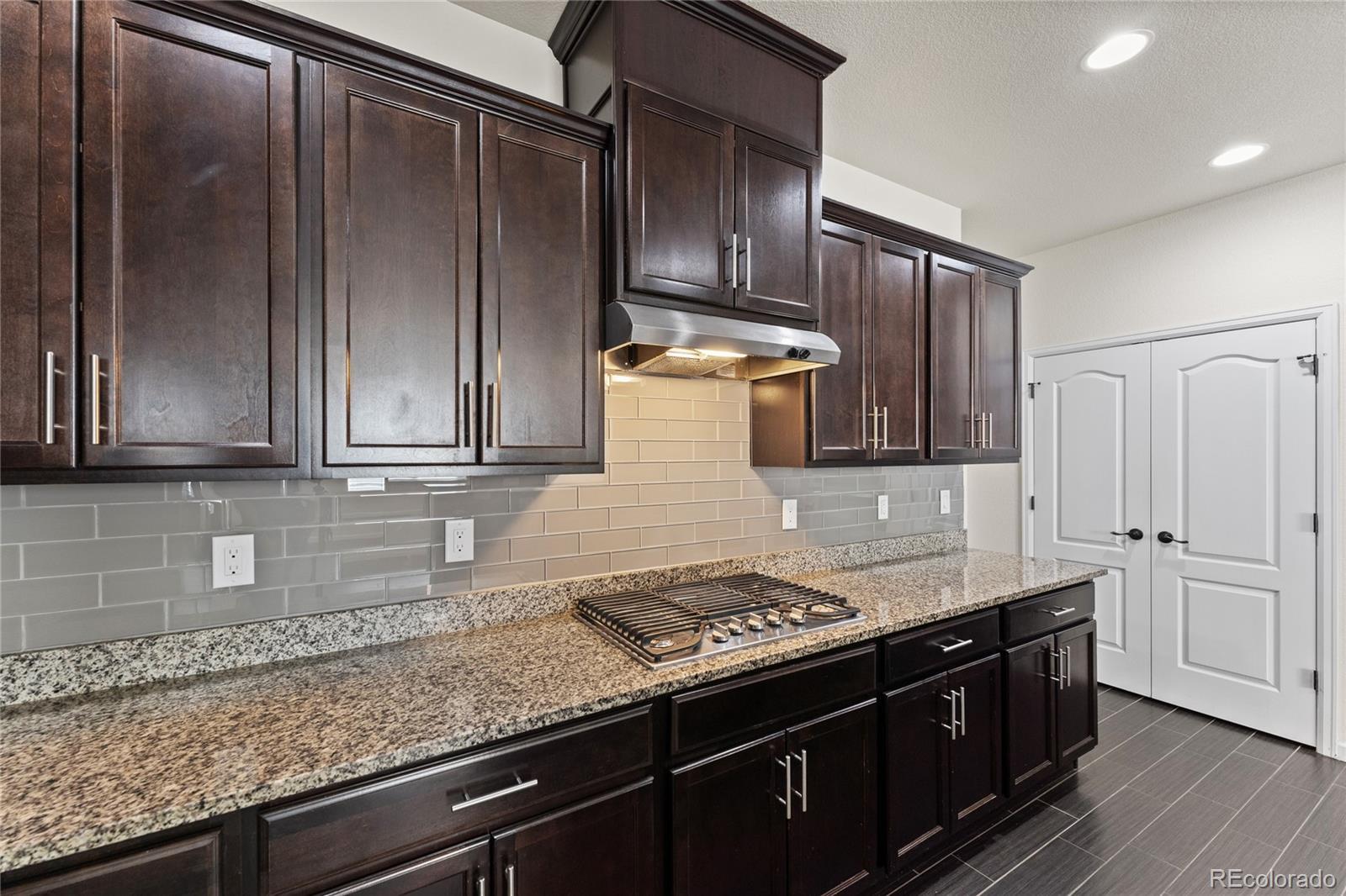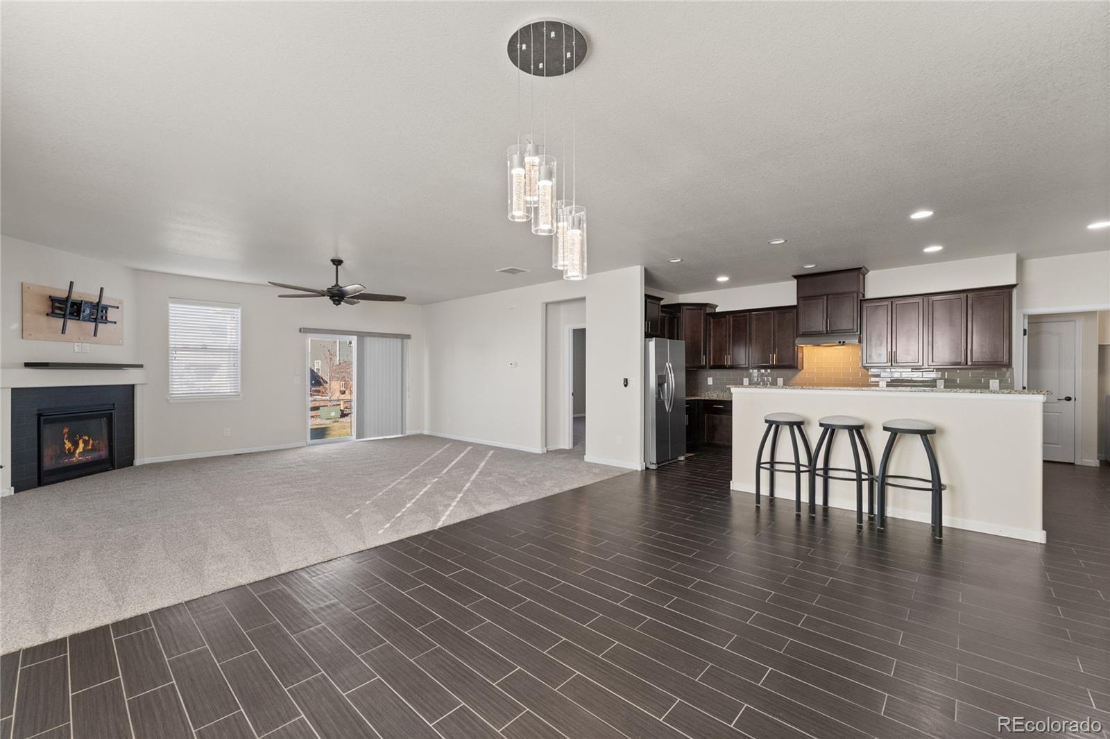 Tucked into the quiet golf course community of Spring Valley Ranch in Elizabeth, 5509 Harbor Town Dr is one of the very few ranch style homes with a fully finished basement and a three-car garage! When you enter, you'll be greeted by warm, wood-look ceramic tile floors, and brand new carpet, both spreading across the main level in exactly the places you'd want them, and providing a beautiful contrast of color that gives this home a welcoming atmosphere. The kitchen has rich espresso colored cabinets, a sleek grey glass tile backsplash, and a brighter granite that beautifully ties in the colors of the home, and provides a pop of contrast to make the kitchen visually exciting! The stainless steel appliances, gas cooktop, coffee bar, and bar seating will make this kitchen the central hub where everybody WANTS to hang out! The primary suite has an en-suite bathroom with granite counters, a standup shower with oiled bronze surrounds, a soaking tub, and a generously sized walk-in closet. And off the 3-car garage is the laundry room, meaning this home can truly be used for main-level-living. Head downstairs, and you'll find an absolutely CAVERNOUS finished basement! The family room is legitimately massive, and your imagination is your only limit down here. Game room, movie theater, golf simulator...there is SO MUCH ROOM FOR ACTIVITIES! There's also another bedroom and modern bathroom, making this space perfect for older kids, or even a multi-generational living situation. The Spring Valley Golf Club is an absolute hidden gem! With 18 challenging holes of golf, and an incredible clubhouse with a great restaurant and a friendly atmosphere, this is the ideal neighborhood for somebody who wants to live in a golf course community, and be away from the hustle and bustle of a bigger city, but without being in the middle of nowhere. Come take a look today!