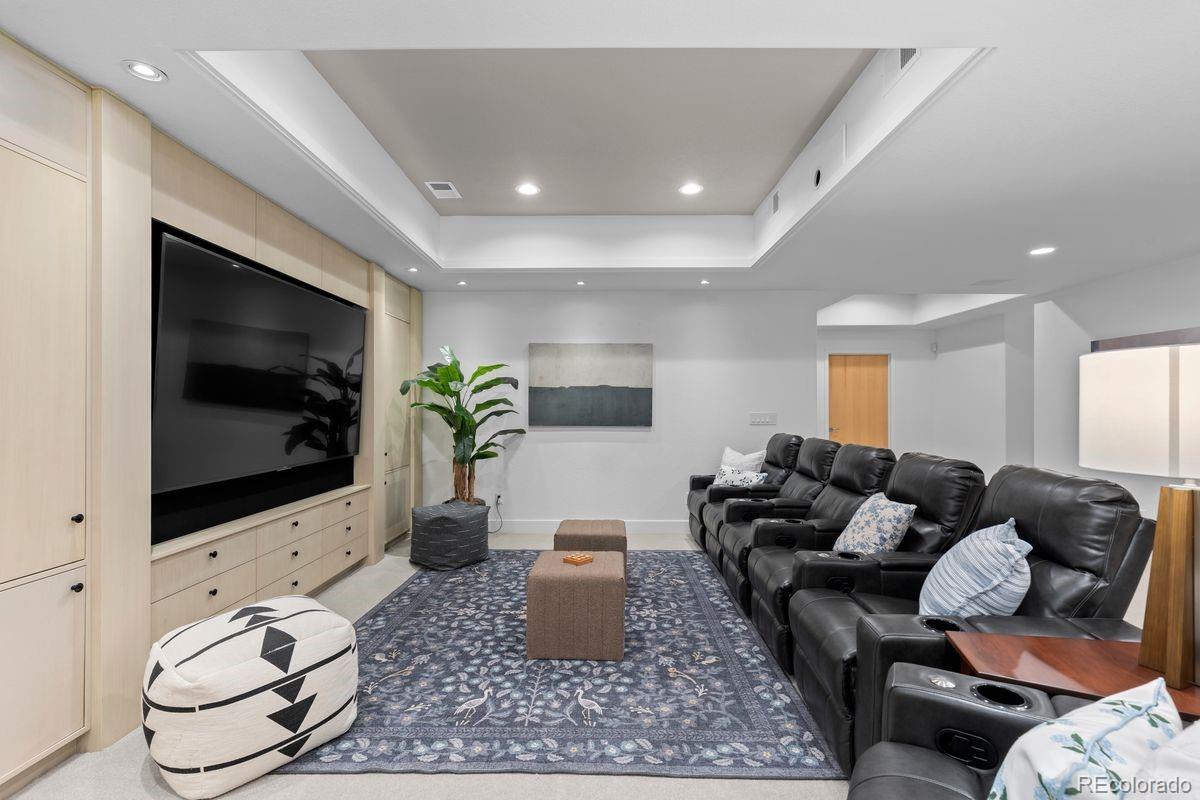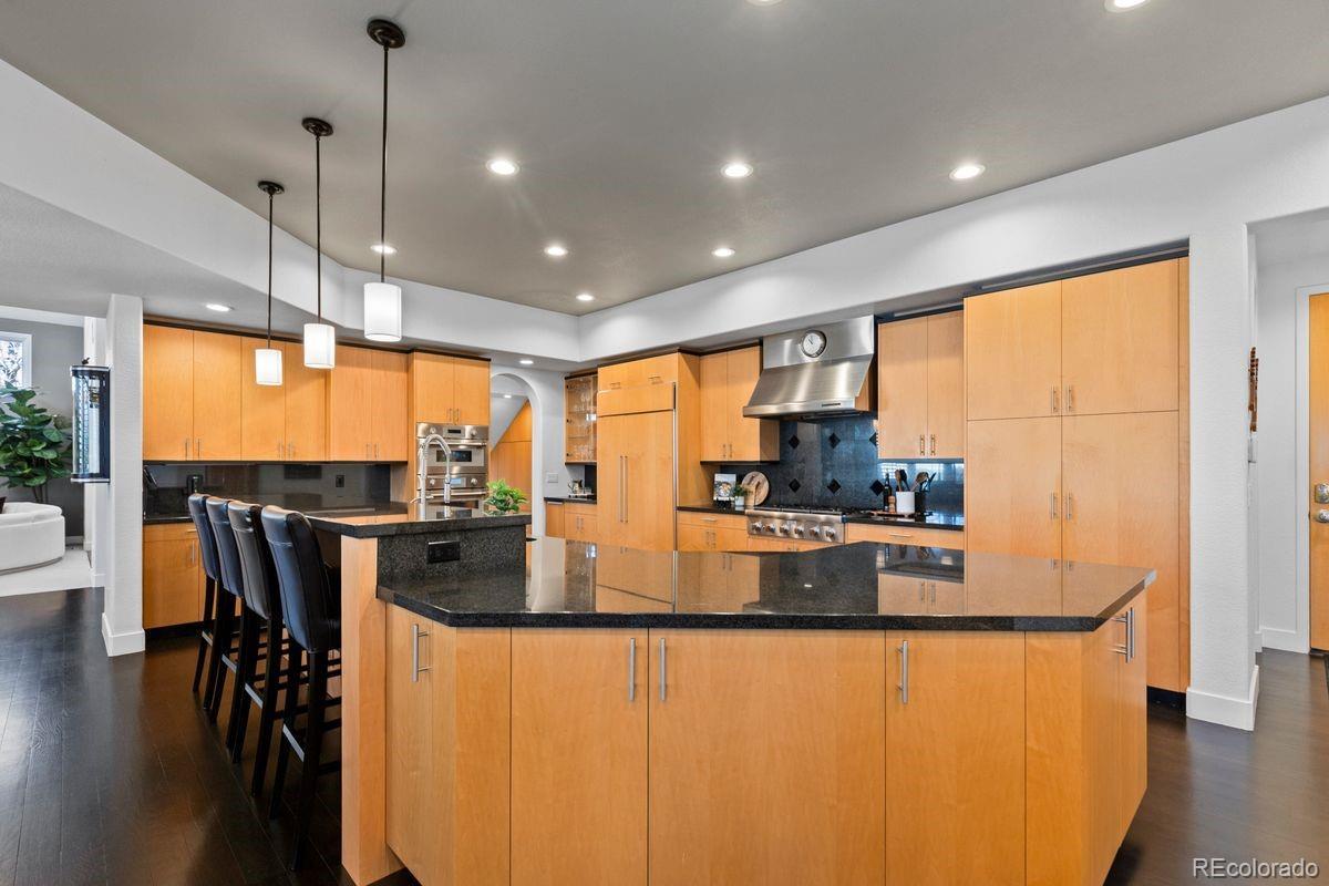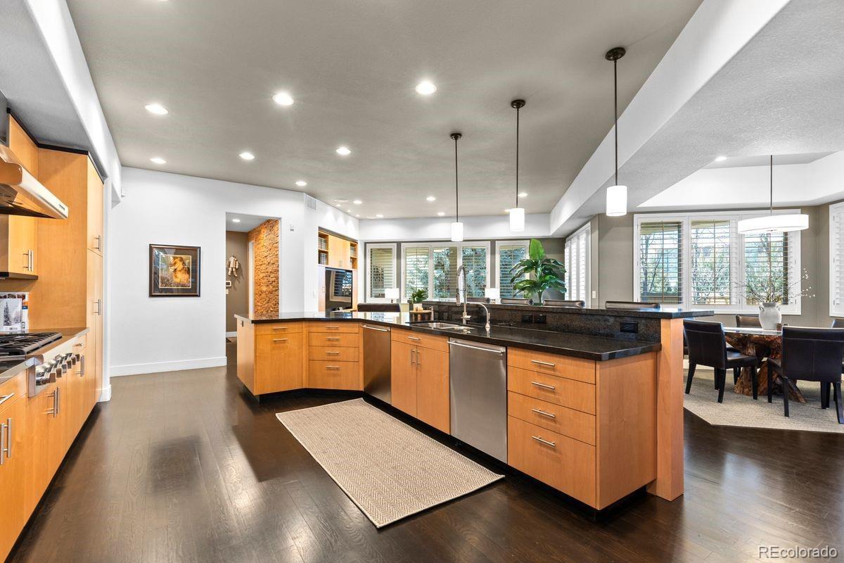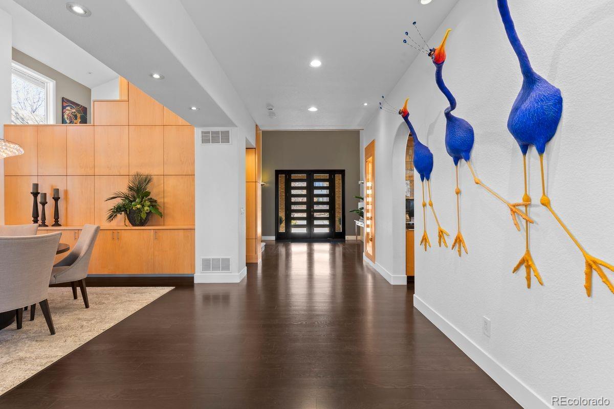 Designed by renowned architect Michael Knorr and maintained to a meticulous standard, this distinguished contemporary residence encompasses more than 7,600 square feet across three levels — a home conceived without compromise and kept without exception. Soaring ceilings, ebony-stained hardwood floors, and an abundance of bespoke built-ins set the tone from the moment you arrive. The dramatic two-story entry opens to a formal dining room, presided over by a one-of-a-kind Swarovski lead crystal chandelier. The sweeping great room features a gas fireplace and custom maple architectural wall paneling. The chef's kitchen includes a Thermador six-burner gas range, dual Bosch dishwashers, a SubZero refrigerator, slab granite counters, and a large island with eating bar — all oriented around a sun-filled dining nook and sitting area. The primary suite is a private retreat with a gas fireplace and five-piece bath that includes a walk-in steam shower with dual spray heads and deep soaking tub. An expansive his-and-hers walk-in closet includes a built-in safe and unique floor-to-ceiling glass tie display case. The upper level is completed by two additional bedrooms with en suite baths and a laundry room. A finished basement includes a soundproof music room, media room with in-ceiling projection and surround sound, mirrored exercise room, and craft room with dry-erase wall and wrapping station. A Morning Star elevator connects all three levels with quiet ease. A Honeywell security system with wired window screens, motion sensors, and four exterior cameras provides layered protection, for those who value security. Two heated garages with three bays, epoxy flooring, and EV charging complete a home where every practical need is met. Two blocks from Graland Country Day School and the 24-acre Cranmer Park, five minutes from Cherry Creek's premier dining and boutiques. To find a home of this quality is uncommon. To find one this carefully preserved is extraordinary.