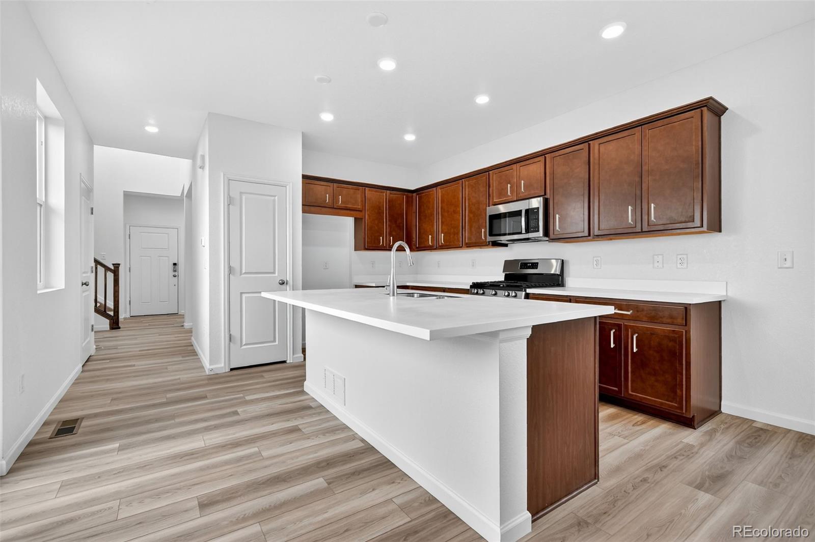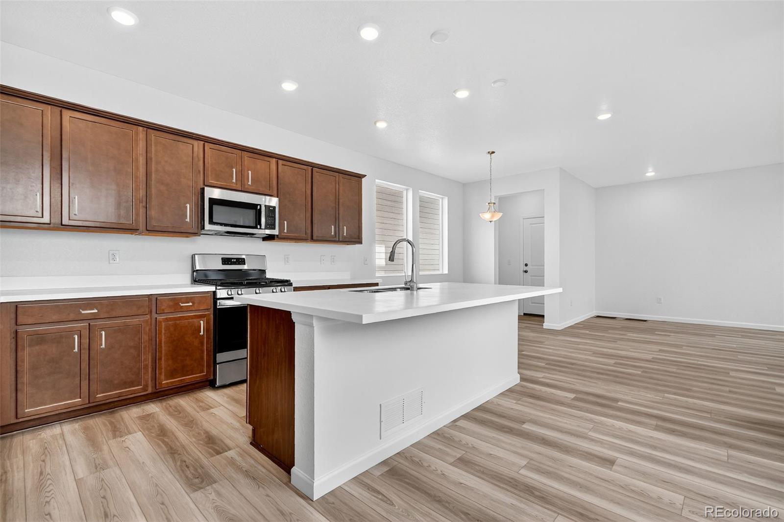 What's Special: Oversized Patio | Dedicated Study | High Ceilings. New Construction - Ready Now! Built by America's Most Trusted Homebuilder. Welcome to The Stella at 2110 Wagon Wheel Aly in Farmlore. Off the grand two-story foyer, a private study offers a quiet retreat. The open-concept kitchen, dining area, and great room are perfect for gatherings, with an optional extended patio for seamless indoor/outdoor living. Upstairs, you'll find three bright secondary bedrooms, a full bath, laundry, and a spacious primary suite tucked at the end of the hall for added privacy. Located in Farmlore—a vibrant new community in the heart of Brighton—you’ll enjoy suburban charm with easy access to downtown Brighton, Prairie Center, and Denver. Planned amenities include three parks, a recreation center with pool, and a restored 10,000 sq. ft. farmhouse designed as a future hub for work and play. With over 11 miles of trails, walkable streets, and proximity to Prairie Lakes Regional Park and Barr Lake State Park, Farmlore is where outdoor adventure, connection, and everyday convenience meet. Brighton 27J School District. Additional Highlights Include: AC 14 Seer Lennox air conditioning, patio, stainless steel gas range, additional sink at secondary bath. MLS#3835668