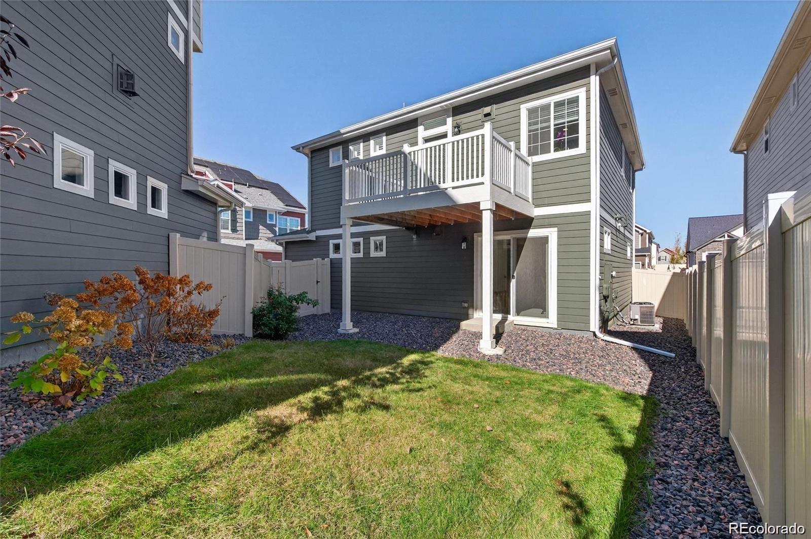 Maintenance-Free Living in a Beautiful Single-Family Home! Enjoy mountain views, privacy, and no attached neighbors in this stunning home that’s truly better than new! With great curb appeal and a wrap-around front deck, this property welcomes you the moment you arrive. Whether you’re sipping coffee in the early morning or taking in a breathtaking sunset, the front porch or spacious back deck offer the perfect spots to relax and unwind with your favorite book. Inside, you’ll find a chef’s kitchen designed for those who love to cook and entertain, featuring a gas cooktop, upgraded appliances, and a large center island ideal for meal prep or casual dining. The spacious primary bedroom includes a luxurious ensuite bath and a walk-in closet, providing a true retreat at the end of the day. The lower level offers flexibility with an additional bedroom, a full bath, and a bonus space perfect for a home office or potential third bedroom. The fully landscaped yard with a privacy fence, and shutters on all the windows, makes this home move-in ready! There is storage space below the stairs plus a crawl space that is easily accessible. Conveniently located near shopping, schools, parks, and just minutes from I-25, this home truly has it all! The HOA covers the snow removal on your upgraded paver driveway, making it a great lock and leave. Don’t miss your chance to make this exceptional home your own!
