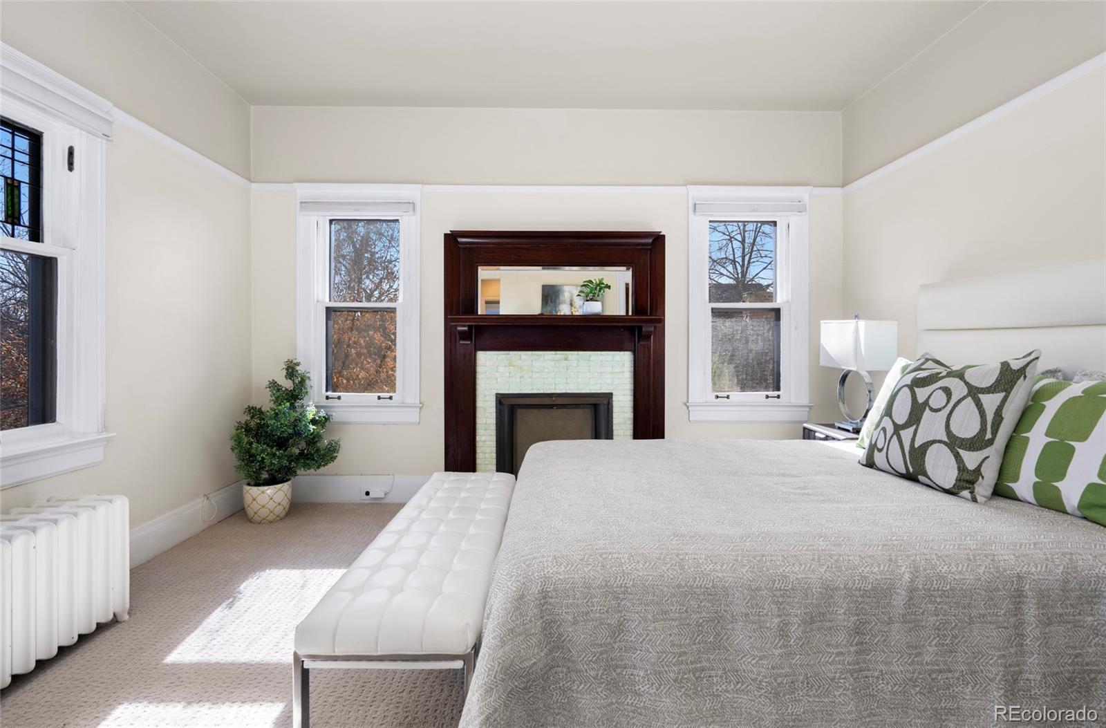 Welcome to this exquisite Park Hill Craftsman home, where timeless elegance meets contemporary luxury. This property showcases stunning stained glass and original woodwork throughout, seamlessly enhanced by modern updates. As you enter the grand foyer, you'll be drawn to the living room, featuring a prominent fireplace that perfectly marries classic design with modern comfort. The dining room retains its original frieze, while the updated kitchen boasts a cozy nook ideal for casual meals. Step outside to the garden patio, a lush retreat perfect for entertaining. Upstairs, the primary suite offers a luxurious five-piece bath and a decorative antique fireplace, blending old-world charm with modern convenience. Four additional bedrooms provide ample space for family and guests. The versatile basement family room is perfect for relaxation or a home office. Located in a vibrant neighborhood, this home is just moments away from restaurants, shops, and City Park, offering a unique blend of history and modern living. Ready for its next chapter, this property is a true masterpiece.