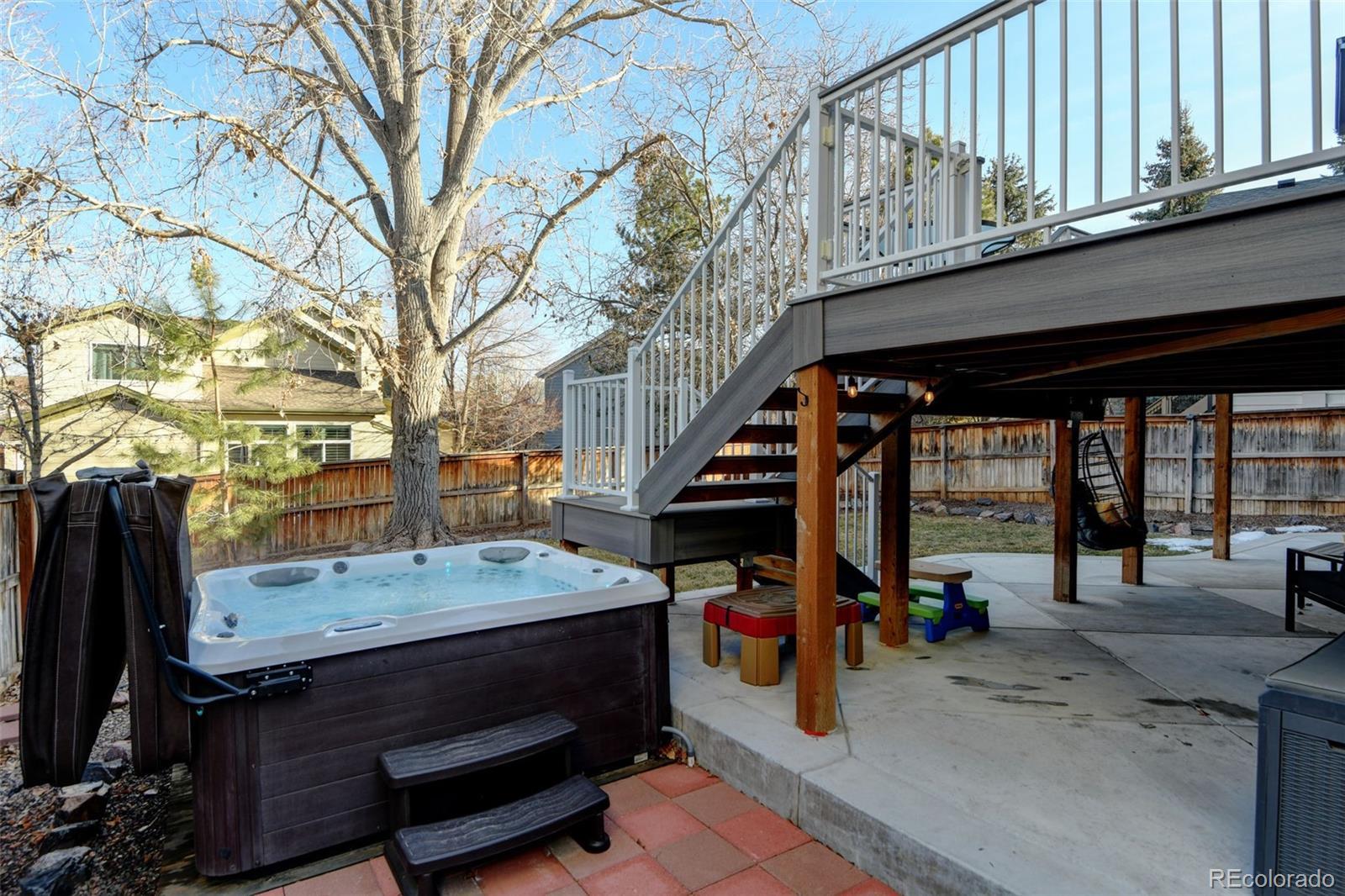 FUN SPORTY FLOOR PLAN. ATTENTION TO EVERY DETAIL. OPEN VAULTS - NICE VISUALS. SEPARATE MASTER SUITE ON ITS OWN LEVEL. EXTENSIVE REMODEL. SHARP KITCHEN. STAINLESS STEEL FARM STYLE SINK. BONUS REC ROOM AND BATH AND BEDROOM IN BASEMENT. HUGE 41X17 PATIO WITH HOT TUB. TWO TIERED 26X12 DECK. SLIDING DOOR IN GLASS BLINDS. PERIMETER AND PATIO LIGHTING INCLUDED. VIDEO DOORBELL INCLUDED. COMMUNITY SURROUNDED BY OPEN SPACE. CLOSE TO VISTA TRAIL.